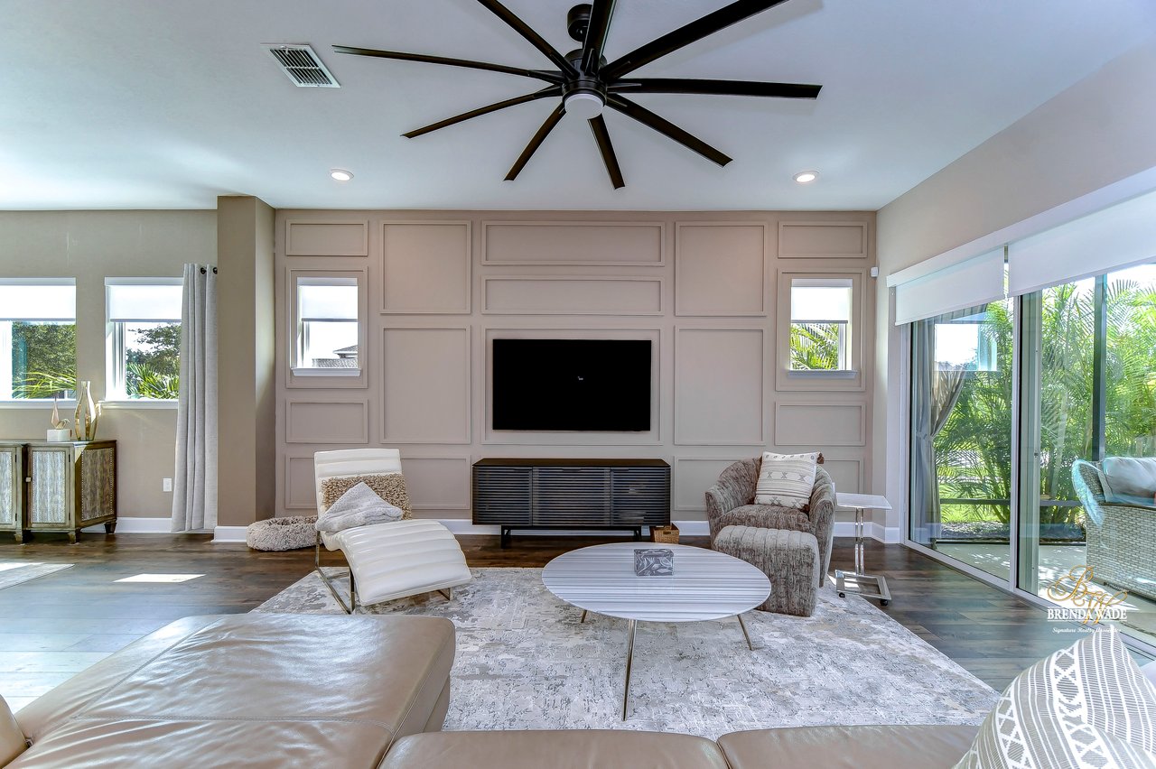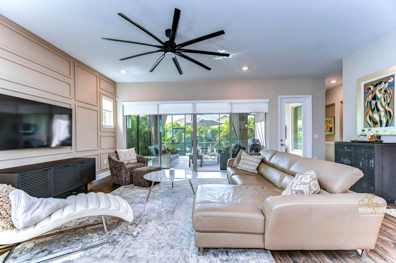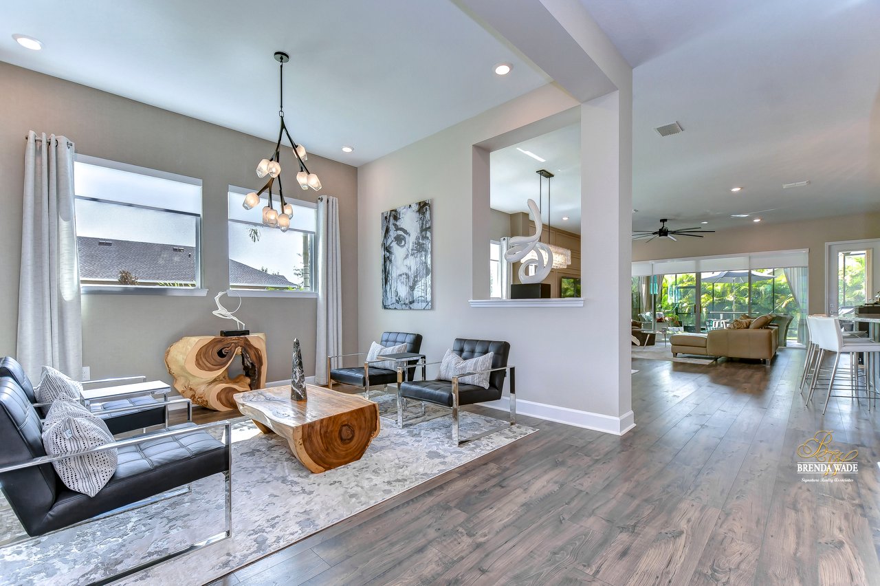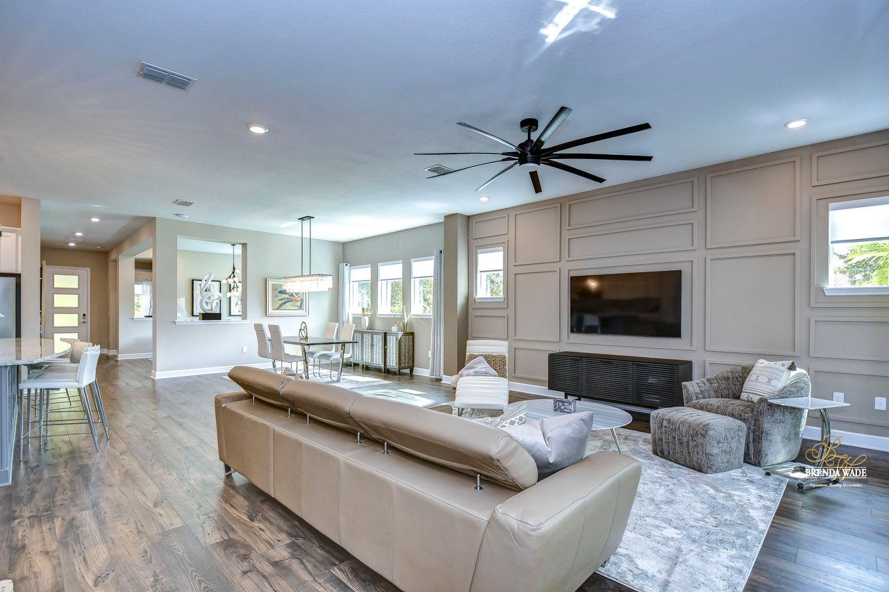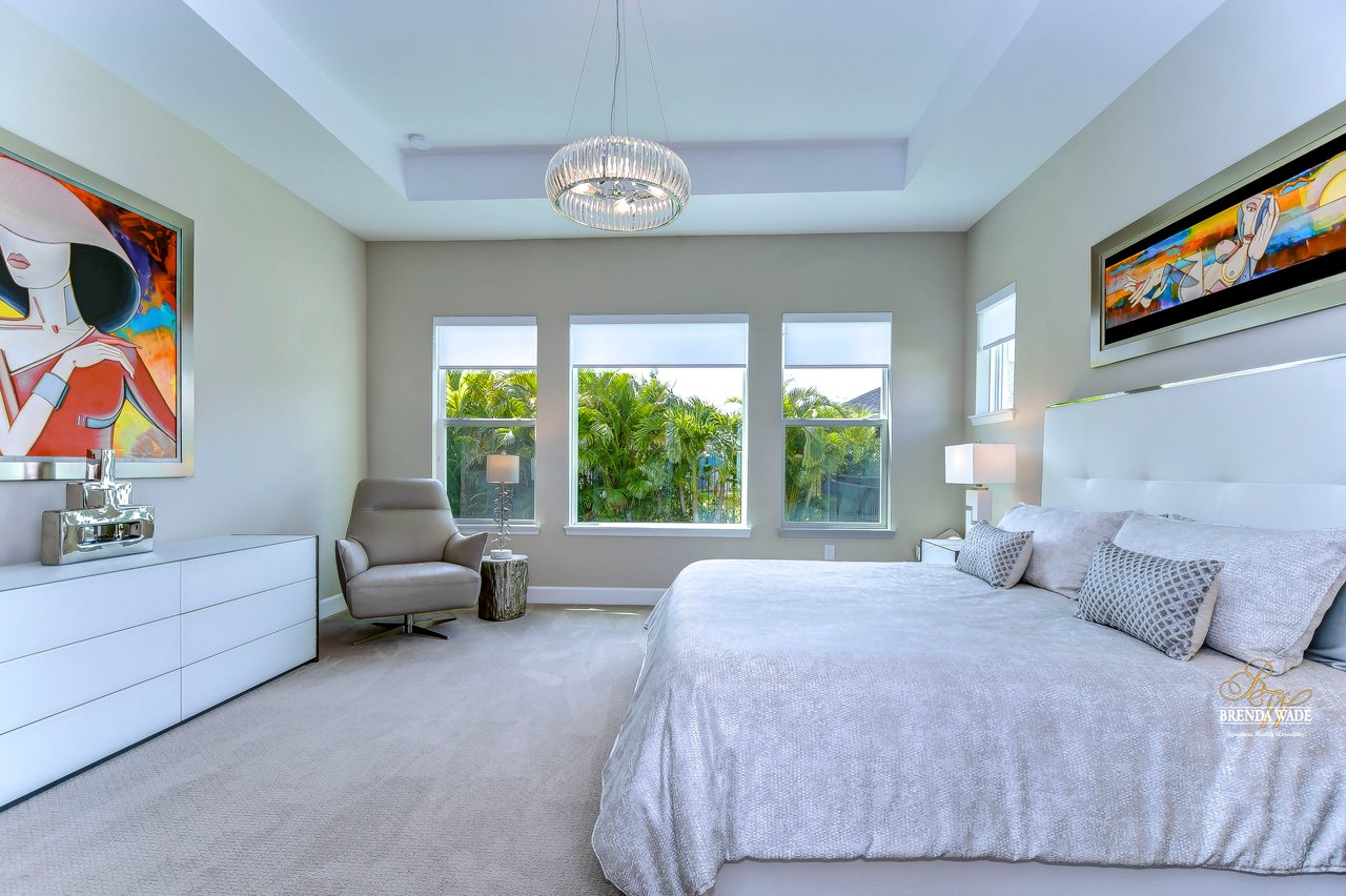 Welcome to the extraordinary resort-style living in Encore, a premier 55+ gated community that redefines the concept of active, hands-free living! A community where an on-site activities director ensures your social calendar is filled with exciting options. The Oasis Club, a hub of leisure and fitness, features a full fitness center, meeting spaces, club and party rooms, a PICKLEBALL court, multiple pools, bocce ball, fire pits, and beautiful trails. Nestled on an oversized corner lot, this stunning 3-bedroom, 3-bath home boasts a spacious 3-car garage, embodying the perfect blend of elegance and practicality. Beautiful tropical landscaping surrounds this exquisite home with pavered driveway, walkway, and stacked stone accents. The open concept and thoughtfully designed split bedroom floor plan offer an inviting and harmonious living experience. The heart of the home is a chef's dream, featuring a stunning kitchen with white cabinets, decorative backsplash, a HUGE center island with bar seating, and top-of-the-line stainless appliances. Entertain guests effortlessly in the spacious dining room adjacent to the kitchen, or enjoy the generous family room with accent well, and French door sliders leading to the inviting lanai. At the front of the home, discover a versatile flex space, perfect for an at-home office, music room, or art studio. The primary suite is a true oasis, graced with a tray ceiling, backyard views, and a STUNNING en-suite bath showcasing a luxurious, oversized walk-in shower and a HUGE custom walk-in closet with an island. Two additional bedrooms, situated in their private wing, offer large closets, and one boasts a private en-suite full bath--an ideal arrangement for guests or extended family. The entire residence emanates a sense of modern comfort and style. Conveniently located near shopping centers, parks, and dining options, this active 55+ community provides a secure and serene environment, making it the perfect place to call home. Don't miss the opportunity to experience this incredible lifestyle--schedule your private showing today and embrace the unparalleled luxury of Encore living!