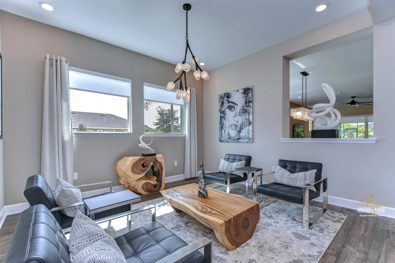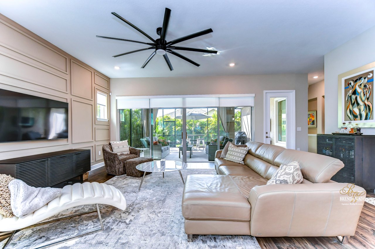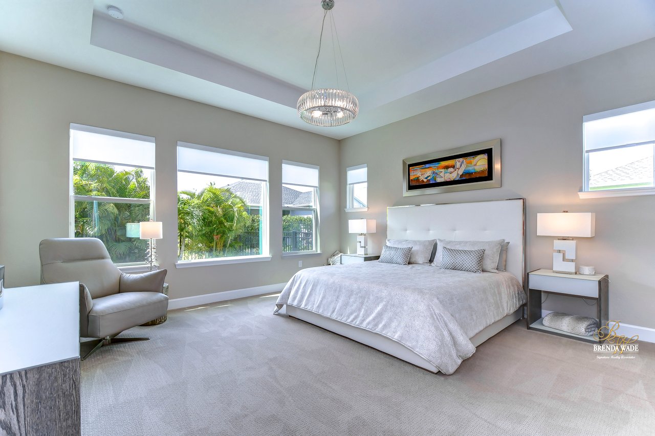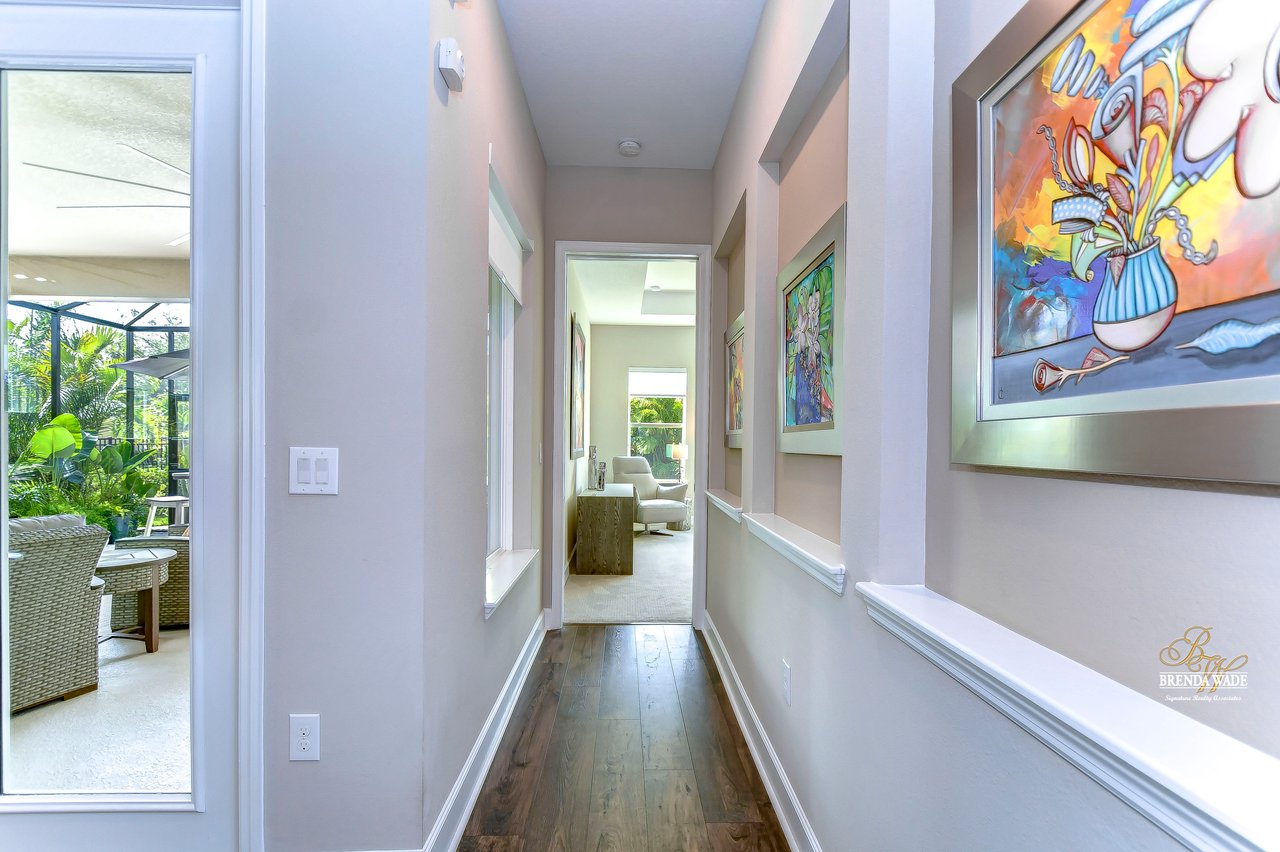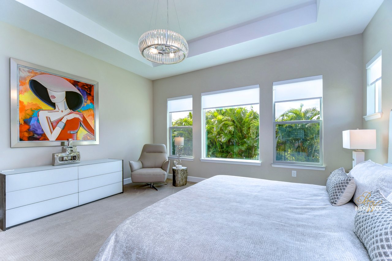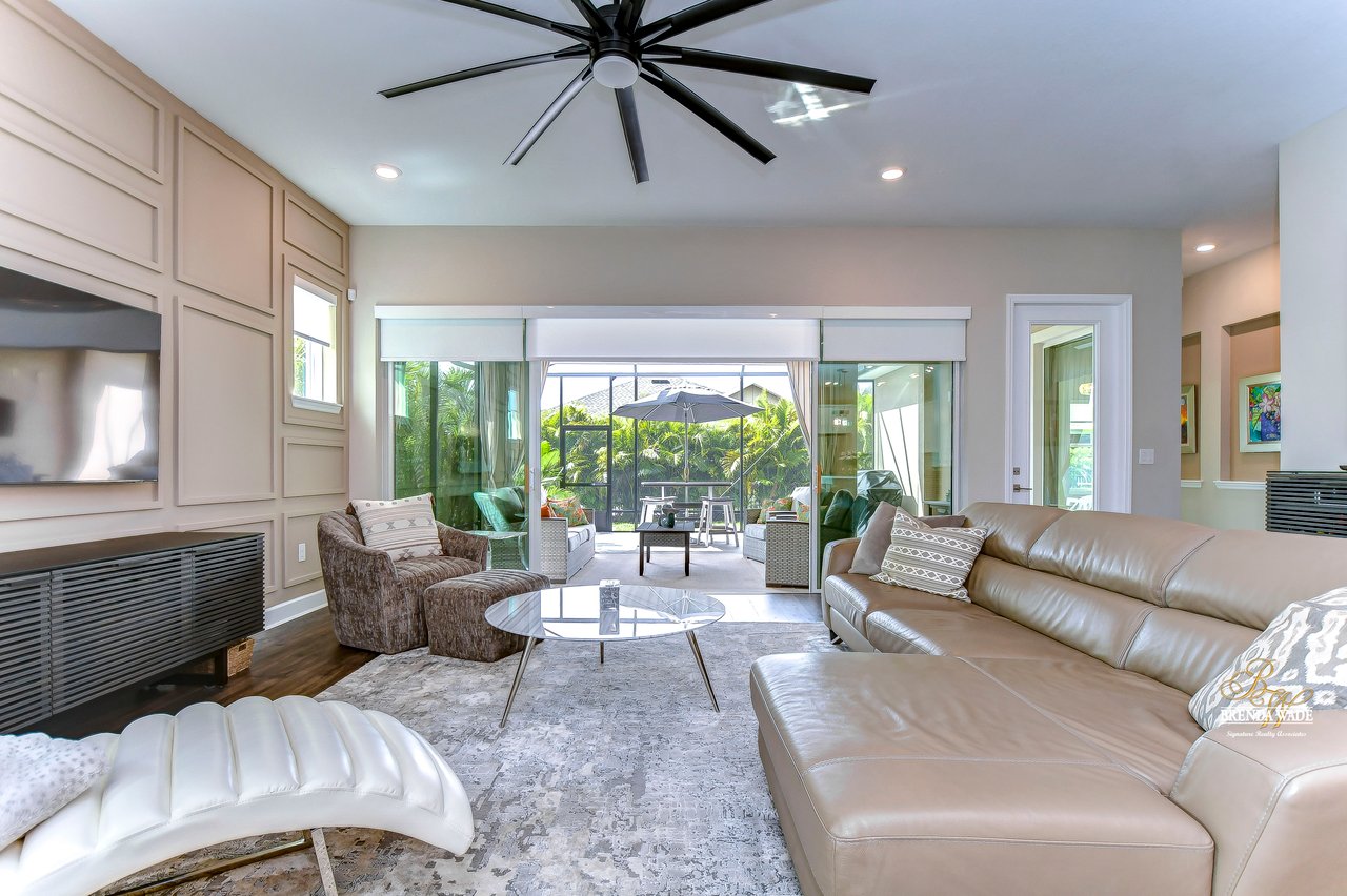 Welcome to the extraordinary resort-style living in Encore, a premier 55+ gated community that redefines the concept of active, hands-free living! A community where an on-site activities director ensures your social calendar is filled with exciting options. The Oasis Club, a hub of leisure and fitness, features a full fitness center, meeting spaces, club and party rooms, a PICKLEBALL court, multiple pools, bocce ball, fire pits, and beautiful trails. Nestled on an oversized corner lot, this stunning 3-bedroom, 3-bath home boasts a spacious 3-car garage, embodying the perfect blend of elegance and practicality. Beautiful tropical landscaping surrounds this exquisite home with pavered driveway, walkway, and stacked stone accents. The open concept and thoughtfully designed split bedroom floor plan offer an inviting and harmonious living experience. The heart of the home is a chef's dream, featuring a stunning kitchen with white cabinets, decorative backsplash, a HUGE center island with bar seating, and top-of-the-line stainless appliances. Entertain guests effortlessly in the spacious dining room adjacent to the kitchen, or enjoy the generous family room with accent well, and French door sliders leading to the inviting lanai. At the front of the home, discover a versatile flex space, perfect for an at-home office, music room, or art studio. The primary suite is a true oasis, graced with a tray ceiling, backyard views, and a STUNNING en-suite bath showcasing a luxurious, oversized walk-in shower and a HUGE custom walk-in closet with an island. Two additional bedrooms, situated in their private wing, offer large closets, and one boasts a private en-suite full bath--an ideal arrangement for guests or extended family. The entire residence emanates a sense of modern comfort and style. Conveniently located near shopping centers, parks, and dining options, this active 55+ community provides a secure and serene environment, making it the perfect place to call home. Don't miss the opportunity to experience this incredible lifestyle--schedule your private showing today and embrace the unparalleled luxury of Encore living!