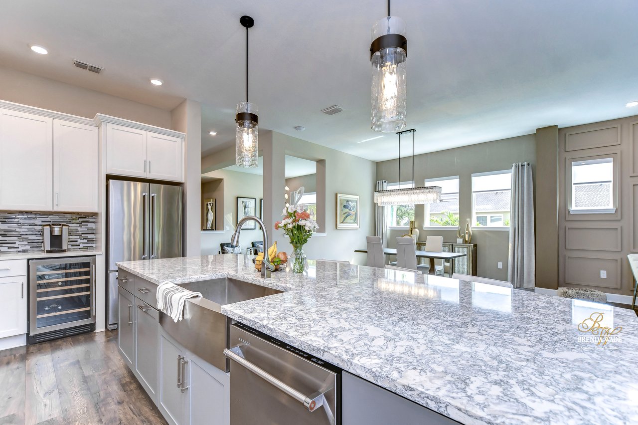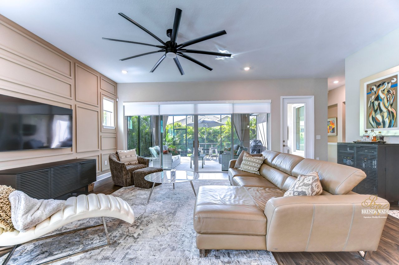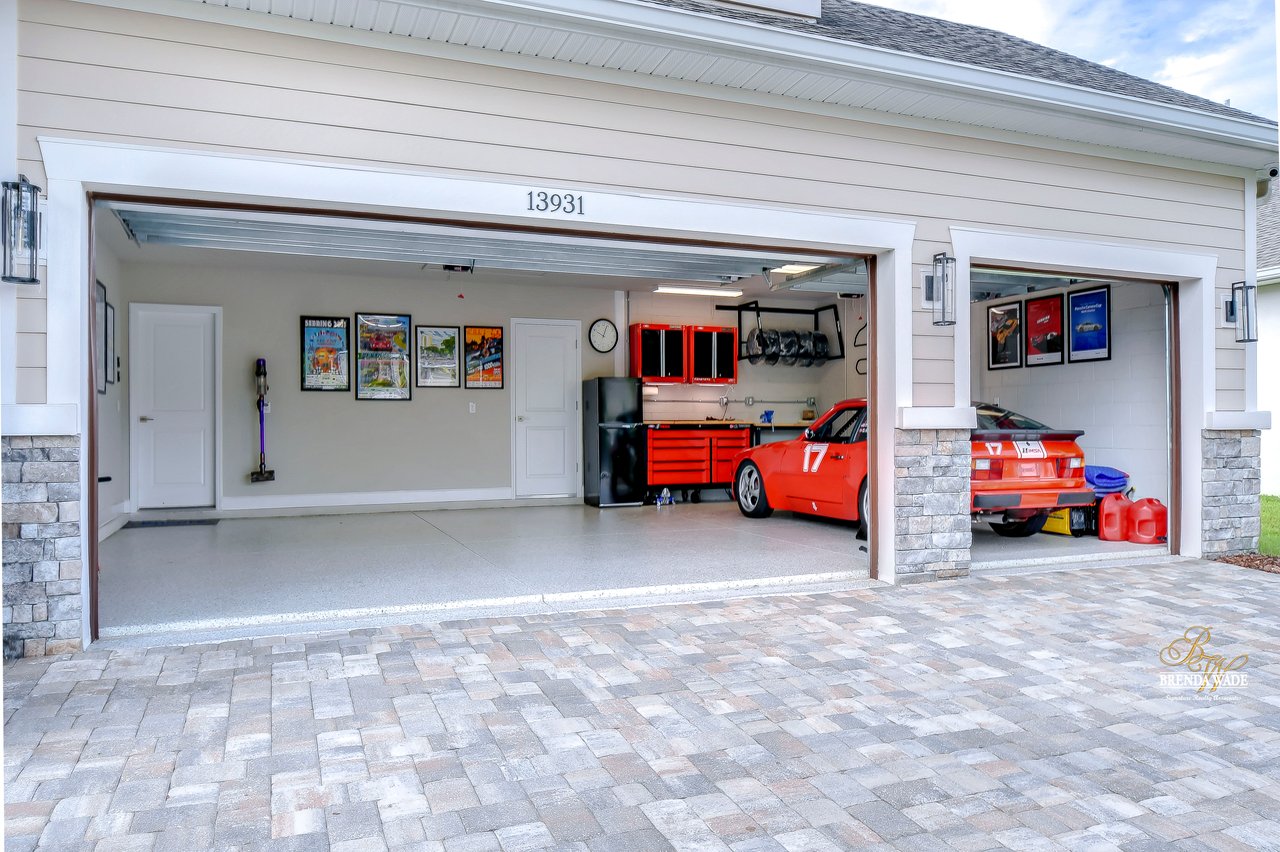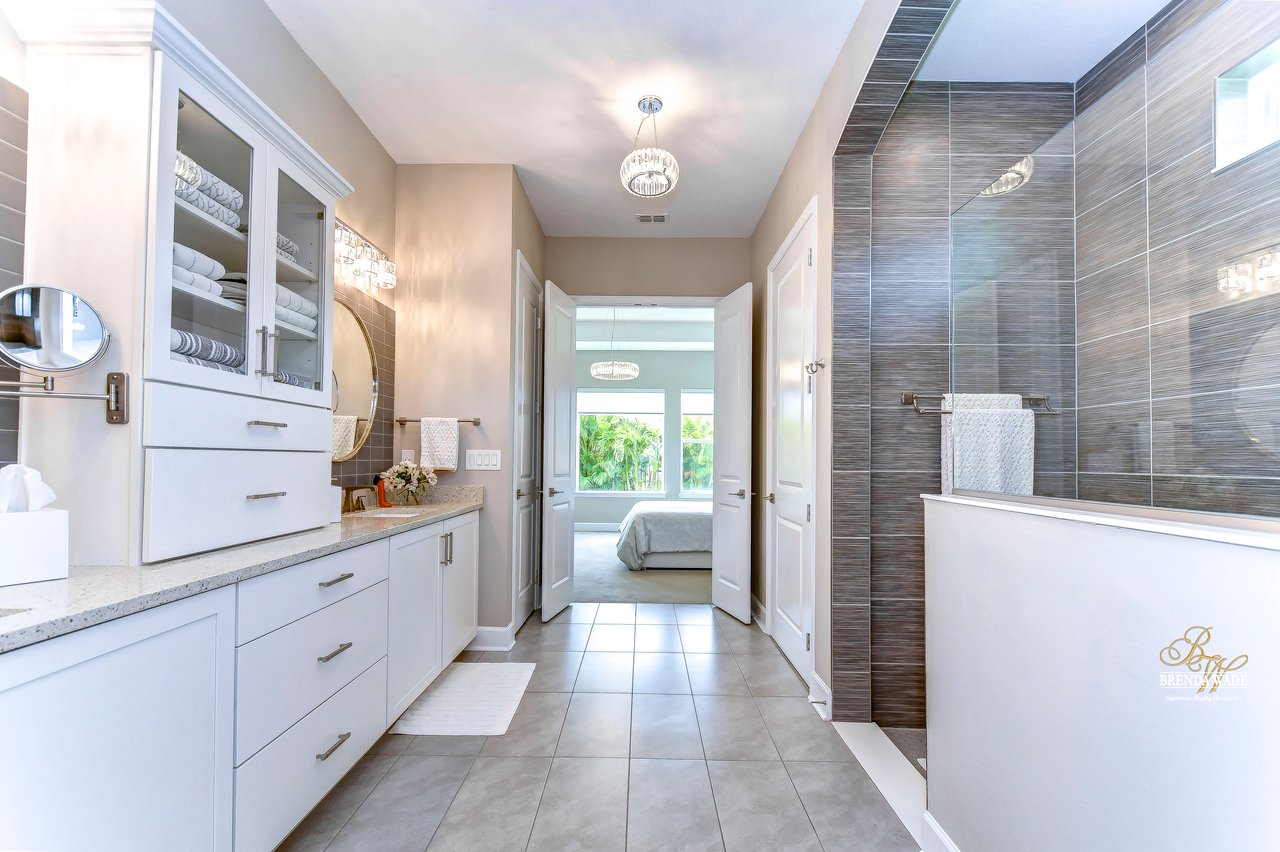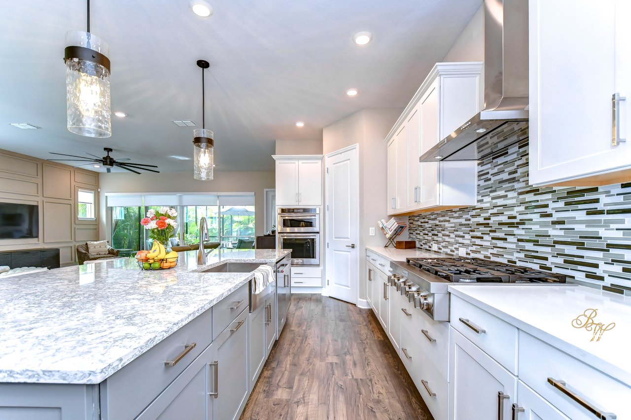 Welcome to the extraordinary resort-style living in Encore, a premier 55+ gated community that redefines the concept of active, hands-free living! A community where an on-site activities director ensures your social calendar is filled with exciting options. The Oasis Club, a hub of leisure and fitness, features a full fitness center, meeting spaces, club and party rooms, a PICKLEBALL court, multiple pools, bocce ball, fire pits, and beautiful trails. Nestled on an oversized corner lot, this stunning 3-bedroom, 3-bath home boasts a spacious 3-car garage, embodying the perfect blend of elegance and practicality. Beautiful tropical landscaping surrounds this exquisite home with pavered driveway, walkway, and stacked stone accents. The open concept and thoughtfully designed split bedroom floor plan offer an inviting and harmonious living experience. The heart of the home is a chef's dream, featuring a stunning kitchen with white cabinets, decorative backsplash, a HUGE center island with bar seating, and top-of-the-line stainless appliances. Entertain guests effortlessly in the spacious dining room adjacent to the kitchen, or enjoy the generous family room with accent well, and French door sliders leading to the inviting lanai. At the front of the home, discover a versatile flex space, perfect for an at-home office, music room, or art studio. The primary suite is a true oasis, graced with a tray ceiling, backyard views, and a STUNNING en-suite bath showcasing a luxurious, oversized walk-in shower and a HUGE custom walk-in closet with an island. Two additional bedrooms, situated in their private wing, offer large closets, and one boasts a private en-suite full bath--an ideal arrangement for guests or extended family. The entire residence emanates a sense of modern comfort and style. Conveniently located near shopping centers, parks, and dining options, this active 55+ community provides a secure and serene environment, making it the perfect place to call home. Don't miss the opportunity to experience this incredible lifestyle--schedule your private showing today and embrace the unparalleled luxury of Encore living!