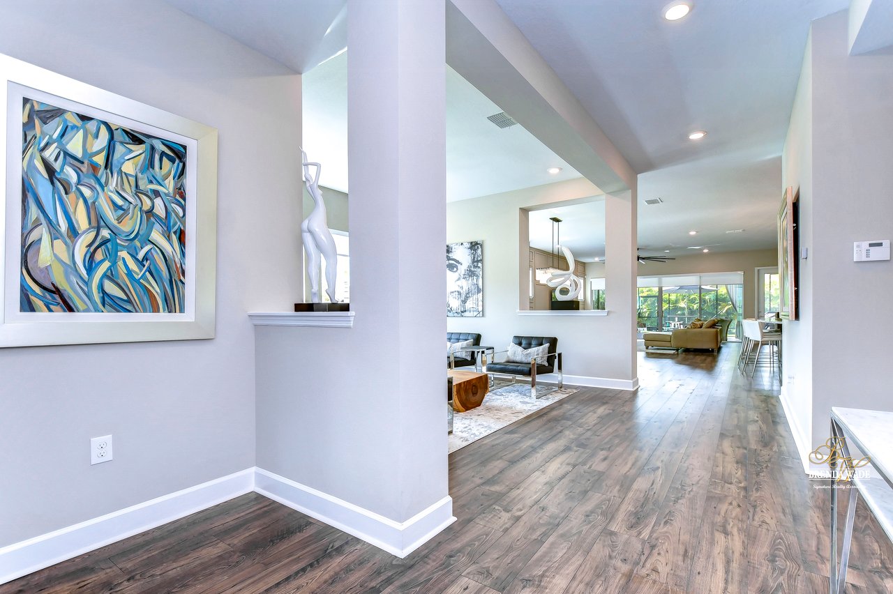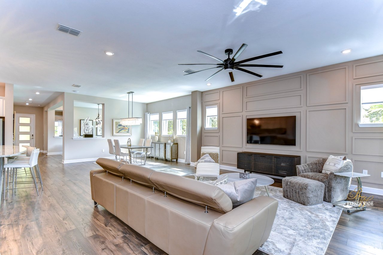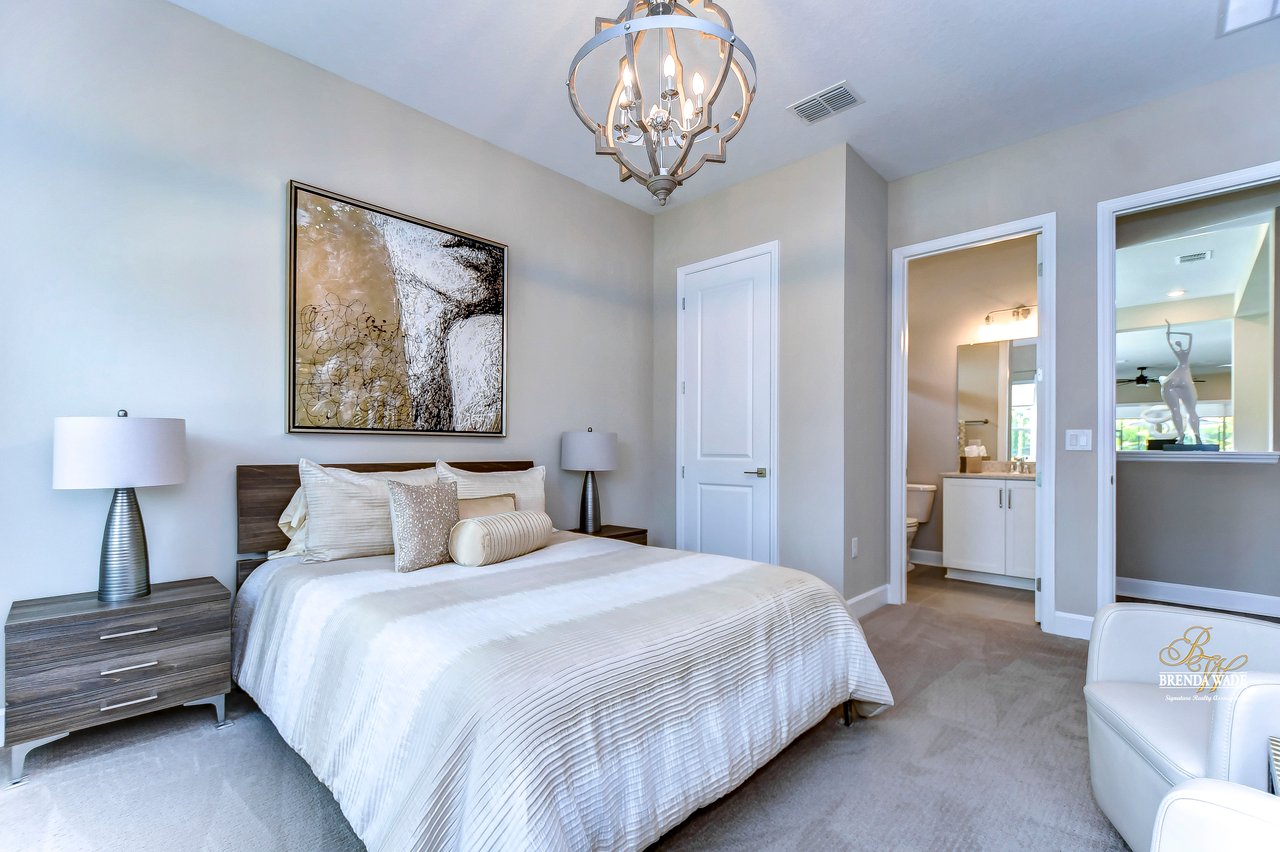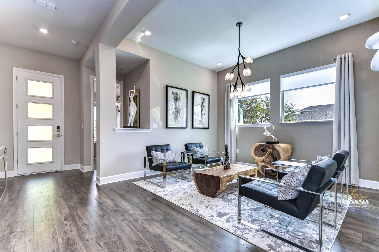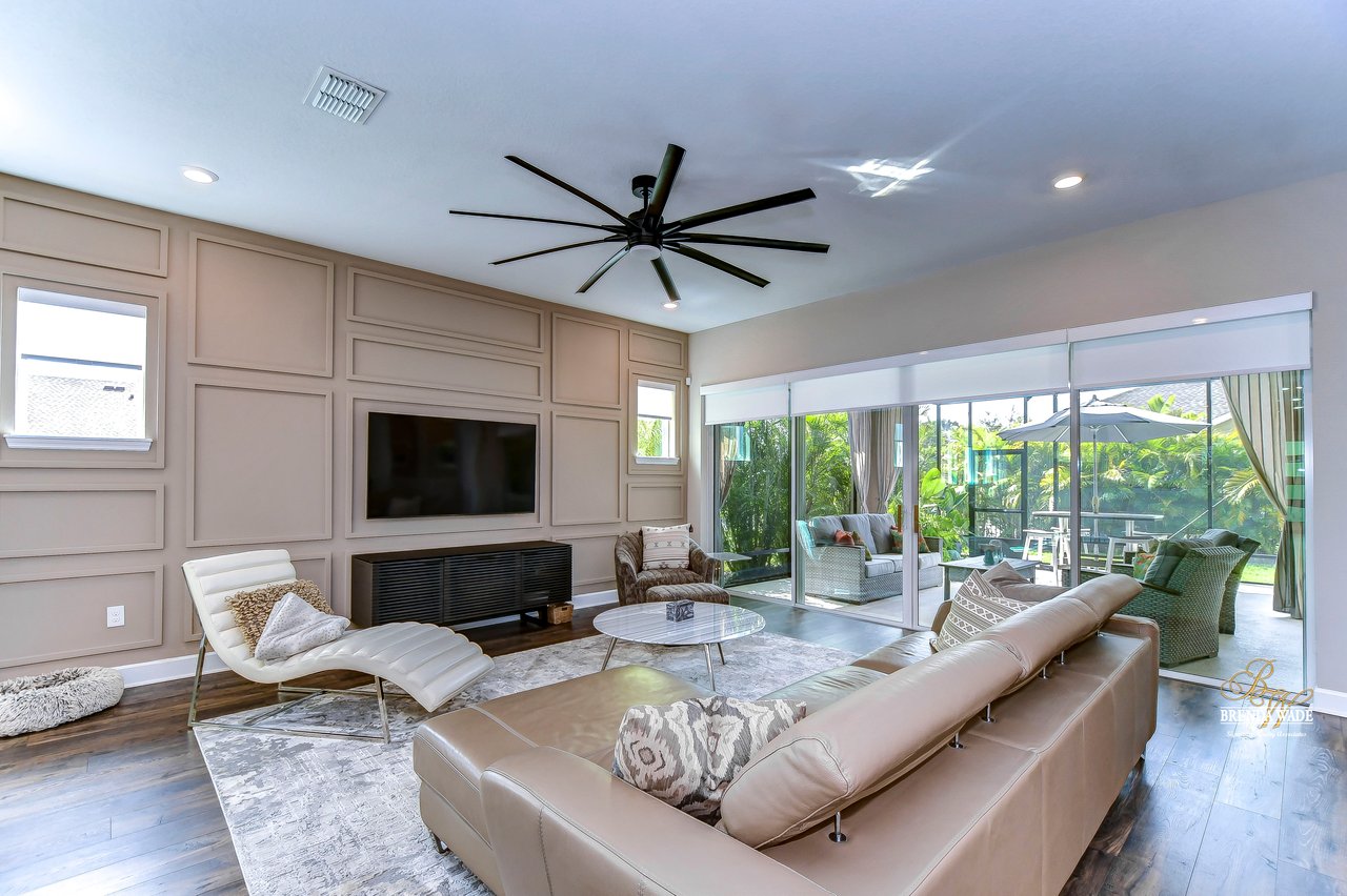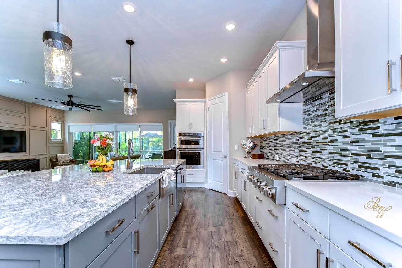 Welcome to the extraordinary resort-style living in Encore, a premier 55+ gated community that redefines the concept of active, hands-free living! A community where an on-site activities director ensures your social calendar is filled with exciting options. The Oasis Club, a hub of leisure and fitness, features a full fitness center, meeting spaces, club and party rooms, a PICKLEBALL court, multiple pools, bocce ball, fire pits, and beautiful trails. Nestled on an oversized corner lot, this stunning 3-bedroom, 3-bath home boasts a spacious 3-car garage, embodying the perfect blend of elegance and practicality. Beautiful tropical landscaping surrounds this exquisite home with pavered driveway, walkway, and stacked stone accents. The open concept and thoughtfully designed split bedroom floor plan offer an inviting and harmonious living experience. The heart of the home is a chef's dream, featuring a stunning kitchen with white cabinets, decorative backsplash, a HUGE center island with bar seating, and top-of-the-line stainless appliances. Entertain guests effortlessly in the spacious dining room adjacent to the kitchen, or enjoy the generous family room with accent well, and French door sliders leading to the inviting lanai. At the front of the home, discover a versatile flex space, perfect for an at-home office, music room, or art studio. The primary suite is a true oasis, graced with a tray ceiling, backyard views, and a STUNNING en-suite bath showcasing a luxurious, oversized walk-in shower and a HUGE custom walk-in closet with an island. Two additional bedrooms, situated in their private wing, offer large closets, and one boasts a private en-suite full bath--an ideal arrangement for guests or extended family. The entire residence emanates a sense of modern comfort and style. Conveniently located near shopping centers, parks, and dining options, this active 55+ community provides a secure and serene environment, making it the perfect place to call home. Don't miss the opportunity to experience this incredible lifestyle--schedule your private showing today and embrace the unparalleled luxury of Encore living!