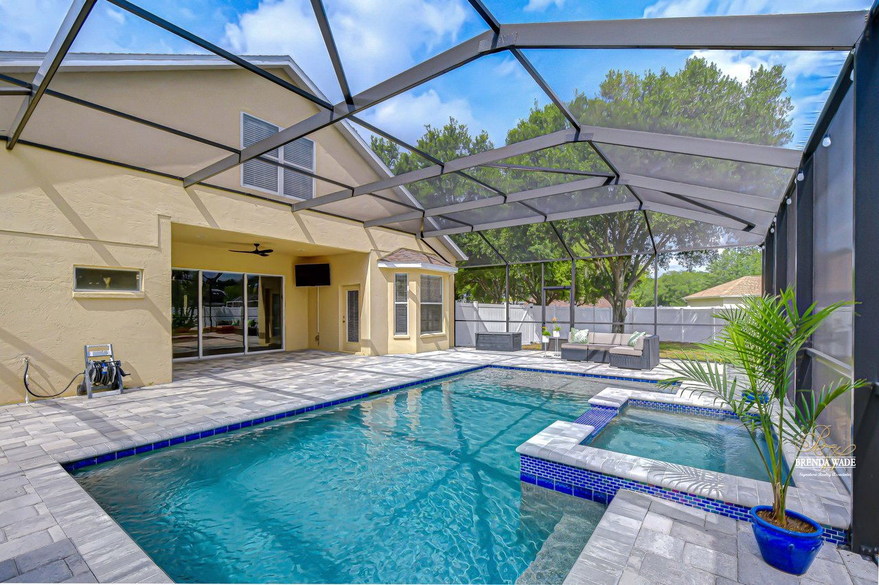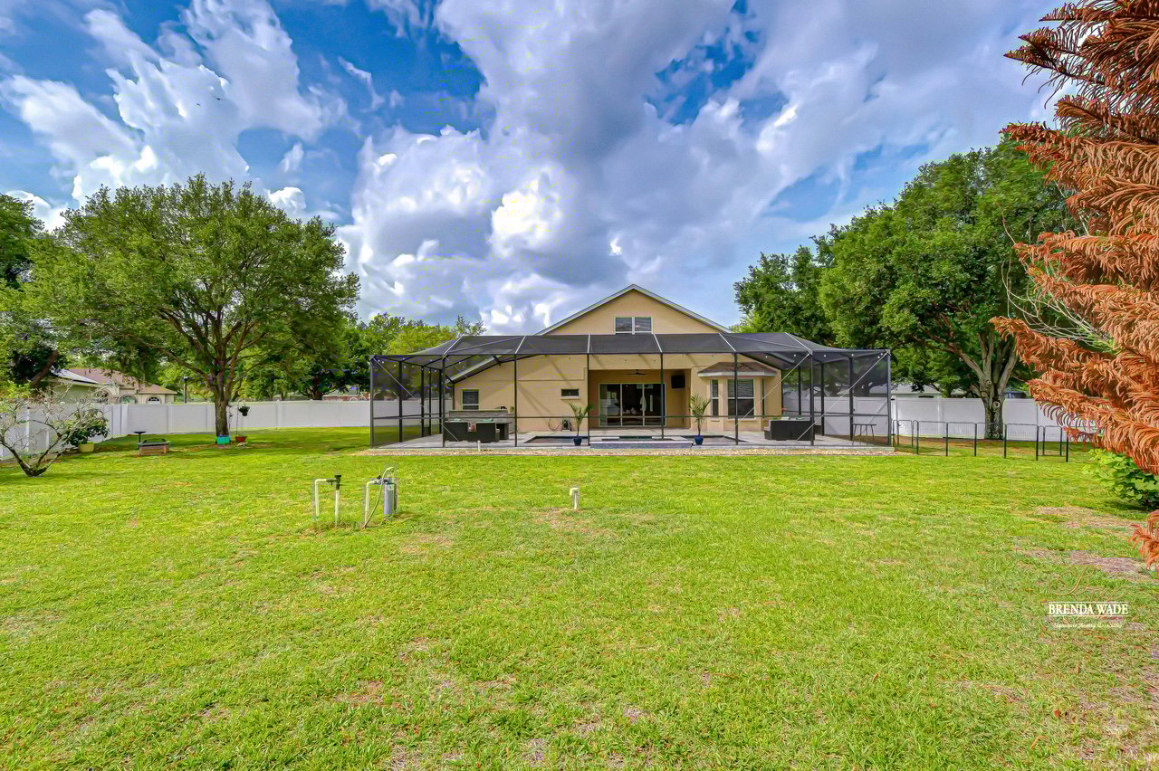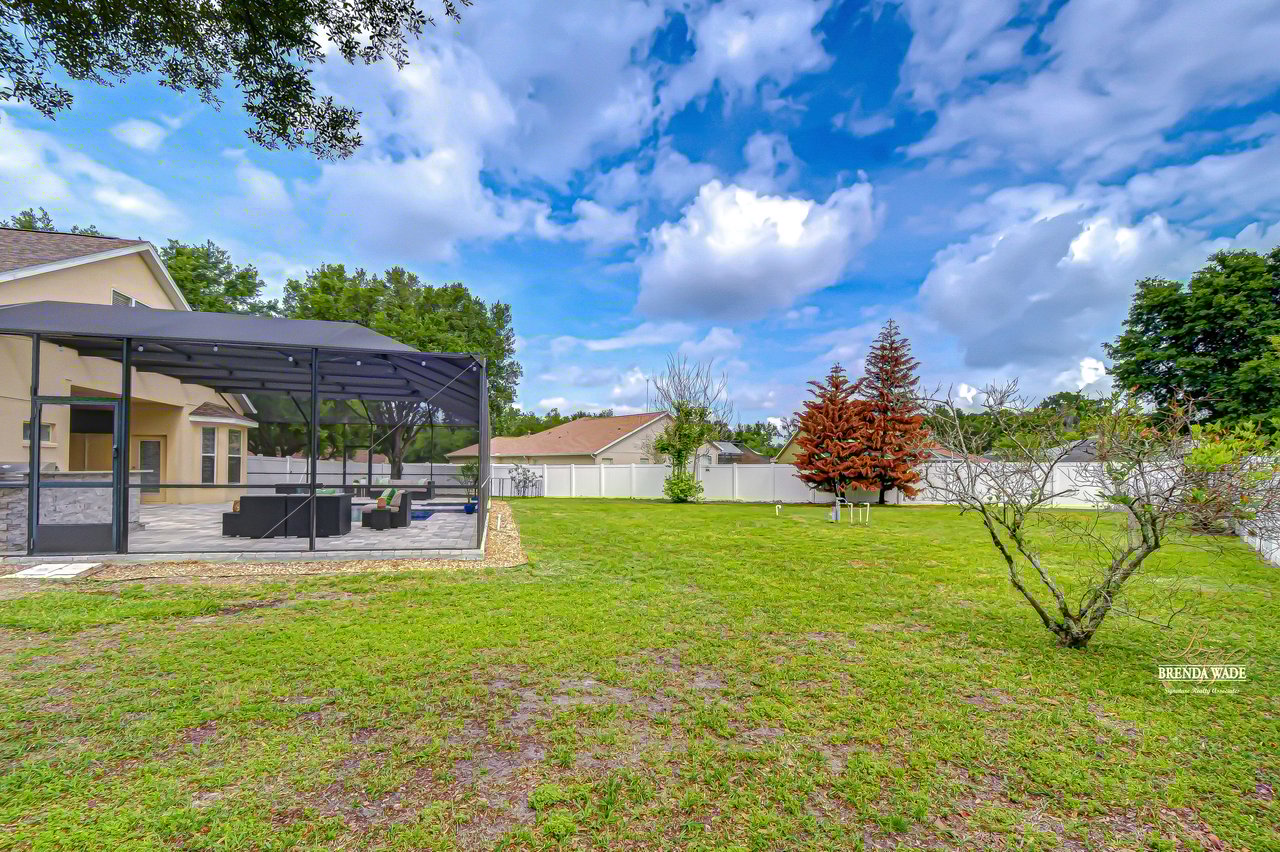 This beautifully renovated gated pool home offers a rare opportunity to own a private retreat on an oversized, nearly half-acre (.48) pie-shaped lot. Featuring 4 bedrooms, a bonus room, 3 bathrooms, and a 3-car garage, the property showcases exceptional curb appeal with lush landscaping and a fully fenced yard, along with major recent upgrades for peace of mind, including a new roof and gutters (2026), new well tank and pump (2026), power transfer switch installed in 2025- perfect for a generator, water heater (2025), and downstairs A/C replaced in 2025, upstairs A/C replaced in 2022, B-Hyve Smart Irrigation system installed in 2023. Step inside to a stunning gourmet kitchen (renovated in 2021) featuring solid quartz countertops, rich cappuccino cabinetry, matching stainless steel appliances, and a vented exhaust system. The breakfast area, oversized island, and cafe counters provide ample space for prep, serving, and casual dining, while the open-concept layout flows seamlessly into the spacious family room--perfect for entertaining and everyday living. Just off the main living space, enjoy the elegance of a private dining room with charming French doors, and a large family/great room with built-in shelving. The thoughtfully designed split floor plan offers privacy, highlighted by the extended primary retreat with double-door entry, bay windows, and direct access to the lanai and pool. The luxurious en suite bath features dual granite vanities, a garden whirlpool tub, separate tiled shower, and a large walk-in closet. On the opposite side of the home are two spacious bedrooms connected by a Jack & Jill bath, along with a private guest/in-law suite or office with a full pool bath and direct outdoor access. Upstairs, an expansive bonus/theater room provides additional flexible living space. Step outside to your ultimate Florida oasis--a resort-style brick-paver screened lanai featuring a heated saltwater pool and spa with Pebble Tech finish and smartphone-controlled automation system. The outdoor kitchen is fully equipped with a propane grill, side burner, and refrigerator, making it ideal for year-round entertaining. The expansive backyard offers plenty of space for kids, pets, and storage for RVs or boats, all enclosed with low-maintenance PVC fencing for maximum privacy. Additional features include wood-look ceramic tile flooring throughout the first floor (2020), modern paint, crown molding, ceiling fans, a water softener system (2020), ADT security system, a garage door system (2023), and expanded PVC fencing. Located in the highly desirable Creekside community, residents enjoy spacious homesites, low HOA fees, and NO CDD--all in a peaceful, private setting. This move-in-ready beauty is a must-see and will not last!