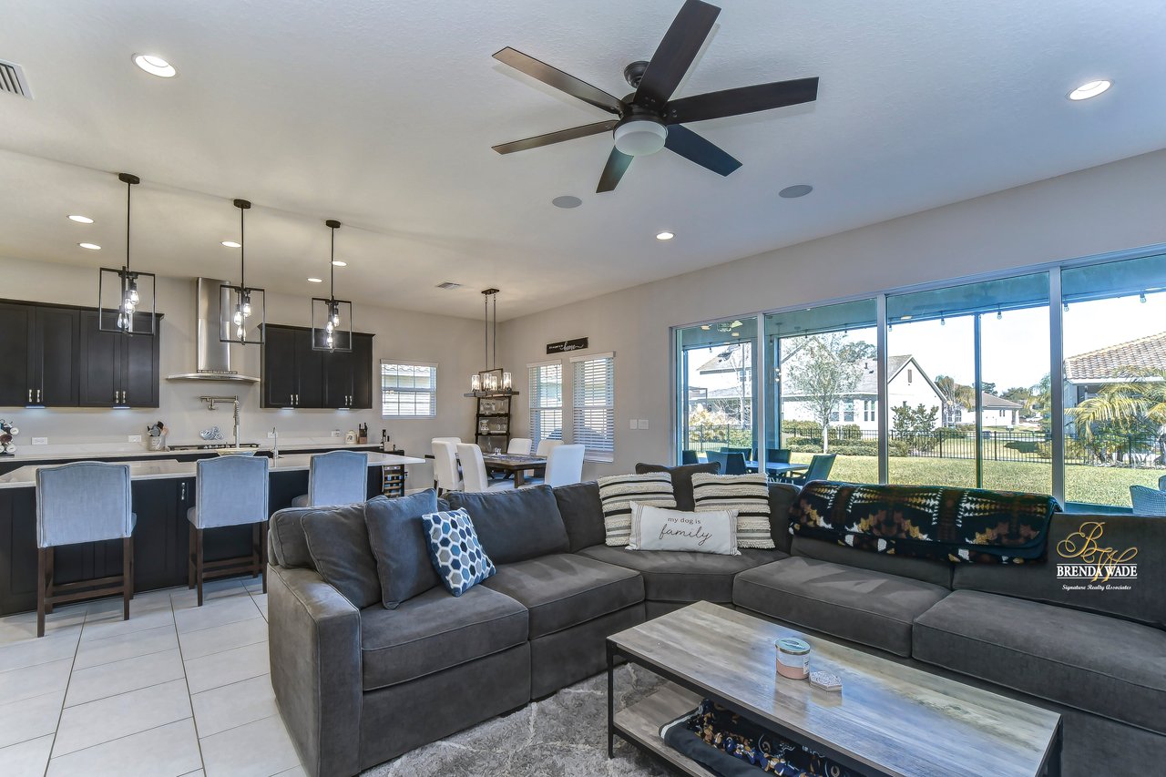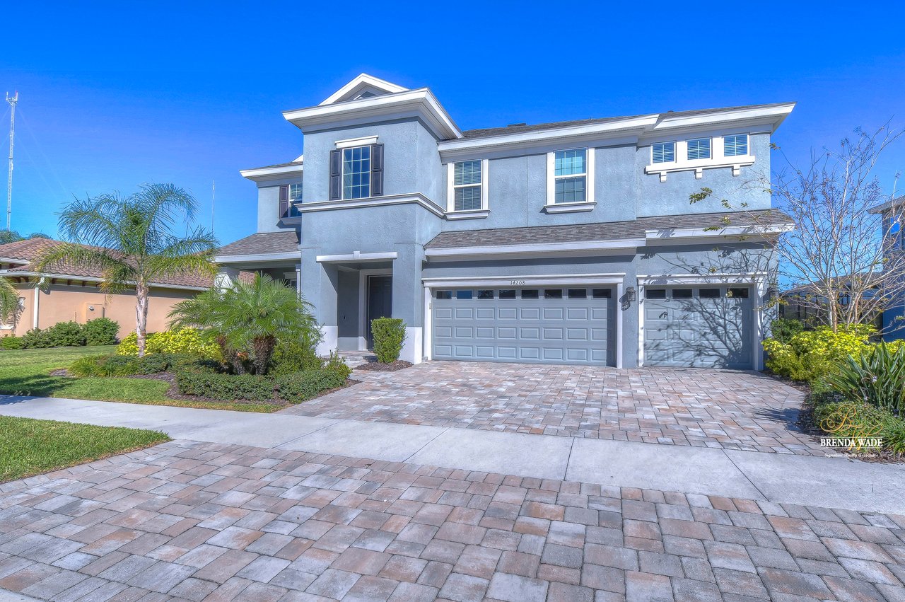 ** Price Reduction**HELLO GORGEOUS! This is your chance to own an absolutely perfect WestBay "Verona" home in the sought-after FishHawk Ranch West community! As you arrive at this picturesque home, you are greeted with meticulously maintained landscaping, charming front porch, 3-car garage, and brick pavered driveway! Once you step inside, notice the exceptional attention to detail and open-concept design! At the front of the home, there is a private home office behind a set of french doors! You have so much space to work from home! The kitchen is a chef's dream, featuring built-in stainless steel appliances, gorgeous stone countertops, sleek 42-in cabinets topped with crown, and a large island that serves as the perfect gathering spot! The dining area is equally impressive, with beautiful light fixtures and large windows that provide a great view of the backyard! The great room is adorned with large tile flooring, soaring ceilings, and an abundance of natural light that floods the space! There is a wall of sliders that open up so you can entertain on the lanai easily for an outdoor living space! The first floor features the perfect in-law suite with a bedroom that offers a walk-in closet, and a full bathroom nearby and outside access! Head upstairs and you will immediately notice the HUGE bonus loft that can keep all of the kids' clutter out of the living areas! This ginormous room is so versatile; ready to host your theater room, playroom, or anything else that you may desire! The primary suite is a true masterpiece boasting a large bedroom, incredible spa-like bathroom with large soaking tub, walk-in shower, separate vanities, and dreamy walk-in closet lined with organizers and drawers! Each of the additional bedrooms is spacious and inviting, offering ample closet space and there is even a jack-and-jill bathroom! The screened lanai is nice in size and overlooks the yard! Located in FishHawk Ranch West, you will love being surrounded by walking trails, resort-style pools, clubhouse, fitness center, and game room! There is a shopping center including a Publix at the front of the neighborhood, and you are zoned for A-rated schools; what more could you ask for?!