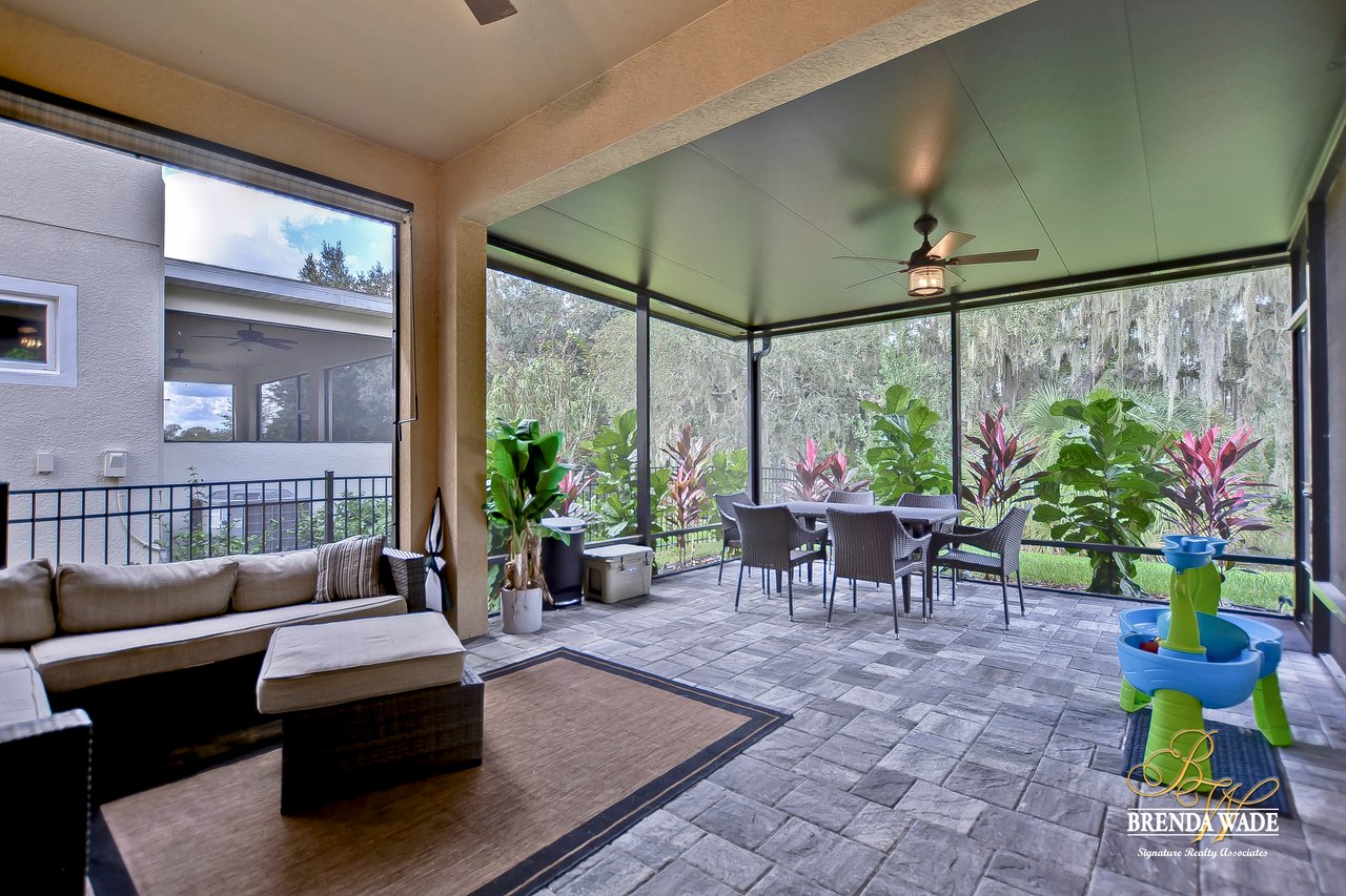 Are you ready to be blown away? This gorgeous David Weekley home features all the bells and whistles! Located on one of the very few true conservation lots in FishHawk West, this home feels so private! The quiet street and marvelous curb appeal draw you in! Through the leaded and beveled glass front door you will appreciate the bright open floor plan with neutral paint and soaring ceilings right away! The beautiful entryway features stylish niches with wood finishes, the perfect space to display family photos. This open concept floor plan makes the most of your living space while also feeling very functional for day to day use! Kitchen is a dream boasting granite counters, stainless appliances, farmhouse sink and tons of cabinet space! Dining room and family room are open to the kitchen! Private split floor plan keeps the master secluded downstairs with picture windows and spa-like en-suite with oversized walk-in shower, his and her sinks and huge walk-in closet with quick access to the laundry room, how convenient is that! Need more space for family and guests? Head upstairs and find three more bedrooms and a large open bonus room that would make a great game room, kids play room or even a home office space, the options are endless! Outside is an extended screened and covered lanai, enjoy the outdoors in all kinds of weather! All this is accompanied by the one of a kind, resort style amenities FishHawk has to offer including; parks, playgrounds, recreation center, fitness, tennis/basketball courts and more!