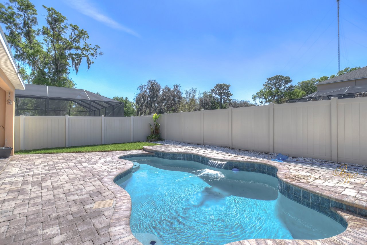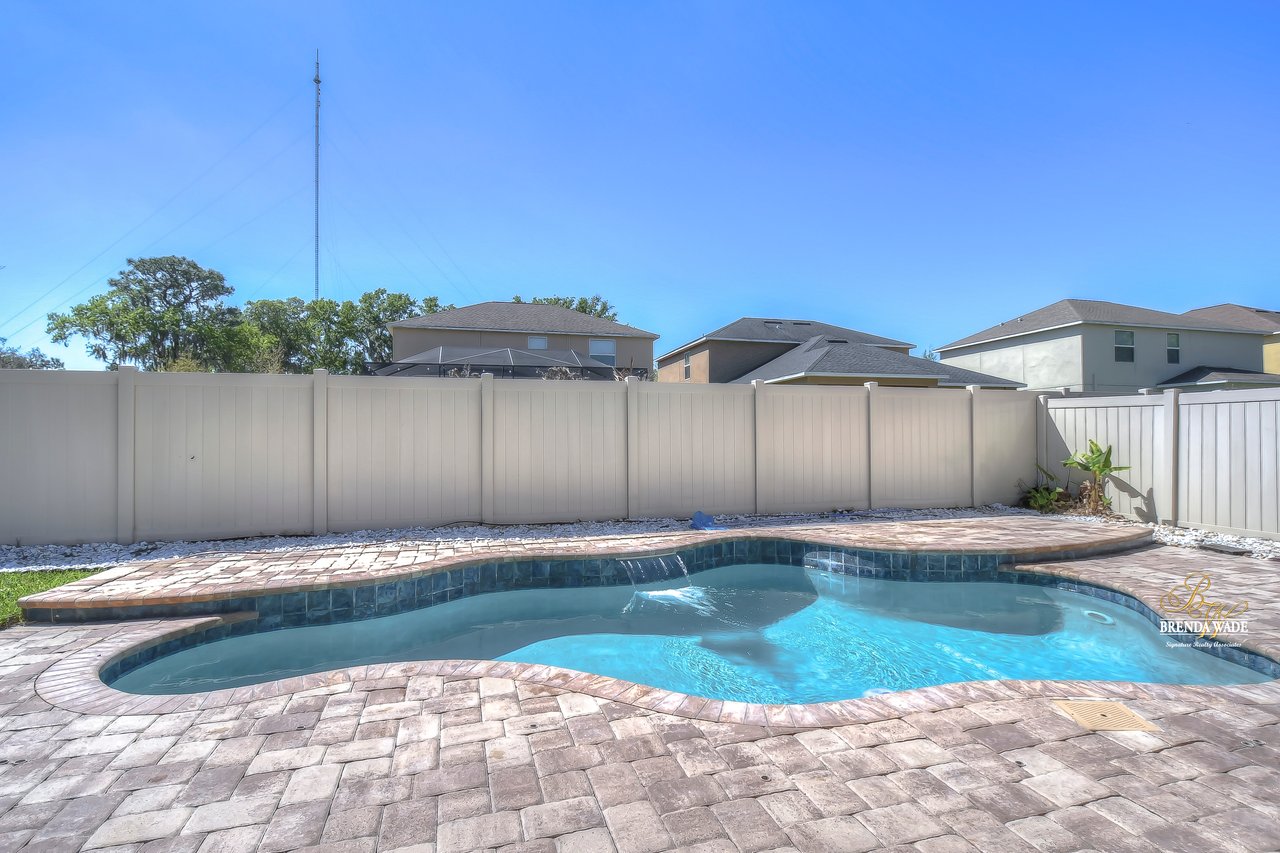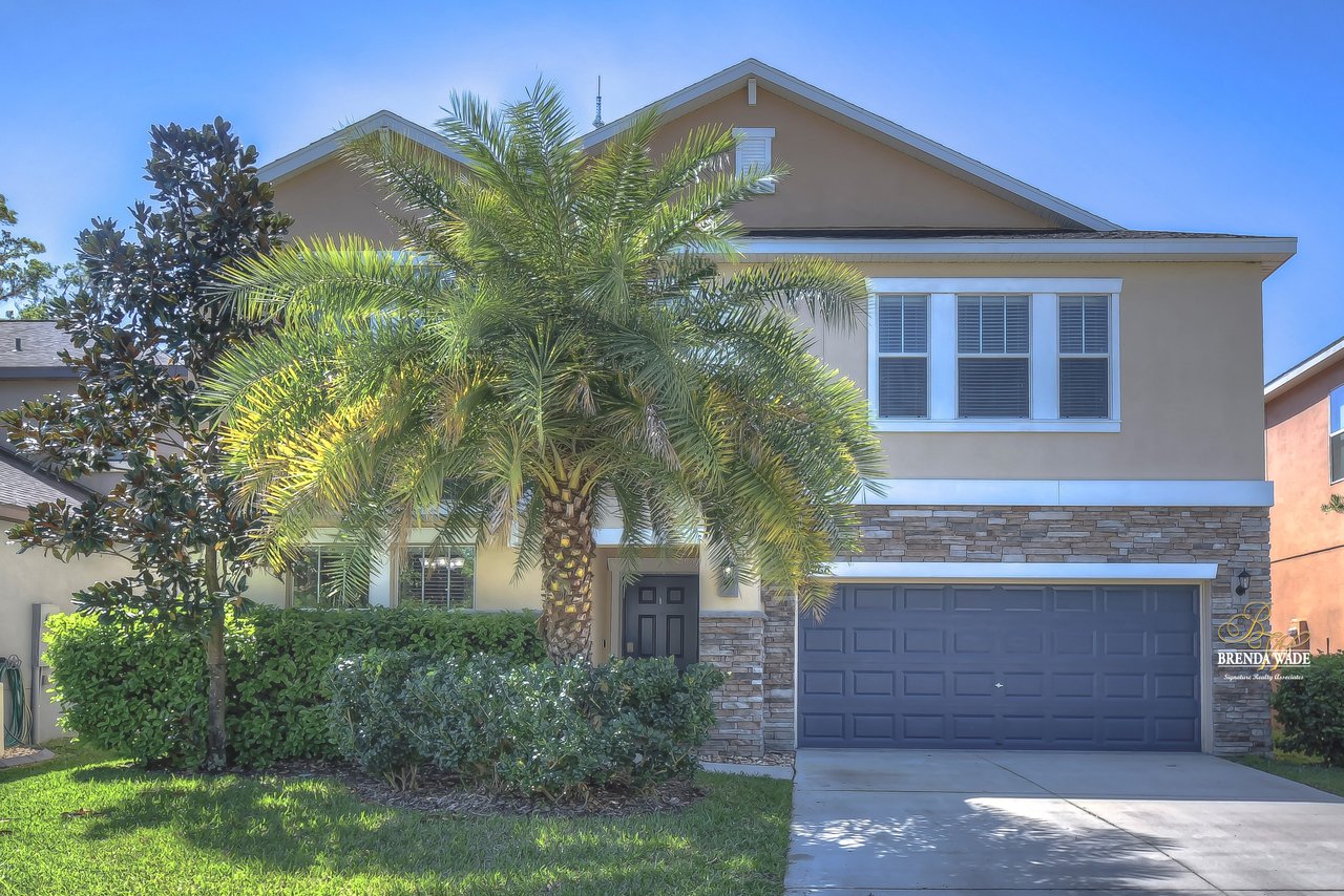 Gorgeous move-in ready pool home zoned for the TOP schools in Hillsborough County! 5-bedrooms, 3 1/2-bathrooms, plus H U G E bonus loft complete this 3,791 sqft masterpiece! The gated Enclave at Boyette is SO desirable with NO CDD fees and a low HOA! Immaculate curb appeal offers stacked stone accents and meticulous landscaping welcoming you inside! A formal dining room will be the center of all holiday meals to come and has a butler's pantry that connects to the kitchen! WOW! This kitchen is perfection! Espresso wood cabinets topped with crown, granite countertops, stainless appliances, and large center island combine to create the heart of the home! There is an open breakfast nook that flows into the spacious family room with a wall of windows offering a spectacular pool view! The owner's suite is secluded on the first floor with tray ceiling, oversized walk-in closet, separate vanities, walk-in shower, and soaking tub! Head upstairs and discover the large, versatile bonus loft! You could turn this into a playroom to store the kids' clutter away from the living area, or even a game or media room! The four additional bedrooms throughout the second-floor share two bathrooms, both with dual sinks! Your private sparkling salt-water pool will be the entire family's favorite place to spend their summer days! The brick-paved lanai has a covered area to relax in the shade and pets can run free in the fenced yard! This house LIVES BIG and is ready for its new owners to call it home!