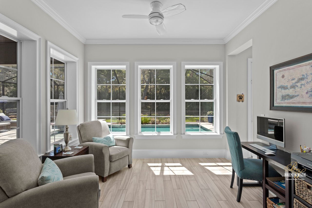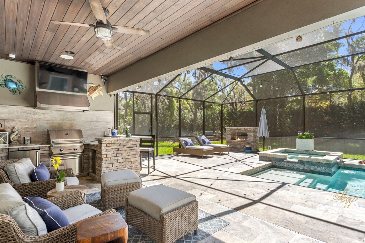 This is the opportunity you have been waiting for. Lovely living as you enter the gates to private luxury and easy access in & out of FishHawk. Arrive & notice the charm of the oversized brick drive to the custom estate, perfectly situated on a premium lot in the prestigious, gated Preserve of FishHawk. A pristine lot with no rear neighbors, this home offers the ultimate privacy, serenity, & sophisticated living. Before you go inside, turn around & pinch yourself while looking at what your front porch view will be. You will spend lots of mornings & evenings counting your blessings while sitting on the porch of your piece of paradise! Every inch of this thoughtfully designed home exudes elegance & craftsmanship. The grand foyer is greeted by soaring dual-level ceilings, bathed in natural light, flowing seamlessly into the open-concept family room. Notice the rich wood inlays in the double-height tray ceilings & a sweeping staircase adorned with intricate wrought-iron balusters. You immediately know when you step inside that someone thought through every detail & you can be the recipient of their dream. The gourmet kitchen is a chef's dream, seamlessly connecting to the family room & sunroom--creating a luminous, open gathering space ideal for entertaining. A butler's pantry between the kitchen & dining room ensures effortless hosting. Large rooms, soaring ceilings, open to the kitchen, the pool, sunroom.....it doesn't get much better. Retreat to the main-level primary suite, a sanctuary of comfort & style, featuring a spa-inspired en-suite with dual vanities, makeup station, expansive walk-in shower, & a colossal L-shaped walk-in closet with custom organization. Everyday will be a vacation when you wake up with your amazing pool view overlooking the preserve. You will live the good life starting from early mornings to late nights. This floor-plan was customized to give this family what everyone wants, a true 5-bedroom home, with a second downstairs suite. Upstairs, 3 additional bedrooms each include spacious walk-in closets. Two share a Jack-and-Jill bath, while the fourth enjoys a private en-suite. A massive bonus room with a custom barn door & its own walk-in closet provides endless possibilities for a media room, playroom, or home office, complemented by a nearby powder room. Step outside to a resort-style backyard oasis. Entertain in style on the updated travertine lanai, with a heated saltwater pool & spa, natural gas fireplace, & fully equipped outdoor kitchen, all set against the tranquil backdrop of the preserve. A fully fenced yard with lush live privacy screening enhances the feeling of seclusion & luxury. Built with sustainability & longevity in mind, this home was certified green at construction, offering energy-efficient living without sacrificing style or comfort. From custom wainscoting & porcelain tile floors to thoughtful storage solutions & designer finishes, every detail is meticulously curated to elevate daily living. This extraordinary home combines timeless elegance, modern functionality, & unparalleled entertainment spaces--truly a masterpiece in one of FishHawk's most coveted gated communities. Did I mention this is Bevis Elementary & Newsome High School? Don't forget all the amenities of FishHawk, but Disney & the beach in approx an hour. There is not a better house on the market.