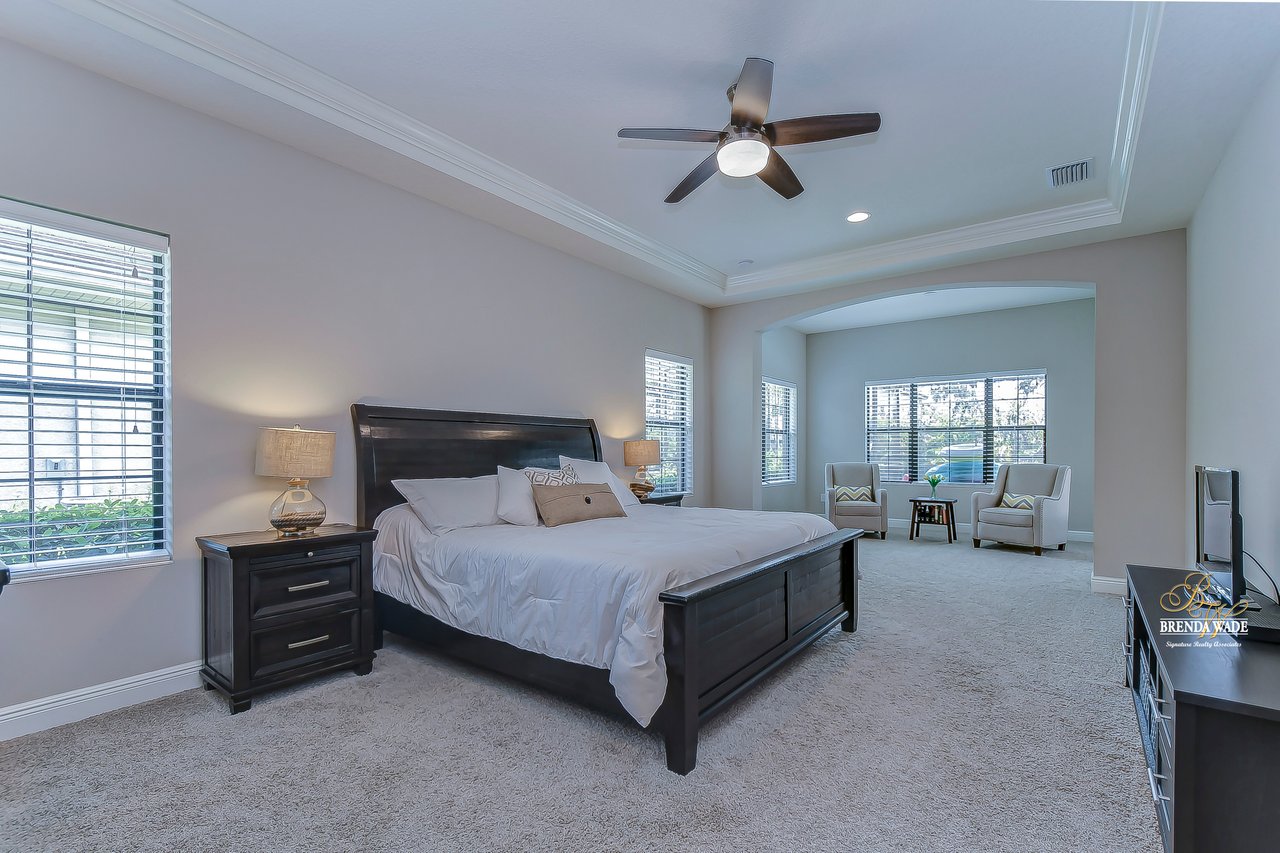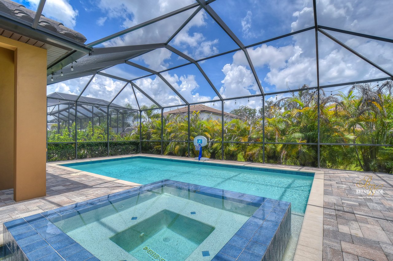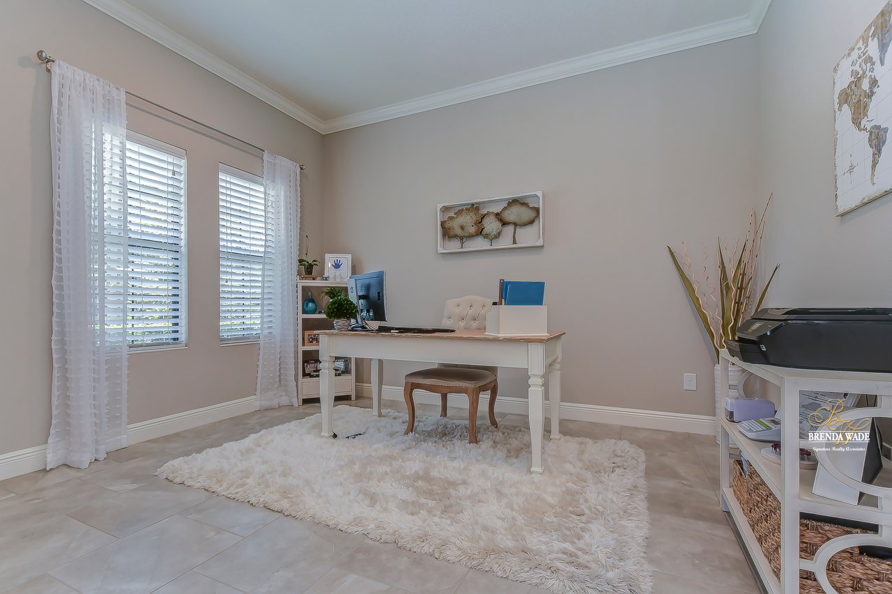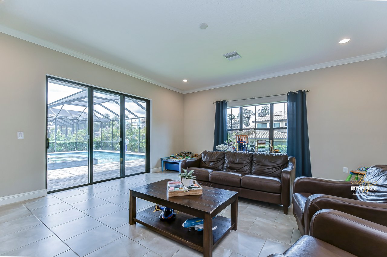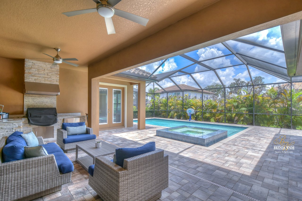 This home is a MUST SEE! This is the one you have been waiting for! Located in the coveted FishHawk Preserve community, this WestBay built "Carrera" executive home with over 3,600 sqft showcases tasteful features throughout! Bring your most discerning buyers, the one-story design offers updates that you would only expect from a premier builder! Sitting on an oversized 0.31-acre elevated lot tucked at the back of the neighborhood, you will love the location of the home! Arrive and be impressed by the striking features that include stacked stone accents, tile roof, pavered driveway and entrance, side entry garage, and decorative shutter accents! Through the double front doors, you arrive in the stunning foyer! Notice the soaring ceilings with crown molding, wide baseboards, tall doorways, and the popular neutral paint palette! The spacious office with crown sits behind double French doors and is the perfect spot for a quality work environment! On the other side of the foyer is the large dining room with tray ceiling and windows, what a great area to entertain friends and family! Continue on to the kitchen and fall in love with the maple cabinets with espresso finish with toppers and crown! The kitchen also features a huge island with seating, stainless appliances including a built-in oven, Zodiaq counters, and walk-in pantry! The great room is open to the kitchen and features an electric fireplace surrounded by a stunning floor-to-ceiling stone accent wall! In addition, you have the 4-door slider that gives you your obligatory pool views! On one side of the great room there is the primary suite that is entered through the double doors! The suite is huge and offers tray ceiling with crown, sitting area with French door to the lanai, and large walk-in closet! The en-suite bath houses a second walk-in closet, spacious walk-in shower, separate soaking tub and his and hers sinks! On the other side of the home there are 2 bedrooms - one with walk-in closet - that share a full bath and the 4th bedroom, also with a walk-in closet, utilizes the pool bath! At the back of the home, there is an oversized bonus room with slider to the lanai that is pre-plumbed for a wet bar! The current owners have added built-ins to the laundry room which is a nice touch! The home is also pre-wired for surround sound on the lanai and great room, offers Zodiaq counters in all baths, and provides a tankless water heater to give you an endless supply of hot water! The pavered lanai is home to the beautiful salt-water pool and spa! An outdoor kitchen with grill, sink, and fridge was added in 2017 making this your go-to spot when entertaining friends and family! Come make an appointment to take a look at your dream home today!