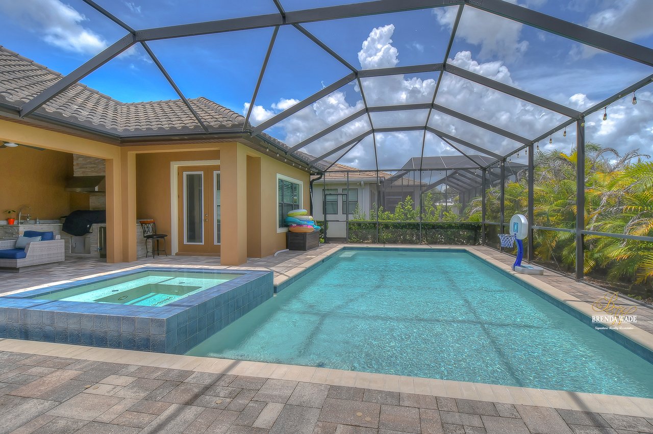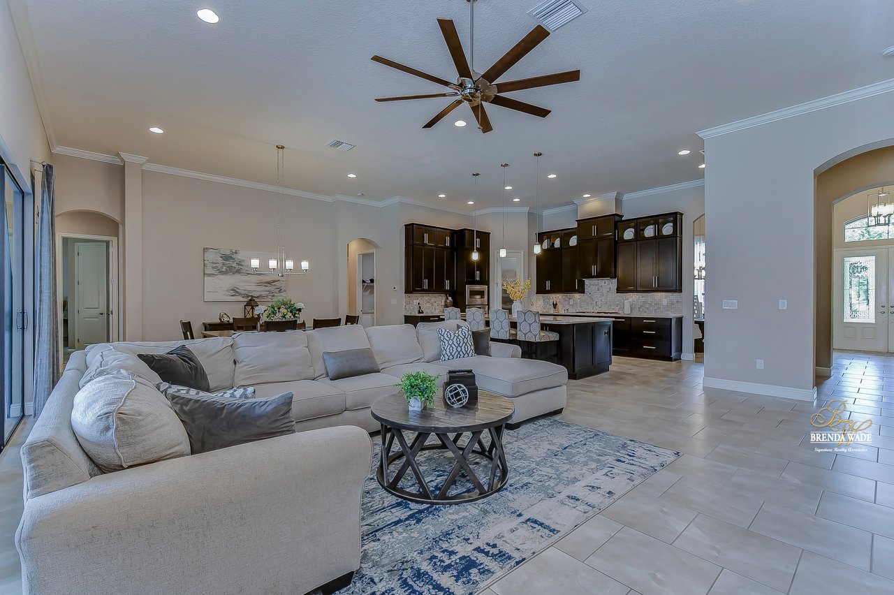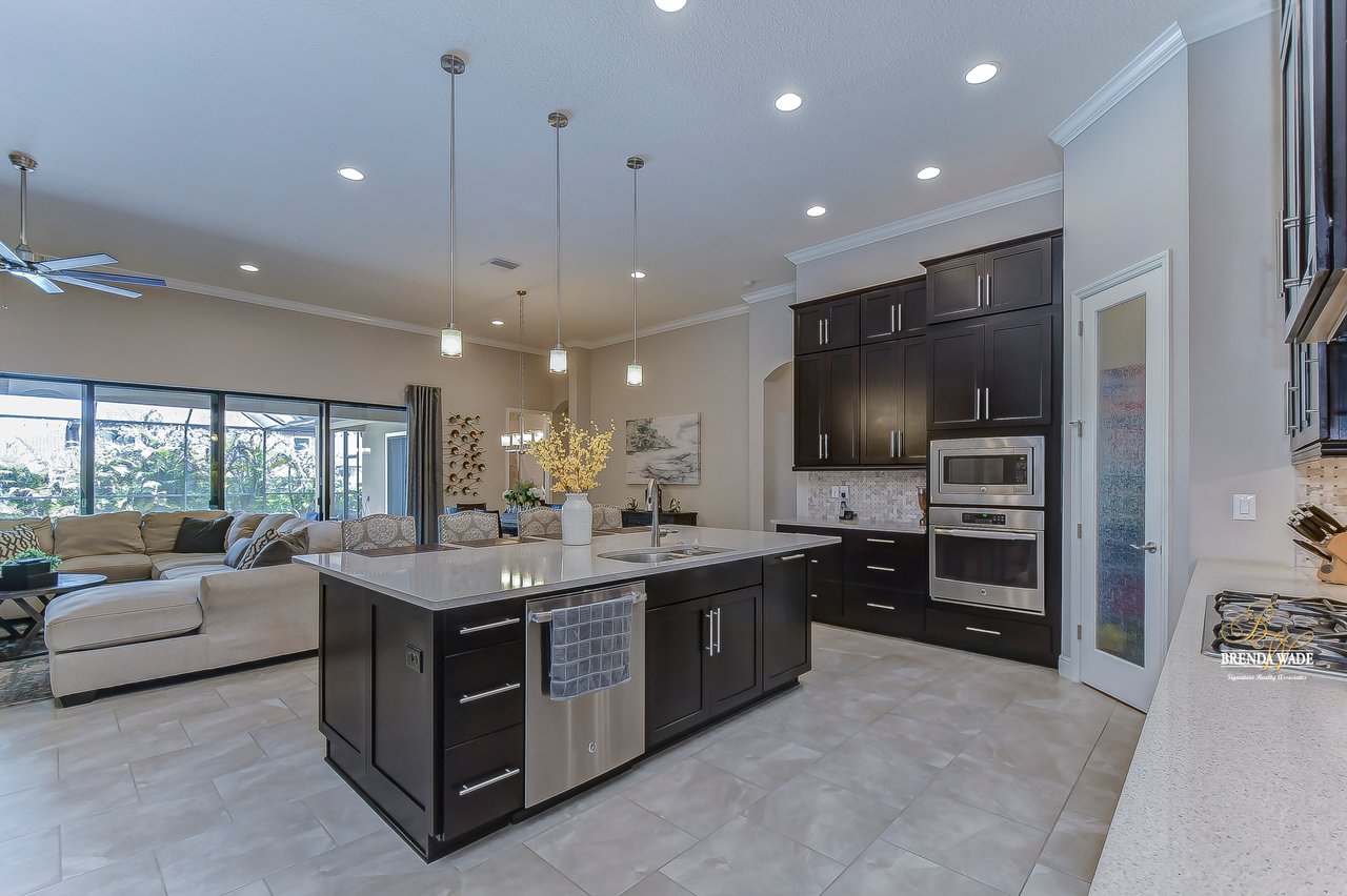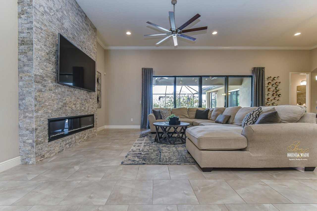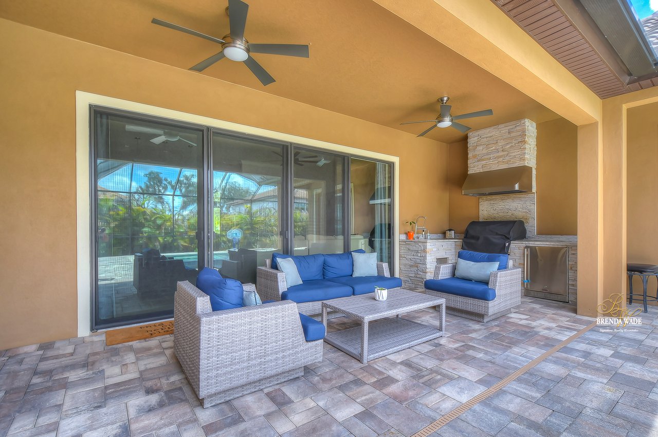 This home is a MUST SEE! This is the one you have been waiting for! Located in the coveted FishHawk Preserve community, this WestBay built "Carrera" executive home with over 3,600 sqft showcases tasteful features throughout! Bring your most discerning buyers, the one-story design offers updates that you would only expect from a premier builder! Sitting on an oversized 0.31-acre elevated lot tucked at the back of the neighborhood, you will love the location of the home! Arrive and be impressed by the striking features that include stacked stone accents, tile roof, pavered driveway and entrance, side entry garage, and decorative shutter accents! Through the double front doors, you arrive in the stunning foyer! Notice the soaring ceilings with crown molding, wide baseboards, tall doorways, and the popular neutral paint palette! The spacious office with crown sits behind double French doors and is the perfect spot for a quality work environment! On the other side of the foyer is the large dining room with tray ceiling and windows, what a great area to entertain friends and family! Continue on to the kitchen and fall in love with the maple cabinets with espresso finish with toppers and crown! The kitchen also features a huge island with seating, stainless appliances including a built-in oven, Zodiaq counters, and walk-in pantry! The great room is open to the kitchen and features an electric fireplace surrounded by a stunning floor-to-ceiling stone accent wall! In addition, you have the 4-door slider that gives you your obligatory pool views! On one side of the great room there is the primary suite that is entered through the double doors! The suite is huge and offers tray ceiling with crown, sitting area with French door to the lanai, and large walk-in closet! The en-suite bath houses a second walk-in closet, spacious walk-in shower, separate soaking tub and his and hers sinks! On the other side of the home there are 2 bedrooms - one with walk-in closet - that share a full bath and the 4th bedroom, also with a walk-in closet, utilizes the pool bath! At the back of the home, there is an oversized bonus room with slider to the lanai that is pre-plumbed for a wet bar! The current owners have added built-ins to the laundry room which is a nice touch! The home is also pre-wired for surround sound on the lanai and great room, offers Zodiaq counters in all baths, and provides a tankless water heater to give you an endless supply of hot water! The pavered lanai is home to the beautiful salt-water pool and spa! An outdoor kitchen with grill, sink, and fridge was added in 2017 making this your go-to spot when entertaining friends and family! Come make an appointment to take a look at your dream home today!