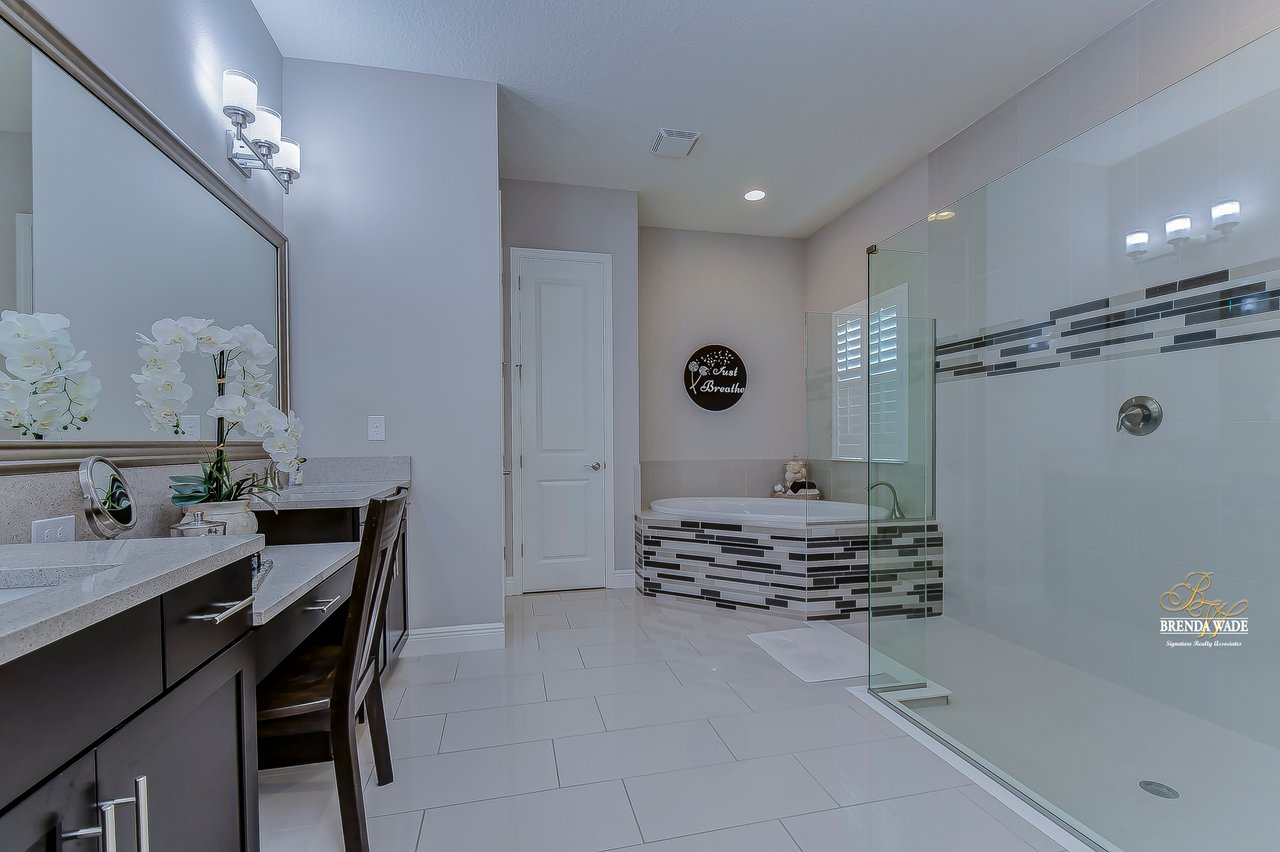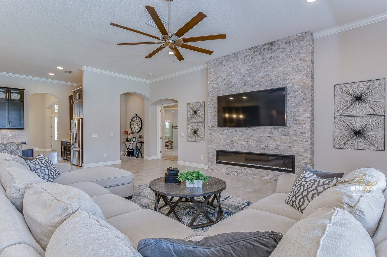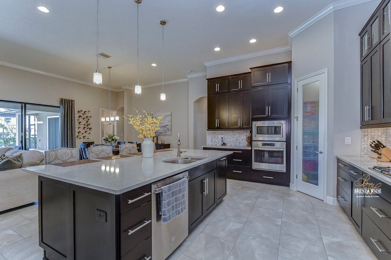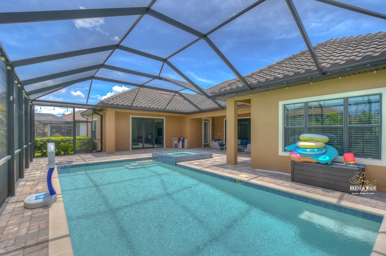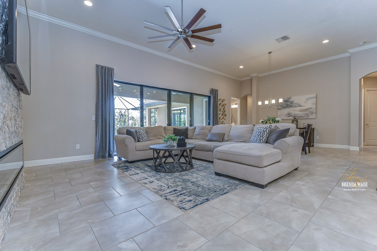 This home is a MUST SEE! This is the one you have been waiting for! Located in the coveted FishHawk Preserve community, this WestBay built "Carrera" executive home with over 3,600 sqft showcases tasteful features throughout! Bring your most discerning buyers, the one-story design offers updates that you would only expect from a premier builder! Sitting on an oversized 0.31-acre elevated lot tucked at the back of the neighborhood, you will love the location of the home! Arrive and be impressed by the striking features that include stacked stone accents, tile roof, pavered driveway and entrance, side entry garage, and decorative shutter accents! Through the double front doors, you arrive in the stunning foyer! Notice the soaring ceilings with crown molding, wide baseboards, tall doorways, and the popular neutral paint palette! The spacious office with crown sits behind double French doors and is the perfect spot for a quality work environment! On the other side of the foyer is the large dining room with tray ceiling and windows, what a great area to entertain friends and family! Continue on to the kitchen and fall in love with the maple cabinets with espresso finish with toppers and crown! The kitchen also features a huge island with seating, stainless appliances including a built-in oven, Zodiaq counters, and walk-in pantry! The great room is open to the kitchen and features an electric fireplace surrounded by a stunning floor-to-ceiling stone accent wall! In addition, you have the 4-door slider that gives you your obligatory pool views! On one side of the great room there is the primary suite that is entered through the double doors! The suite is huge and offers tray ceiling with crown, sitting area with French door to the lanai, and large walk-in closet! The en-suite bath houses a second walk-in closet, spacious walk-in shower, separate soaking tub and his and hers sinks! On the other side of the home there are 2 bedrooms - one with walk-in closet - that share a full bath and the 4th bedroom, also with a walk-in closet, utilizes the pool bath! At the back of the home, there is an oversized bonus room with slider to the lanai that is pre-plumbed for a wet bar! The current owners have added built-ins to the laundry room which is a nice touch! The home is also pre-wired for surround sound on the lanai and great room, offers Zodiaq counters in all baths, and provides a tankless water heater to give you an endless supply of hot water! The pavered lanai is home to the beautiful salt-water pool and spa! An outdoor kitchen with grill, sink, and fridge was added in 2017 making this your go-to spot when entertaining friends and family! Come make an appointment to take a look at your dream home today!