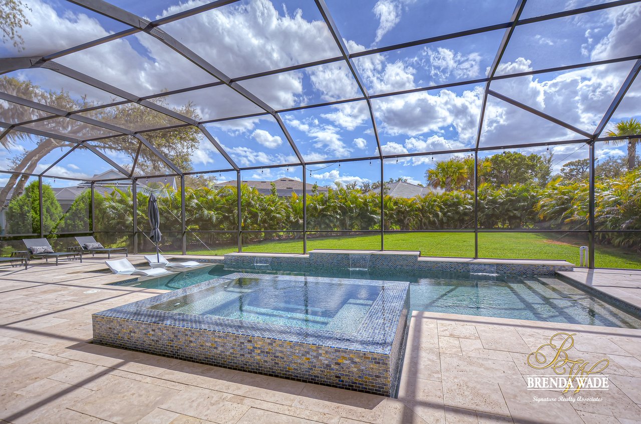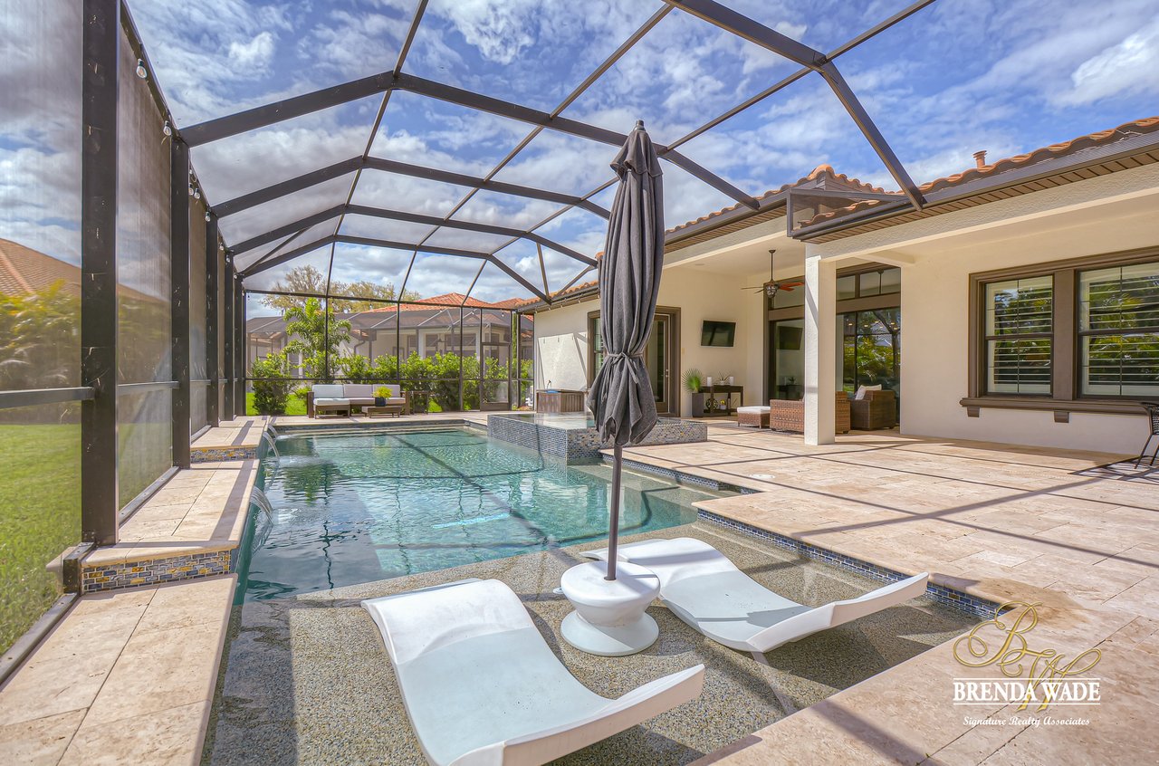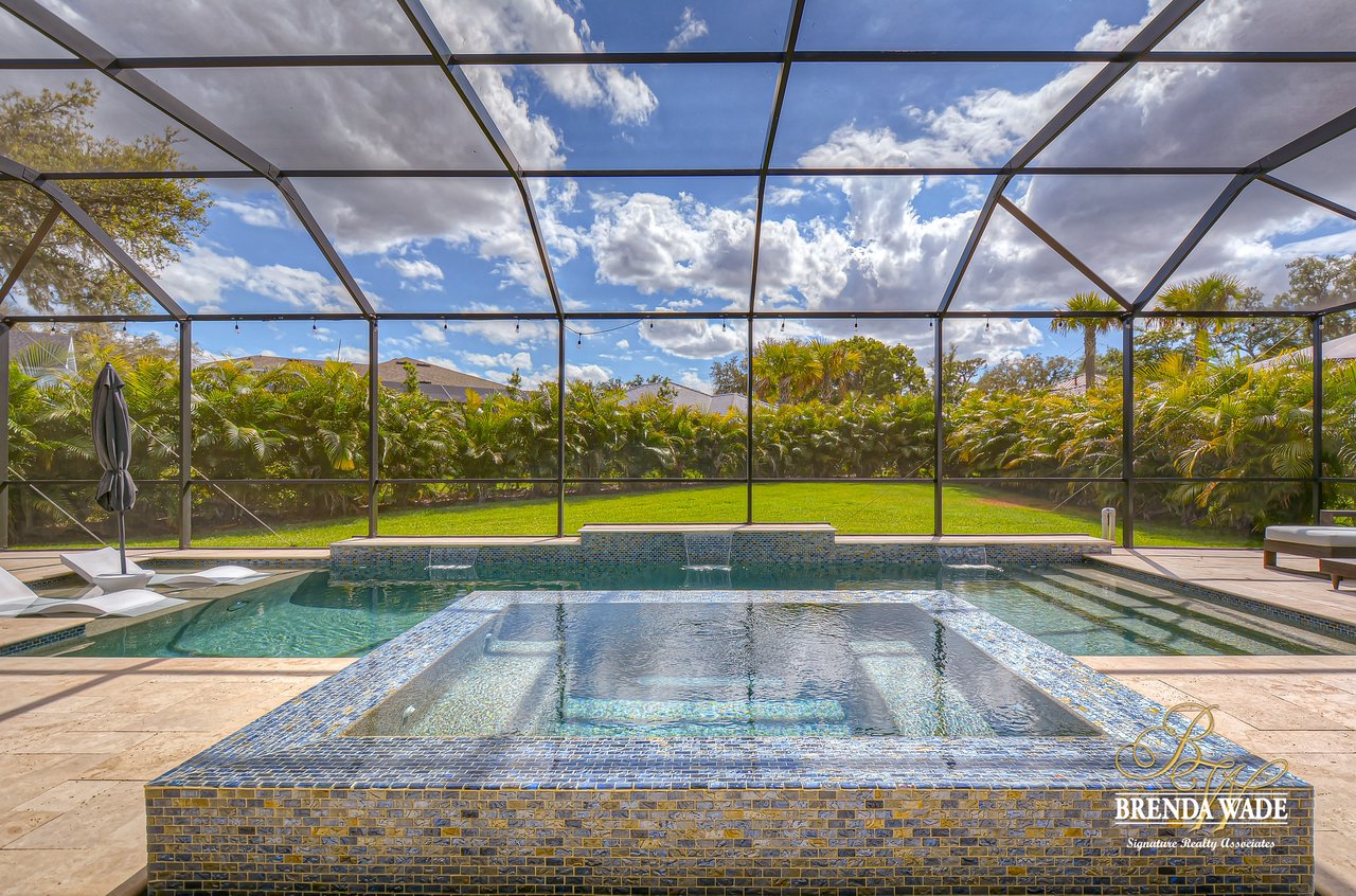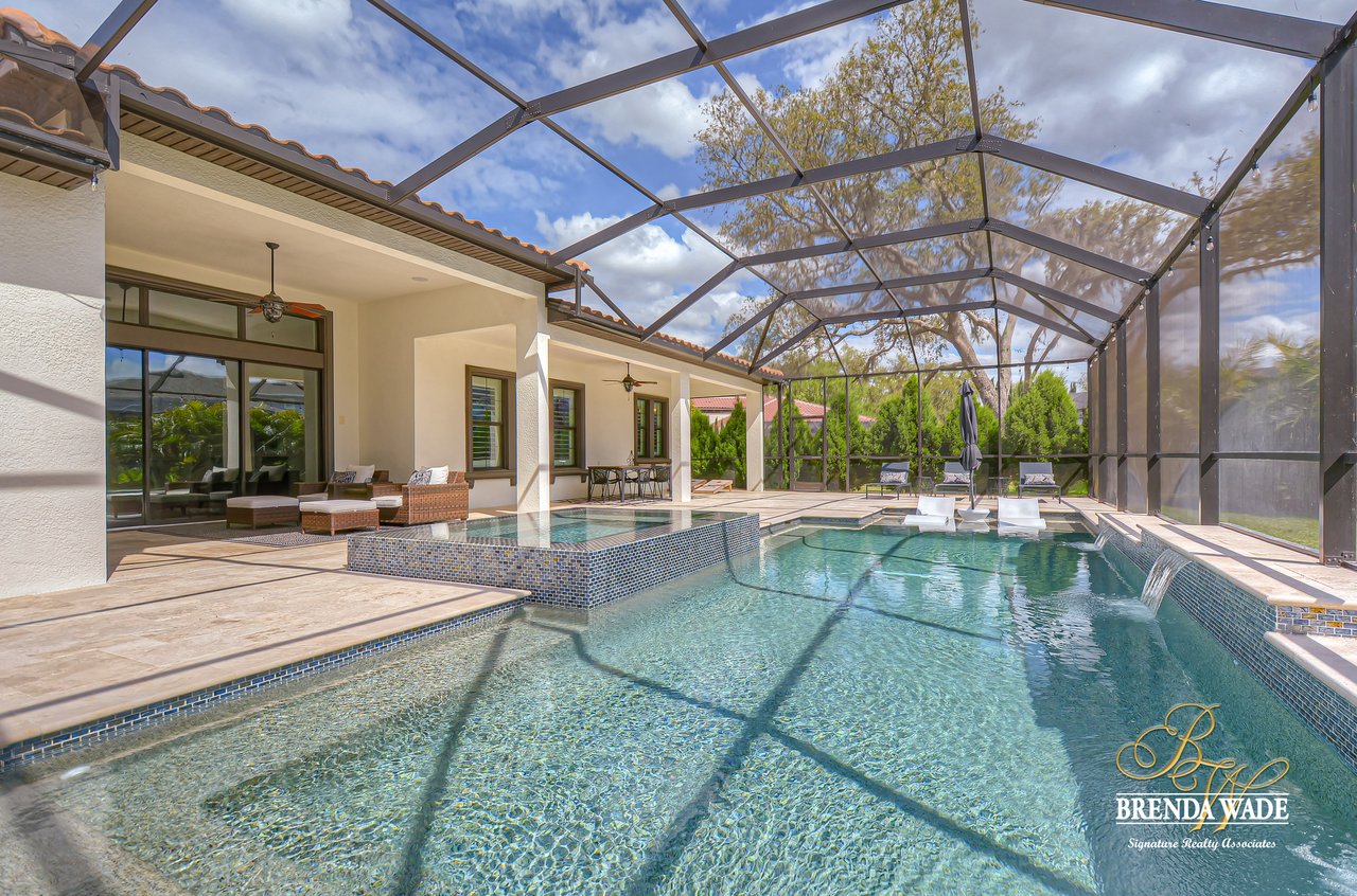 This House Is a Knockout! This ravishing custom Design will make all your home buying dreams come true! Welcome to the elegant Cardel Homes “Waldorf” plan, where luxury meets functionality! Everything in this home is top of The Line; from the crown molding down to the brilliant hardwood floors! Nestled on a premium lot the Mediterranean curb appeal will have you head over heels in love from the start! Take a tour and notice the dazzling white kitchen boasting Cambria countertops, vast center island and upgraded Wolf, built-in stainless appliances and sub-zero fridge! It doesn’t get any better then this! One of the most desirable features of this plan is all the Open living space! The details are stunning on this double sided fireplace with modern stone accents! You’ll find even more space to entertain behind the lovely custom barn doors that lead into the grand bonus room! Majestic master suite offers his and her walk-in closets with custom built-ins! Spa-like en-suite is every couples dream with dual sinks, a standalone soaking tub and oversized walk-in shower! The upgrades don’t stop there; plantation shutters, upgraded light fixtures, neutral paint colors, surround sound speakers, double crown, wide baseboards and so much more! Need a quiet space to work from home? Roomy home office with built-in bookcase will check all your boxes! Step outside and fall in love with the tropical oasis that awaits you! A custom design that takes the cake! This oversized, screened lanai will be the backdrop for many sweet memories to be made! The glistening pool and infinity edge spa overlook the privacy of a lush, beautifully landscaped yard! Splash your way into summer in this dream Home!
