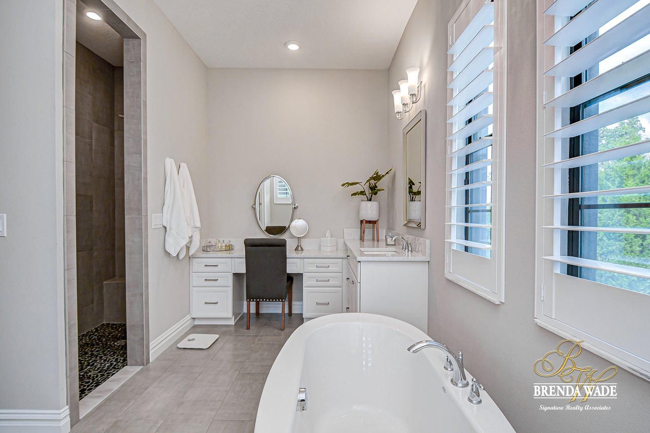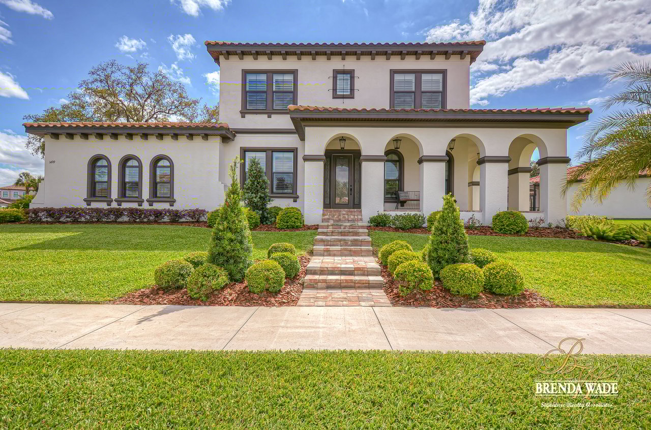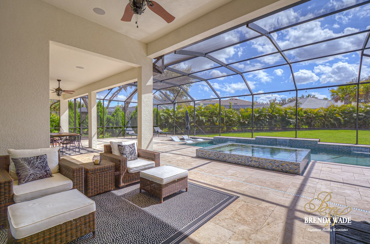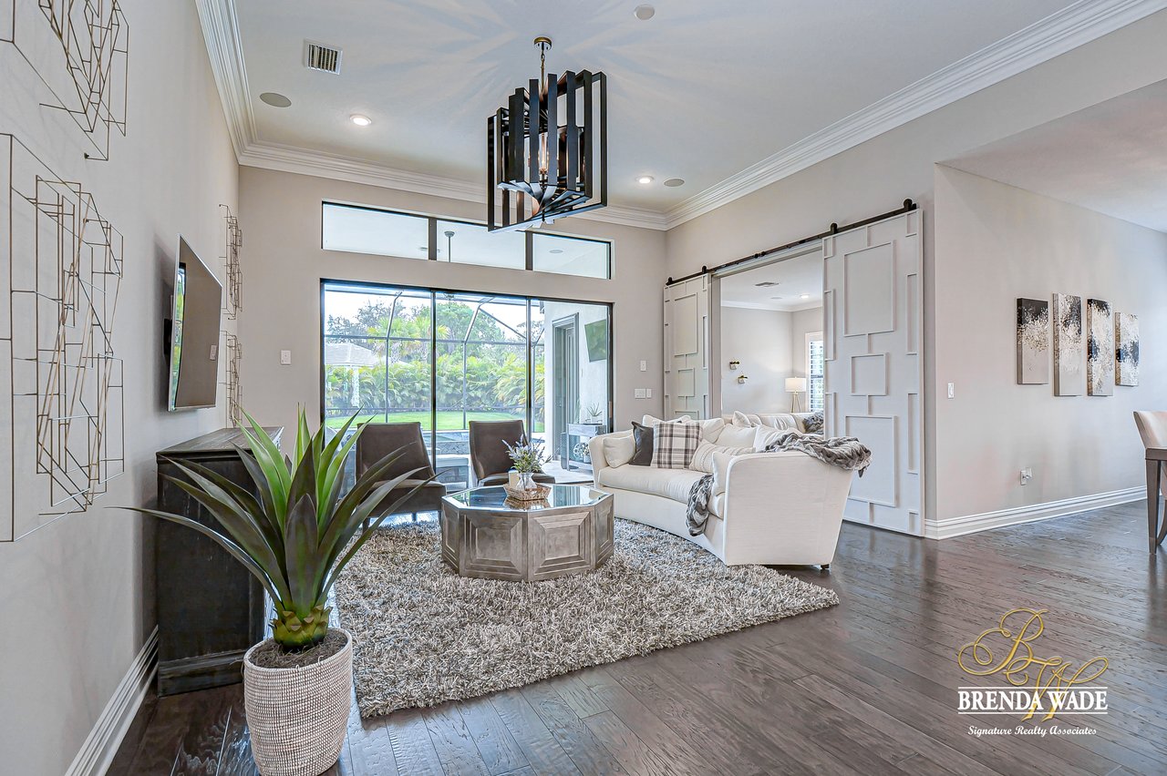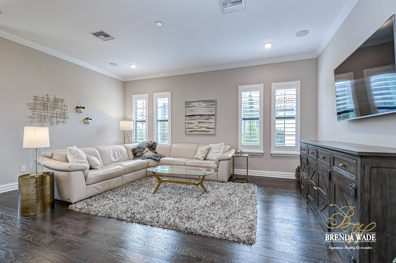 This House Is a Knockout! This ravishing custom Design will make all your home buying dreams come true! Welcome to the elegant Cardel Homes “Waldorf” plan, where luxury meets functionality! Everything in this home is top of The Line; from the crown molding down to the brilliant hardwood floors! Nestled on a premium lot the Mediterranean curb appeal will have you head over heels in love from the start! Take a tour and notice the dazzling white kitchen boasting Cambria countertops, vast center island and upgraded Wolf, built-in stainless appliances and sub-zero fridge! It doesn’t get any better then this! One of the most desirable features of this plan is all the Open living space! The details are stunning on this double sided fireplace with modern stone accents! You’ll find even more space to entertain behind the lovely custom barn doors that lead into the grand bonus room! Majestic master suite offers his and her walk-in closets with custom built-ins! Spa-like en-suite is every couples dream with dual sinks, a standalone soaking tub and oversized walk-in shower! The upgrades don’t stop there; plantation shutters, upgraded light fixtures, neutral paint colors, surround sound speakers, double crown, wide baseboards and so much more! Need a quiet space to work from home? Roomy home office with built-in bookcase will check all your boxes! Step outside and fall in love with the tropical oasis that awaits you! A custom design that takes the cake! This oversized, screened lanai will be the backdrop for many sweet memories to be made! The glistening pool and infinity edge spa overlook the privacy of a lush, beautifully landscaped yard! Splash your way into summer in this dream Home!