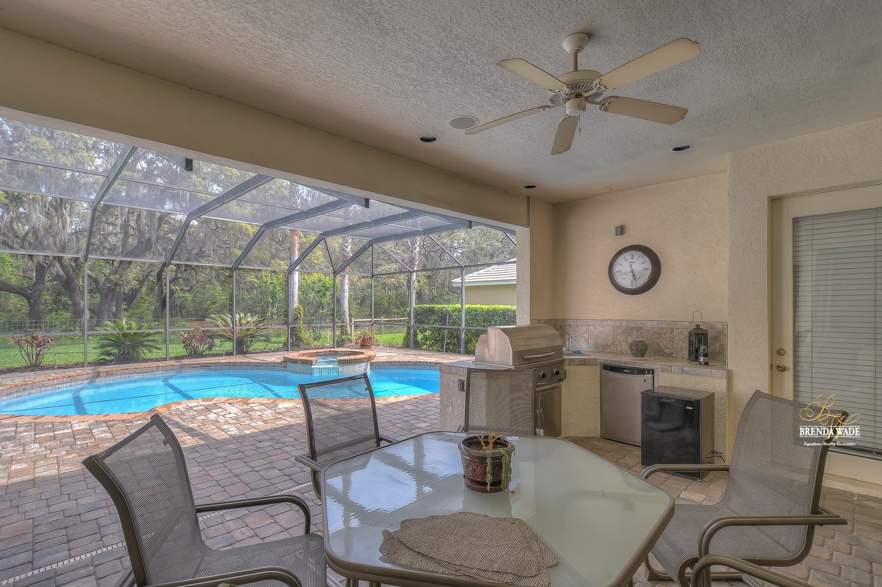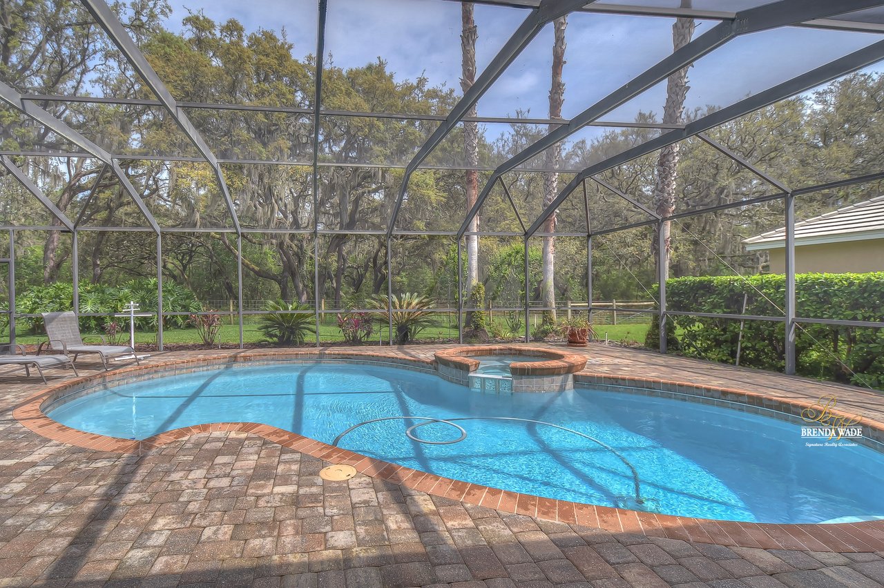 Located in The Oaks enclave of the highly desirable gated Eagle Ridge village, you will find this wonderful Hannah Bartoletta “Monterey” home! This intimate community with tree-lined streets and executive homes is the perfect spot for you to lay roots! Zoned for coveted Bevis Elementary and just a short, 3-minute bike ride to the school gates, there will be no car line for you! Arrive and appreciate the curb appeal this home has to offer with tile roof, brick accents, meticulous landscaping, and pavered walkway and front porch! Sitting on a deep conservation lot towards the end of a cul-de-sac street, this home offers complete privacy and limited traffic! The interior will not disappoint! Through the double leaded glass front doors, you arrive in the foyer that opens to the separate formal rooms! The dining room with large window is the perfect spot for entertaining and the living room features gas fireplace and sliders to the lanai! The spacious informal living area boasts a kitchen with handsome 42” maple cabinets topped with crown, granite counters, stainless appliances, and breakfast nook that overlooks the tranquil lanai through an oversized seamless window! The family room with a wall of built-ins is the perfect spot for your décor pieces and the triple slider to the lanai will make this the perfect home for those who enjoy indoor/outdoor living! The primary suite will be your sanctuary with vaulted ceiling, 2 walk-in closets, slider to the lanai, and en-suite bath that was remodeled in 2021 with new tile, cabinets, and quartz counters! The remarkable home even offers an office that was also recently remodeled with new cabinets and bamboo floors! The large bonus room with oversized window and sliders to the lanai makes the most of the natural light! The secondary bedrooms are located on one side of the house with two sharing a bath and the other having use of the pool bath! You will appreciate the updates and upgrades the current owners have invested in the house with plantation shutters and neutral paint choices that would suit most décor choices! You will love the private and screened lanai with pavers, outdoor kitchen, and sparkling heated pool and spa, the perfect place to spend with family and friends during the long Florida summers! This wonderful home is zoned for Randall middle and Newsome high! Come live your dream life in this dream home!
