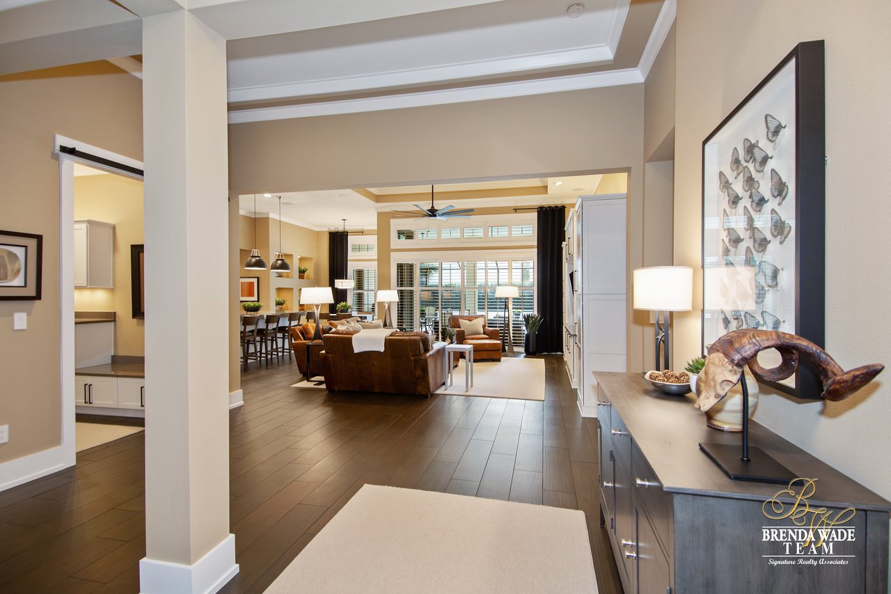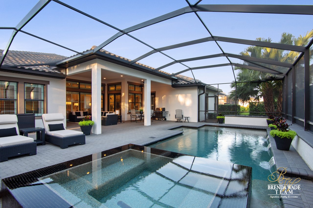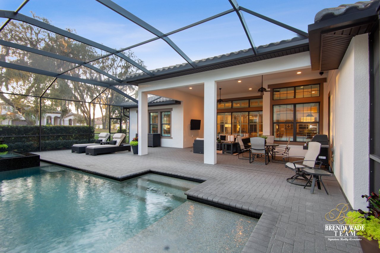 Owners have $900,000 in this like-new expanded Cardel-built Wilshire home located in desirable gated FishHawk Preserve. This one level home has tons of upgrades - an itemized list is available at showing. A showing is necessary to appreciate all of the numerous quality upgrades! Notice the stunning landscaping, Tuscan stack stone garage and accents, large conservation corner lot and oversized 4-car garage which all add to the curb appeal! Entering the home, you will immediately fall in love with the wide-plank wood-look porcelain tile flooring, Hunter Douglas plantation shutters, volume 10’ and 12’ ceilings and 8” baseboards, solid 8’ wood doors and crown molding throughout! Family room features built-in entertainment center and surround sound while also open to the kitchen. The magnificent kitchen has Cambria quartz countertops, huge island and tons of drawer space, Jenn-Air high-end stainless appliances including a built-in refrigerator, 42” cabinetry with uppers and a large eat-in space for more casual meals! Master retreat boasts gorgeous details such as coffered ceiling, his and hers closets and master bath with dual vanities and oversized walk-in shower! Outside on the extended paver lanai you will love the extravagant pool with infinity edge spa and Crystal Stones pool finish! 3 more spacious bedrooms on the opposite side of the home, one with en-suite; the 4th bedroom or office could easily be a bonus room. Zoned for some of the greatest schools in Hillsborough County.