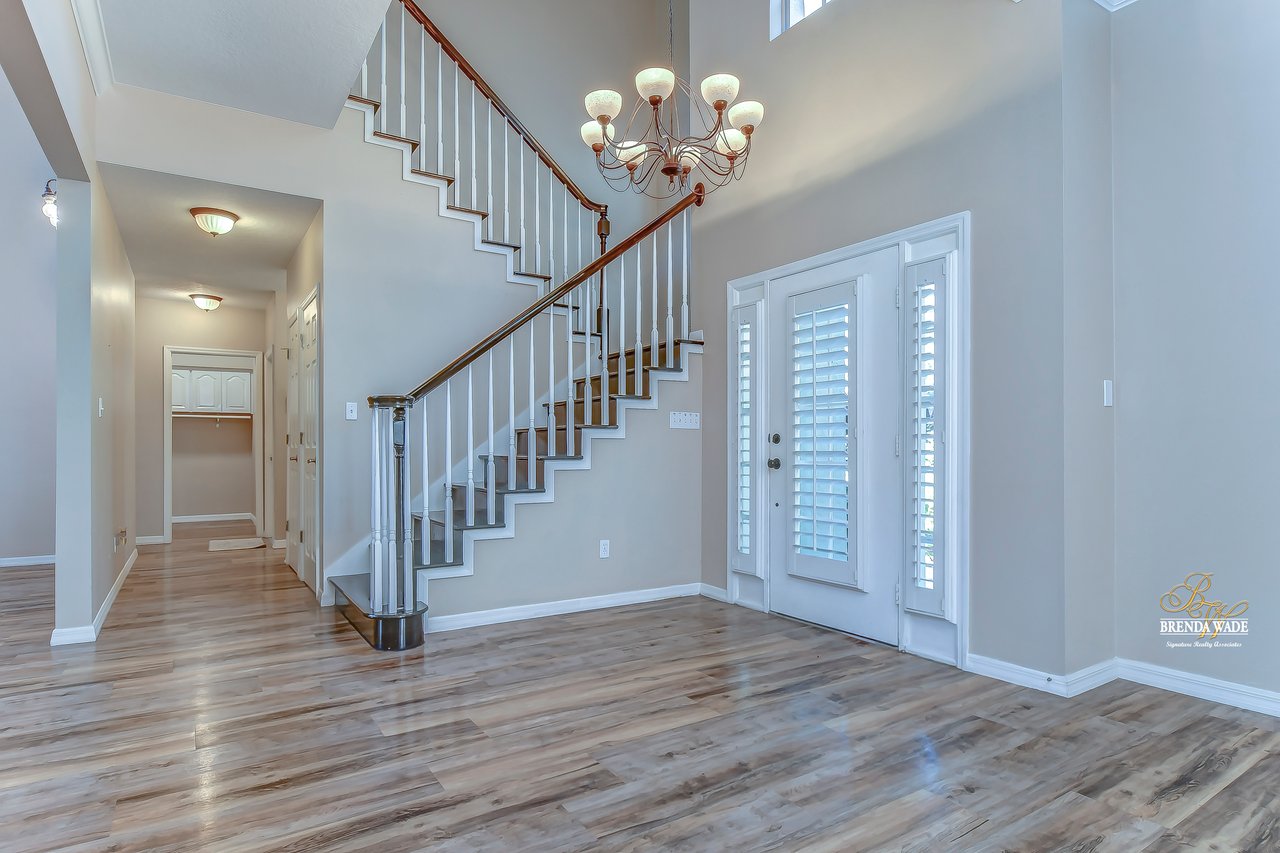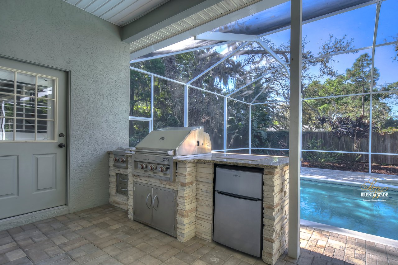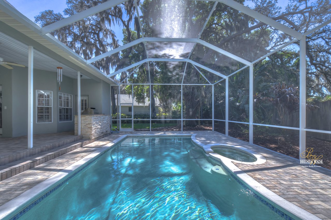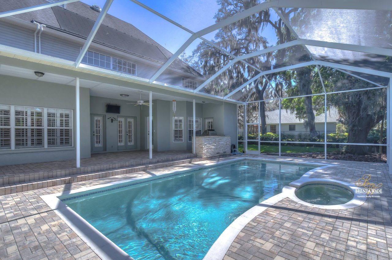 Welcome to this exquisite, custom-built home at the end of an exclusive cul-de-sac! Sitting on a .34-acre lot, this French Country design will take your breath away from the moment you pull up! A circular driveway paired with the lush landscaping greets you, leaving you eager to tour the inside! As soon as you step inside you will adore the neutral paint, plantation shutters, soaring 20-ft ceiling, and newer (2018) luxury vinyl flooring! You will have peace of mind knowing BOTH A/C’s ARE NEW as of 2021! You will never be in need of more storage in this home; the owners have installed additional storage closet, all bedrooms have walk-in closets, there is under stair storage, and there are linen closets throughout! At the front of the home is a formal dining room with crown molding and bay window, with so much space to spend your holiday meals with loved ones! The kitchen is A M A Z I N G with stainless appliances, granite counters, ample white cabinetry, island with vegetable sink, large walk-in pantry, and bright breakfast nook for quick meals! The family room opens from the kitchen with a wood-burning fireplace, and two sets of french doors leading you to the pool! The owners’ suite is quite the retreat with private lanai access, views of the pool, wood-burning fireplace, tray ceiling, and double door entrance into the spa-like attached bathroom! Separate vanities with new sinks in 2019, garden tub, walk-in shower, and HUGE walk-in closet with organizers! There is a sizable home office located on the first floor with crown molding, so working from home will be a breeze! Head upstairs where you will find a junior owners suite with its own walk-in closet and en-suite! The remaining two bedrooms share a jack and jill bathroom with separate vanities and each has its own walk-in closet! Two of the walk-in closets have Elfa closet organizers so you can customize just how you need it! The pool deck and screen enclosure were replaced in 2021 so you can spend all summer in your sparkling solar heated pool and spa! You can grill outdoors with the family with your outdoor kitchen featuring a grill, fridge, and cooktop! There is an outdoor pool bath so you don’t need to track the outside mess indoors! This beautiful home has been so well cared for and it shows for itself! Come take a look, you will be happy you did!