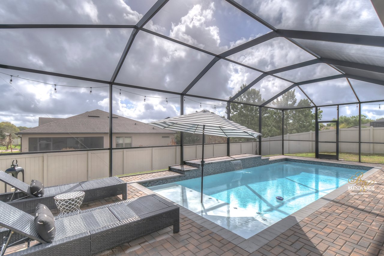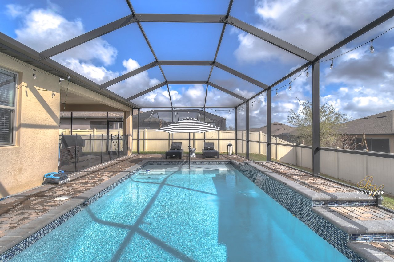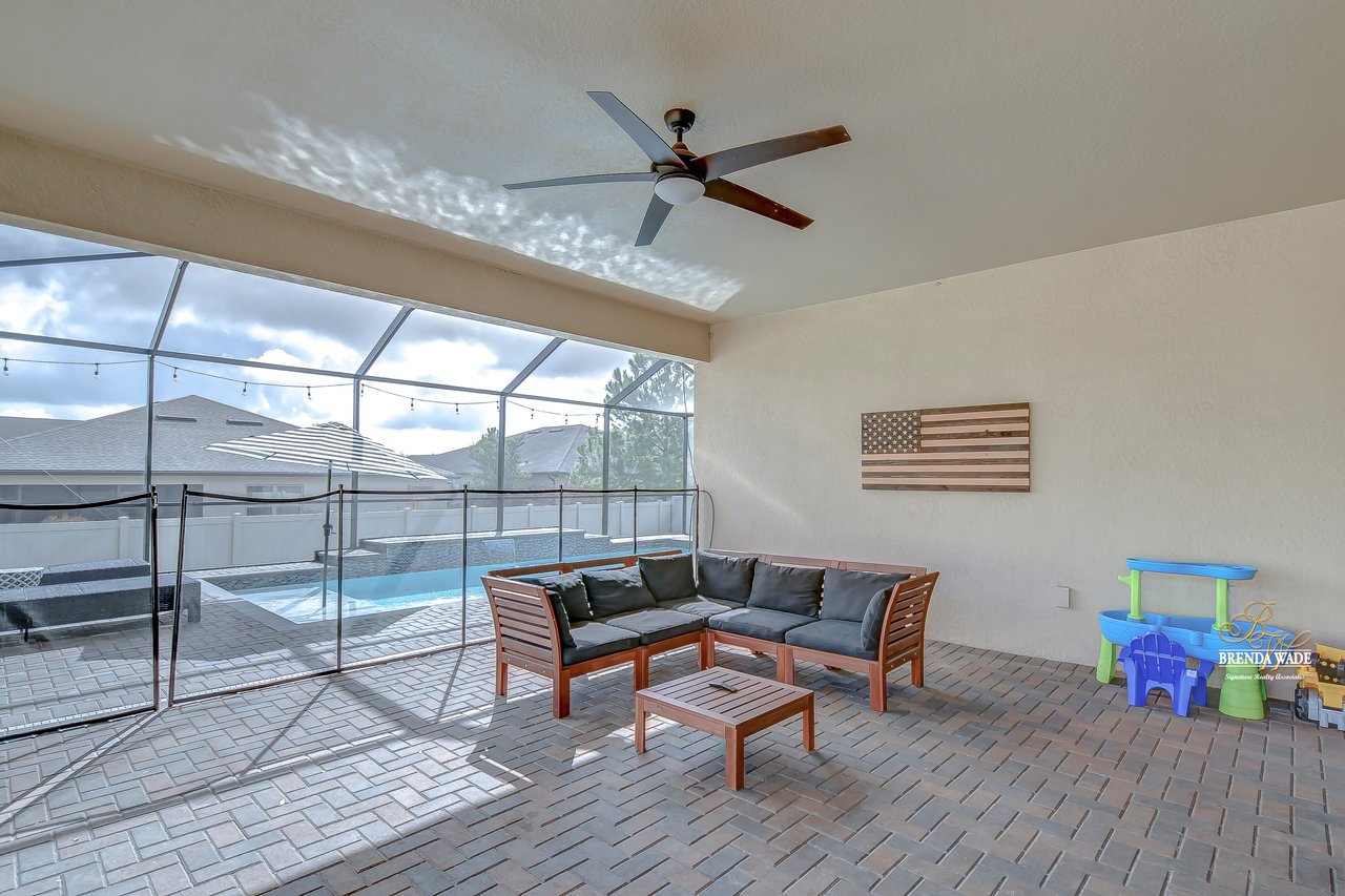 This Pulte "Palm" POOL home is as good as NEW in the spectacular Highlands community! Built in 2016, the owners have taken such GREAT care of this home that it might as well be a new build! As you arrive you will adore the exterior with meticulous landscaping, stone accents, 3-car garage, and glass front door welcoming you inside! You will be SO pleased once you step through that door and take in the high ceilings, tile flooring, and neutral paint all ready to pair perfectly with your decor! There is no carpet throughout the entire home, so cleaning will be a breeze in this house! Behind a set of double doors is a nicely sized home office where you can get tasks done in peace! Continue into the home and notice the formal dining room that is just around the corner from the A M A Z I N G kitchen! This kitchen will have you writing the offer and packing your bags! Complete with granite countertops, stainless appliances, oversized center island with seating, white cabinets with crown, and backsplash! There is even a breakfast nook with a view of the POOL for your everyday meals! The open floor plan allows the kitchen to flow into the family room with wood accent wall effortlessly, so if you love to entertain... this is the ONE! The owner's suite is secluded at the back of the home with dual closets, one being a walk-in, and an en-suite with double sinks, granite counters, and large walk-in shower! The second bedroom is spacious, has a beautiful accent wall, and an attached en-suite! Two additional bedrooms share a third bathroom nearby! The glistening screened-in pool has a waterfall fountain and sun shelf to spend time and enjoy the Florida weather! There is a large covered, brick paver area to entertain! The fenced yard gives owners peace of mind for kids and pets to play! The Highlands is in a GREAT location, central to all of your favorite dining and shopping experiences and quick access to I-75! This home is PERFECT! Come see it today before you are too late!