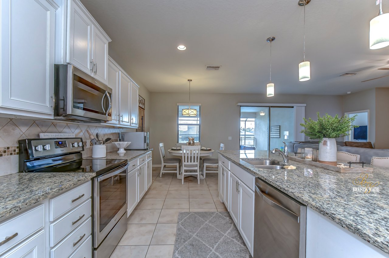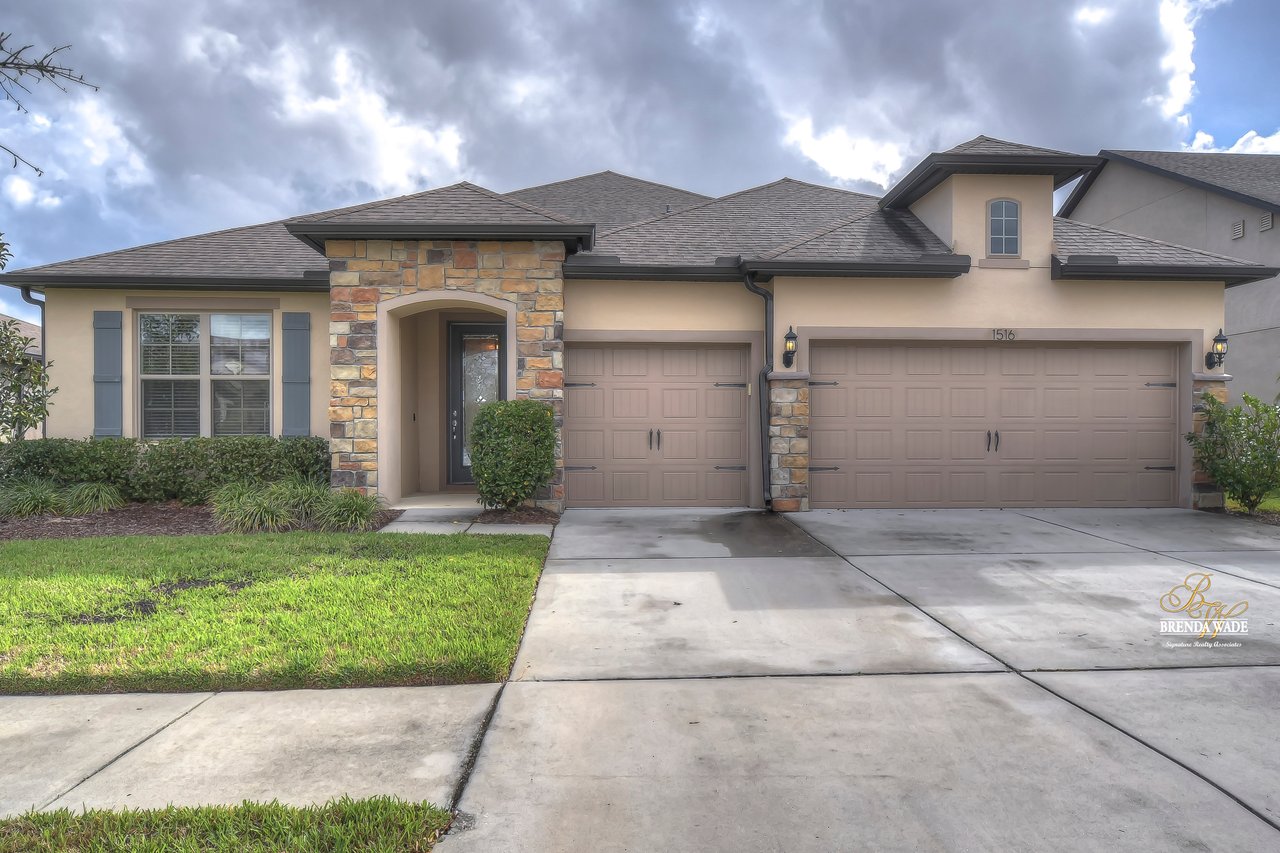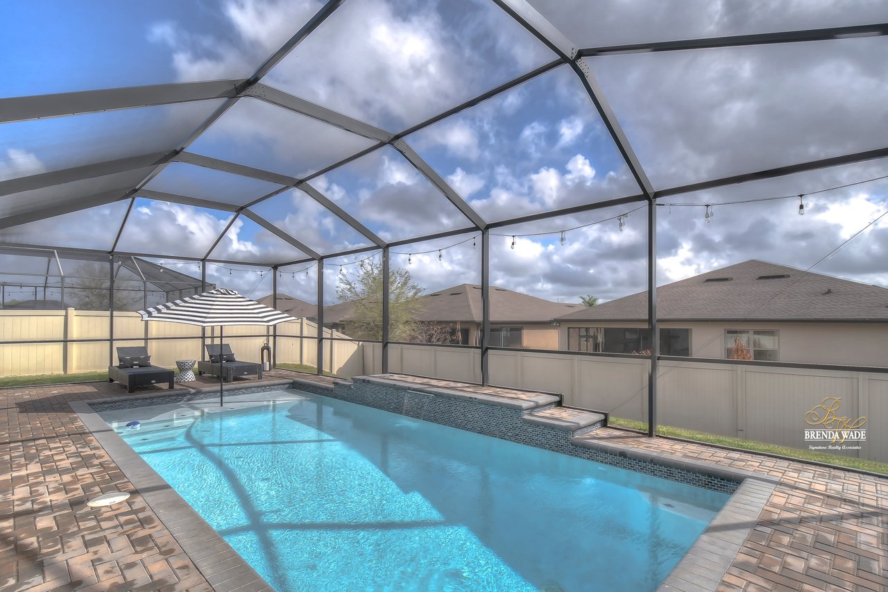 This Pulte "Palm" POOL home is as good as NEW in the spectacular Highlands community! Built in 2016, the owners have taken such GREAT care of this home that it might as well be a new build! As you arrive you will adore the exterior with meticulous landscaping, stone accents, 3-car garage, and glass front door welcoming you inside! You will be SO pleased once you step through that door and take in the high ceilings, tile flooring, and neutral paint all ready to pair perfectly with your decor! There is no carpet throughout the entire home, so cleaning will be a breeze in this house! Behind a set of double doors is a nicely sized home office where you can get tasks done in peace! Continue into the home and notice the formal dining room that is just around the corner from the A M A Z I N G kitchen! This kitchen will have you writing the offer and packing your bags! Complete with granite countertops, stainless appliances, oversized center island with seating, white cabinets with crown, and backsplash! There is even a breakfast nook with a view of the POOL for your everyday meals! The open floor plan allows the kitchen to flow into the family room with wood accent wall effortlessly, so if you love to entertain... this is the ONE! The owner's suite is secluded at the back of the home with dual closets, one being a walk-in, and an en-suite with double sinks, granite counters, and large walk-in shower! The second bedroom is spacious, has a beautiful accent wall, and an attached en-suite! Two additional bedrooms share a third bathroom nearby! The glistening screened-in pool has a waterfall fountain and sun shelf to spend time and enjoy the Florida weather! There is a large covered, brick paver area to entertain! The fenced yard gives owners peace of mind for kids and pets to play! The Highlands is in a GREAT location, central to all of your favorite dining and shopping experiences and quick access to I-75! This home is PERFECT! Come see it today before you are too late!