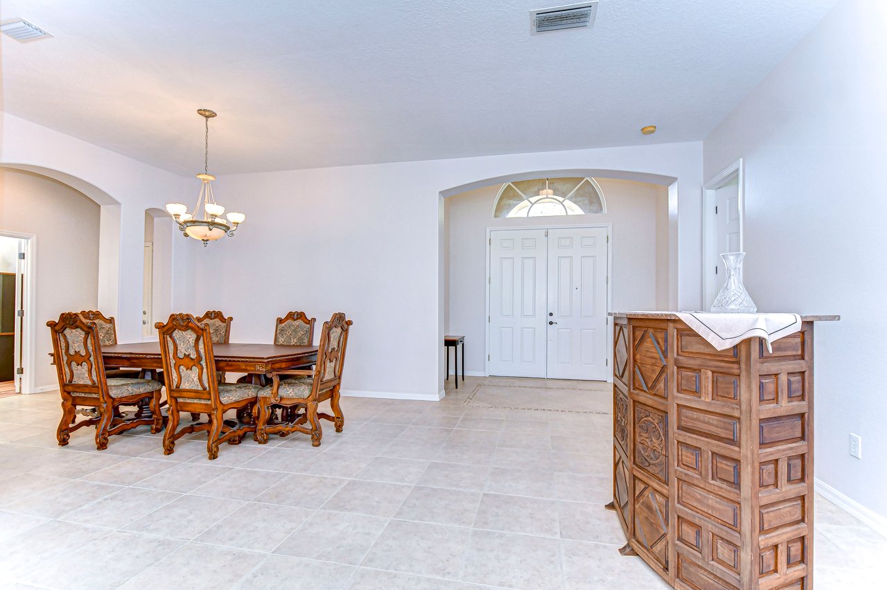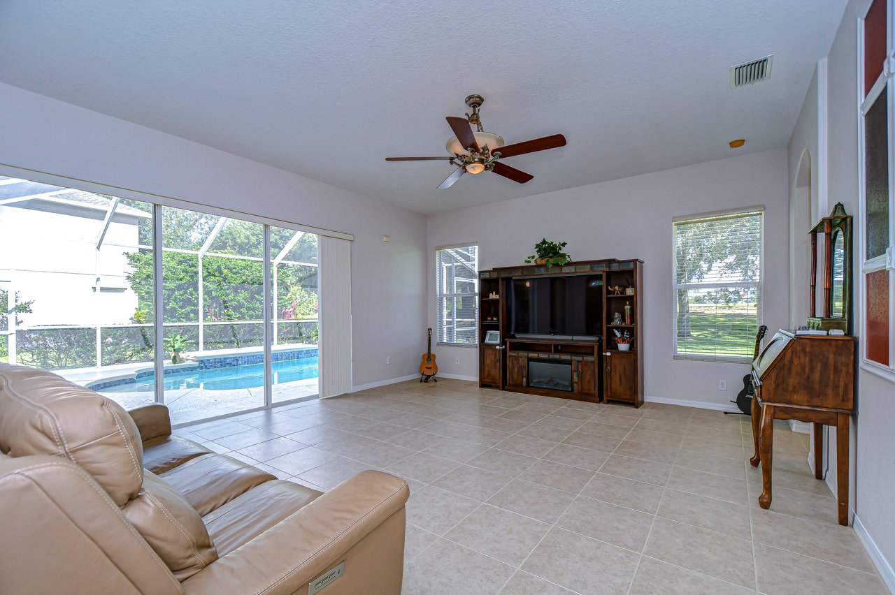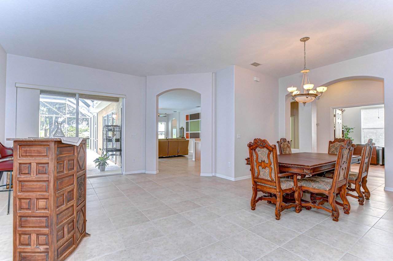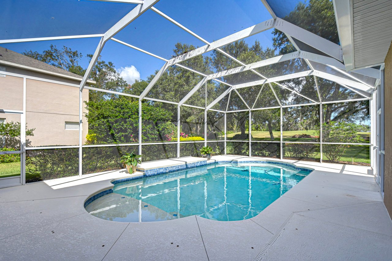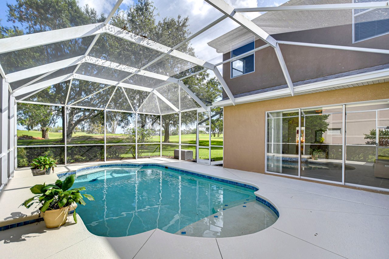 Step into a life of comfort and style with this remarkable Golf Course Pool Home in the exclusive Diamond Hill community. This expansive 5-bedroom, 3-bath residence spans 3,667 sq. ft., thoughtfully crafted to offer both elegance and ease in every corner. From the moment you enter, you'll be drawn to the formal living and dining areas, where breathtaking views of the 10th green greet you, and the beauty of sunrise floods your private poolside retreat with light. Designed with functionality and flow in mind, this home's open floor plan includes an office, a versatile bonus room, a luxurious downstairs primary suite, an inviting guest suite on the first floor, and lots of storage space throughout both levels. Recent updates provide extra peace of mind--a brand-new roof (2023), two well-maintained A/C units under eight years old, new pool screen in 2024, and fresh interior paint that makes the home feel bright and renewed. The gourmet kitchen, truly the heart of this home, boasts 42-inch cabinetry, stainless appliances, a built-in oven and cooktop, Corian countertops, an elegant backsplash, and an oversized walk-in pantry for all your essentials. Gather for casual meals in the cozy breakfast nook, or relax with loved ones in the spacious family room with soaring ceilings and triple glass sliders that let in an abundance of natural light. Durable tile flooring offers style and practicality in high-traffic areas. The primary suite conveniently located on the main level is a private haven, complete with a tray ceiling, direct pool access through pocket sliders, and a luxurious en-suite bath that includes dual sinks, his-and-her walk-in closets, and a garden tub with jets for ultimate relaxation. Upstairs, an expansive bonus room awaits, perfect for games, movies, or quiet time, along with three additional bedrooms, a shared bath, and a large utility storage room. An extra bedroom on the main floor is an ideal guest or in-law suite with its own full bath. Situated on a .31-acre premium lot, this home offers privacy, beauty, and access to Diamond Hill's top-tier amenities, including a recreation center, community pool, and playground. Conveniently located near shopping, dining, and entertainment, this home is an inviting sanctuary for enjoying the best of Florida living. Schedule your private showing today and discover the lifestyle you've been dreaming of!