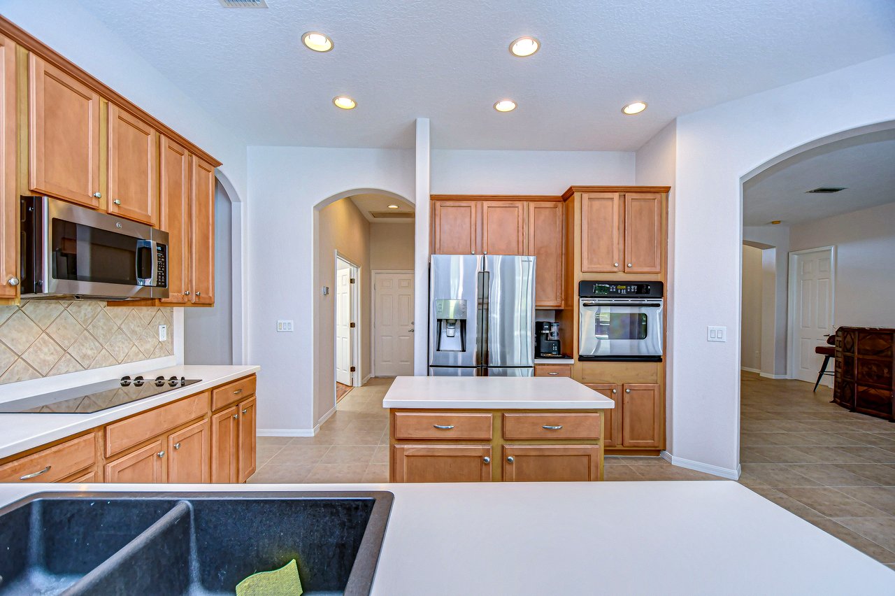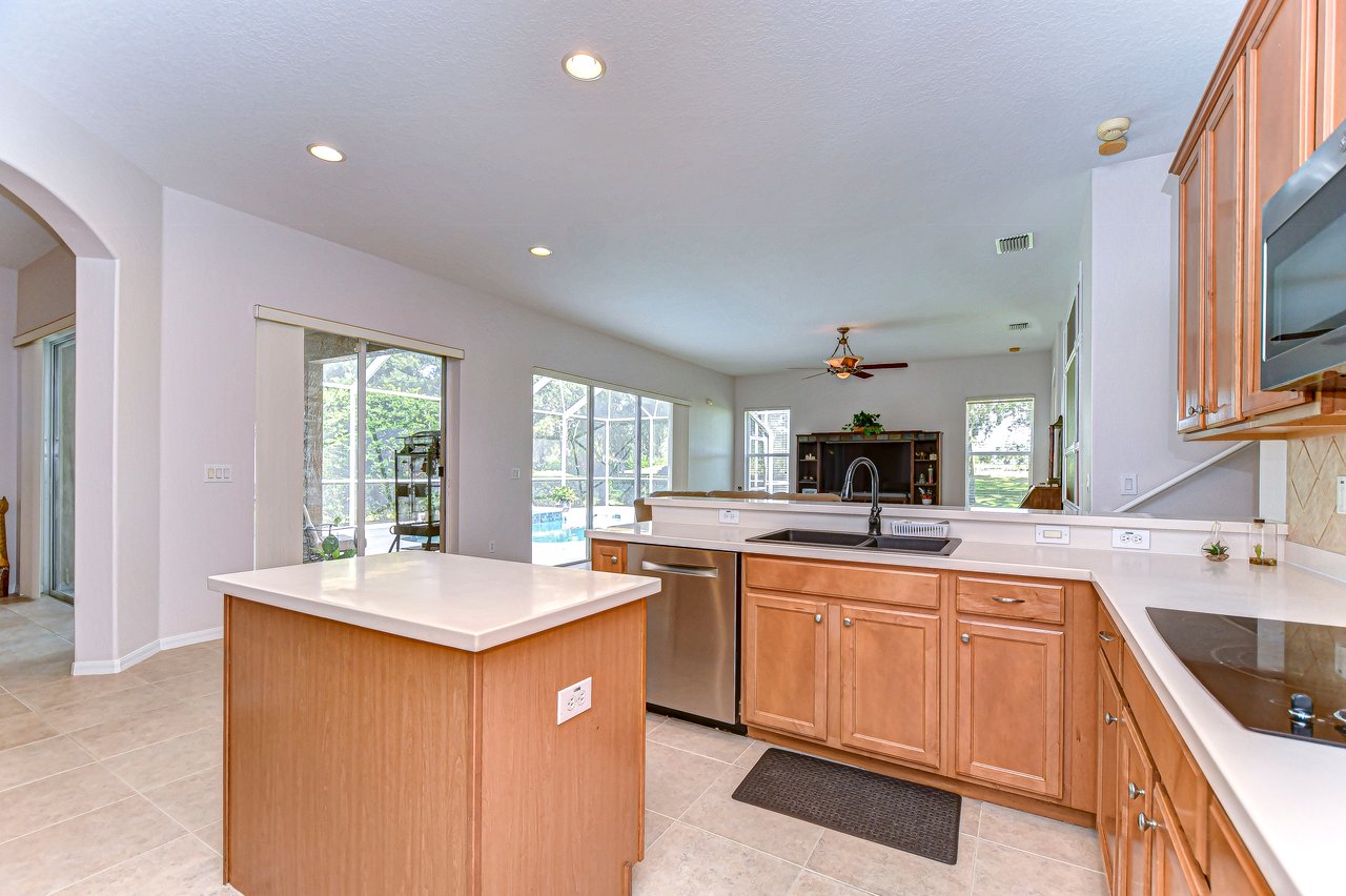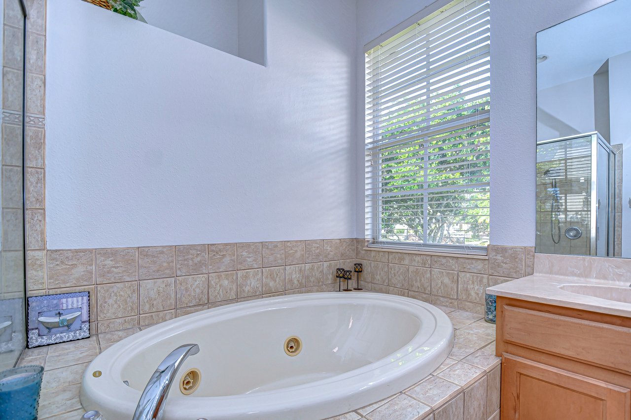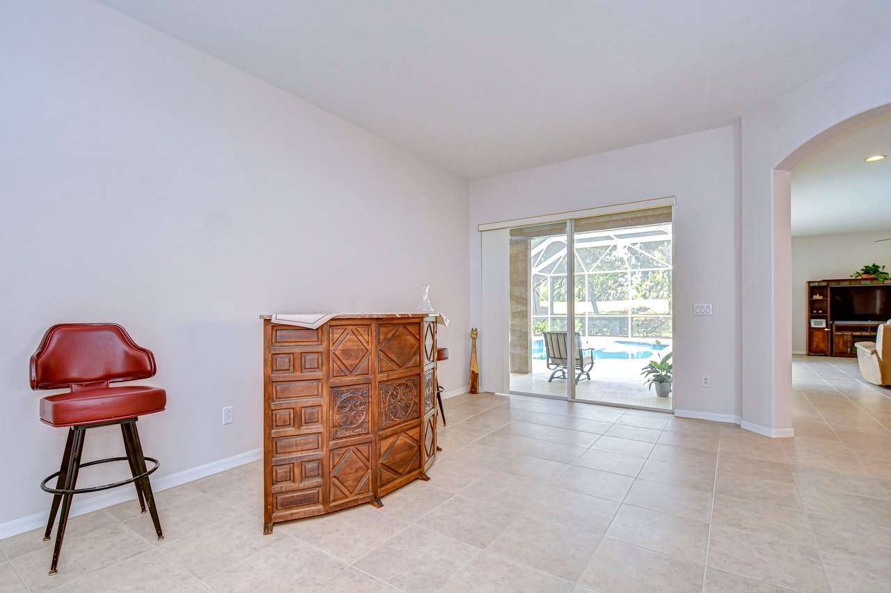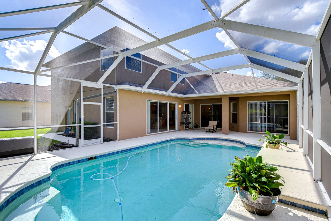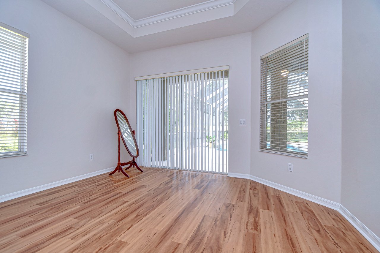 Step into a life of comfort and style with this remarkable Golf Course Pool Home in the exclusive Diamond Hill community. This expansive 5-bedroom, 3-bath residence spans 3,667 sq. ft., thoughtfully crafted to offer both elegance and ease in every corner. From the moment you enter, you'll be drawn to the formal living and dining areas, where breathtaking views of the 10th green greet you, and the beauty of sunrise floods your private poolside retreat with light. Designed with functionality and flow in mind, this home's open floor plan includes an office, a versatile bonus room, a luxurious downstairs primary suite, an inviting guest suite on the first floor, and lots of storage space throughout both levels. Recent updates provide extra peace of mind--a brand-new roof (2023), two well-maintained A/C units under eight years old, new pool screen in 2024, and fresh interior paint that makes the home feel bright and renewed. The gourmet kitchen, truly the heart of this home, boasts 42-inch cabinetry, stainless appliances, a built-in oven and cooktop, Corian countertops, an elegant backsplash, and an oversized walk-in pantry for all your essentials. Gather for casual meals in the cozy breakfast nook, or relax with loved ones in the spacious family room with soaring ceilings and triple glass sliders that let in an abundance of natural light. Durable tile flooring offers style and practicality in high-traffic areas. The primary suite conveniently located on the main level is a private haven, complete with a tray ceiling, direct pool access through pocket sliders, and a luxurious en-suite bath that includes dual sinks, his-and-her walk-in closets, and a garden tub with jets for ultimate relaxation. Upstairs, an expansive bonus room awaits, perfect for games, movies, or quiet time, along with three additional bedrooms, a shared bath, and a large utility storage room. An extra bedroom on the main floor is an ideal guest or in-law suite with its own full bath. Situated on a .31-acre premium lot, this home offers privacy, beauty, and access to Diamond Hill's top-tier amenities, including a recreation center, community pool, and playground. Conveniently located near shopping, dining, and entertainment, this home is an inviting sanctuary for enjoying the best of Florida living. Schedule your private showing today and discover the lifestyle you've been dreaming of!