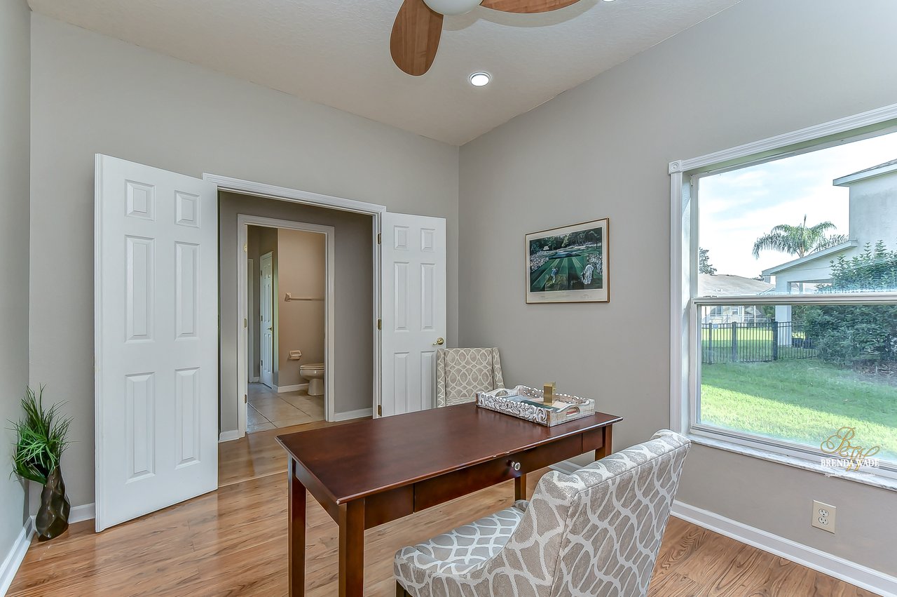 Spectacular Beazer “Lancaster” home in the coveted Paloma Glade neighborhood of FishHawk Ranch! Located on a cul-de-sac in this family-friendly community you will love living just steps away from the walking trails of FishHawk Ranch! Lush landscaping welcomes you to the charming front porch where you will adore spending your mornings sipping your coffee! The backyard is HUGE, allowing for room to build your DREAM pool and still space for the kids and pets to enjoy! Step through the double front doors and you will be swooning over the high ceilings, neutral paint, and wood-look laminate flooring! There is NO carpet throughout the entire home… talk about easy cleaning! The living and dining room combination surrounds the kitchen so entertaining will be a breeze! Speaking of kitchen… this one is a SHOWSTOPPER! 42-in rich wood cabinets with crown, sleek black appliances including a NEW oven, center island, breakfast bar seating, and beautiful backsplash all tie together to create a memory-making kitchen while you prepare meals as a family! A bright breakfast nook is just off the kitchen for everyday meals with sliders leading you to the back patio! There is a generously sized family room with stunning views of the backyard! A private home office is behind double doors so working from home will be a private oasis with all of the bedrooms residing upstairs! A convenient half bathroom is located on the first floor for guests! Head to the second floor and discover a spacious owner suite featuring bright natural light, dual walk-in closets, and en-suite complete with double sinks, soaking tub, and walk-in shower! Three additional sizable bedrooms share a second full bathroom and don’t forget to check out the bonus loft area! This room is so versatile, perfect to make a great playroom, keep the clutter of toys out of the living areas, or create a movie room for the family! Check out Paloma Glade at night this time of year as they are always the epitome of Holiday Spirit with their Christmas lights! Parents will have peace of mind knowing that their kids will all be going to “A” Top-Rated Schools! FishHawk Ranch offers all of the amenities you are looking for! Resort-style pools at the Aquatic Center, miles of trails, Skate Park, Fitness Center, Park Square, and more! Don’t delay… this could be yours!