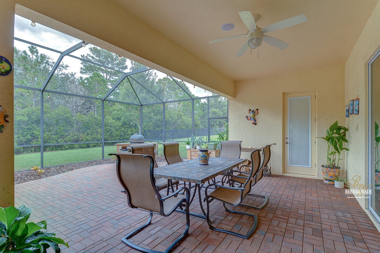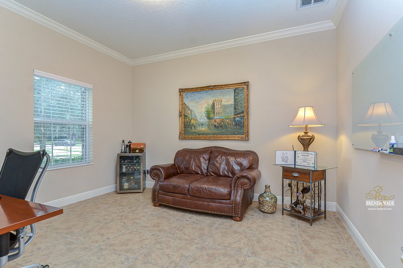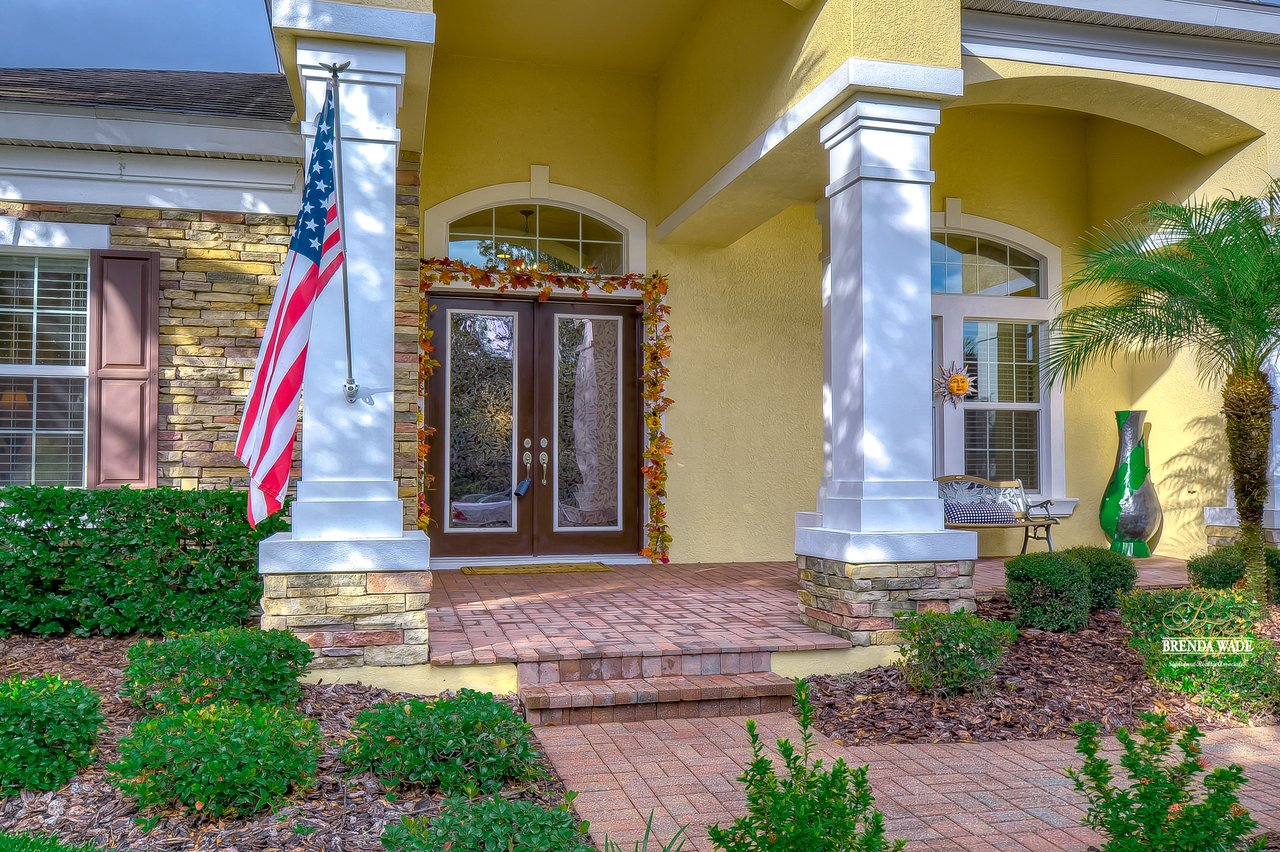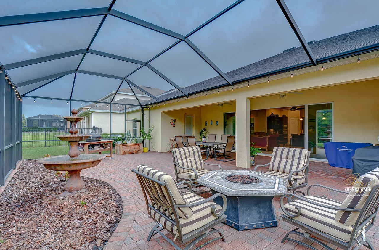 You don’t want to miss out on this one! It is everything on your checklist and MORE! Starting with the exterior, this beautiful home sits on an oversized corner lot, so you only have neighbors on one side! To make it even better, there are lush trees in your backyard so you don’t have any backyard neighbors either! Park on your pavered driveway and enjoy the stacked stone accents as well as a charming front porch to enjoy your morning coffee! Head through the double glass front doors and discover the enormous open concept floor plan that will transcend the way you entertain and live your day-to-day living! There is a private home office behind a set of french doors so working from home will be a peaceful environment allowing you to be excited to get work done every day! The living areas will captivate you with the soaring ceilings, neutral paint, and large tile flooring! The dining room offers bright windows, crown molding, and an arch entryway to the kitchen so holiday meals will surely be hosted at your house moving forward! The kitchen is STUNNING! This space will surely become a gathering place with the HUGE center island, granite counters, 42-in cabinets with crown, under cabinet lighting with a flawless backsplash, stainless appliances including statement range hood, and walk-in pantry! There is a spacious dinette area for easy meals and opens to the REMARKABLE great room! There is a wall of sliders that lead to the screened lanai and open perfectly to entertain inside and out! The primary suite has a double door entrance and features dual walk-in closets as well as an en-suite with double sinks, makeup vanity, walk-in shower, and separate soaking tub! Two additional bedrooms share a second full bathroom! The fourth bedroom is ideal for guests or in-laws being secluded at the back of the home with a walk-in closet and its own full bathroom nearby! This community is loaded with resort-style amenities and zoned for some of the best schools in the county! Does it get any better than this?!