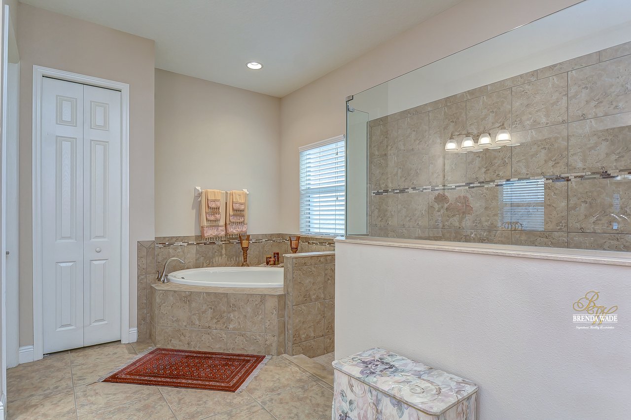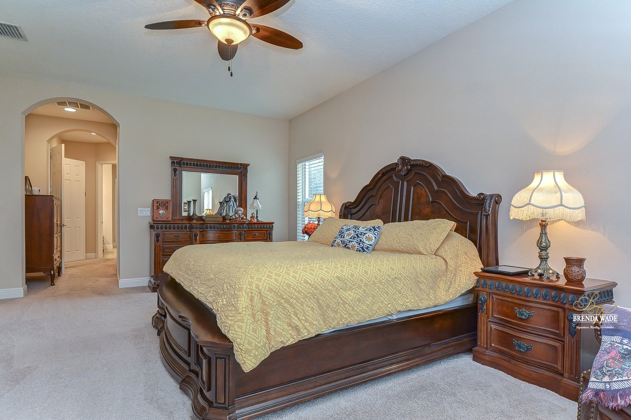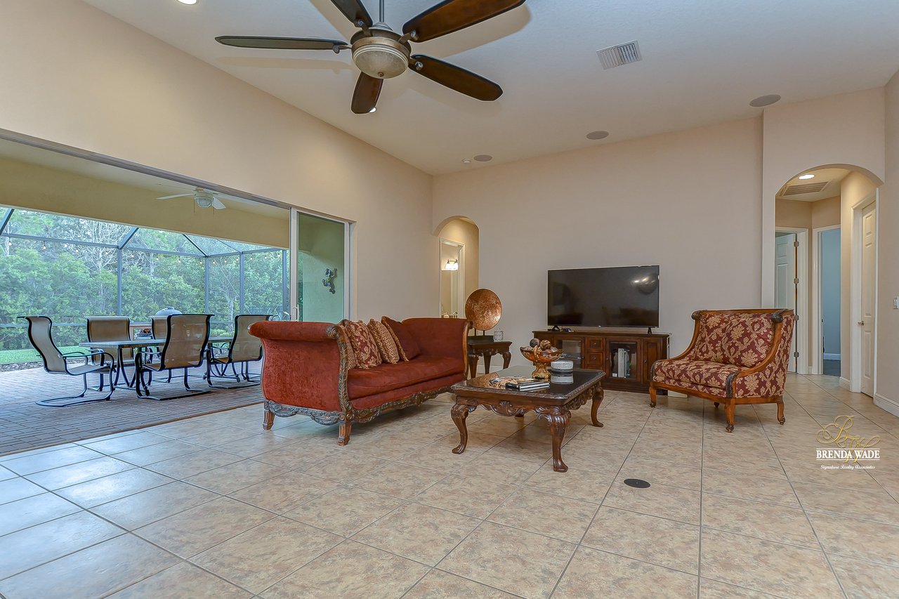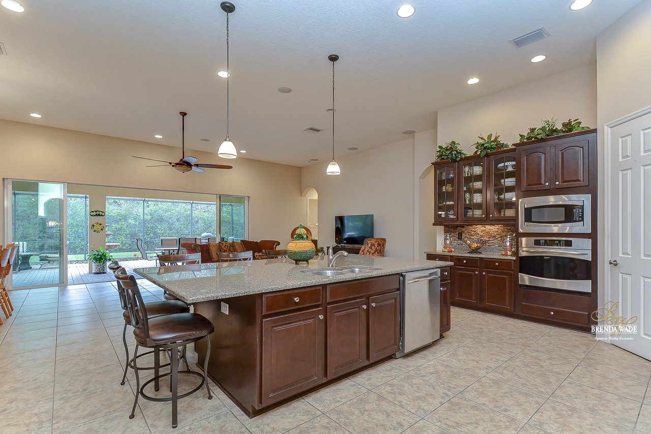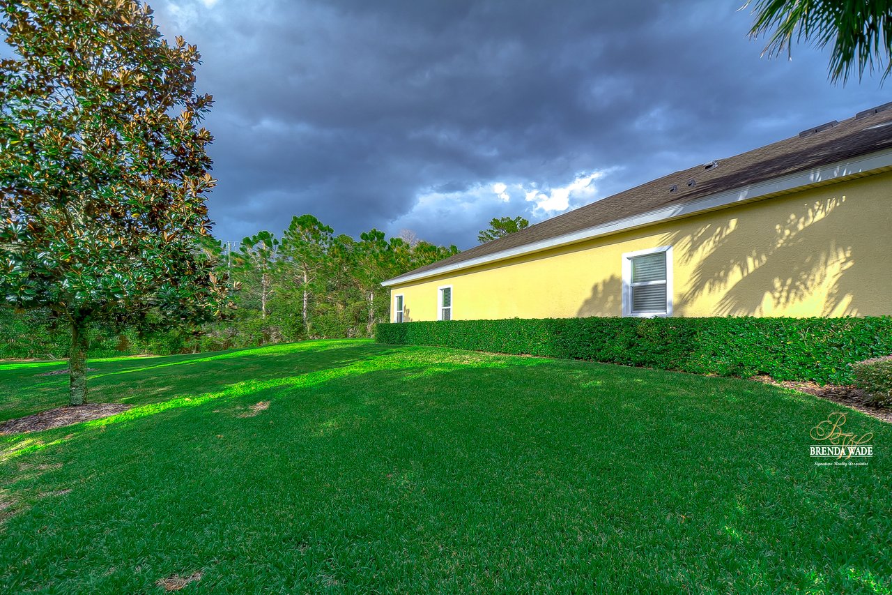 You don’t want to miss out on this one! It is everything on your checklist and MORE! Starting with the exterior, this beautiful home sits on an oversized corner lot, so you only have neighbors on one side! To make it even better, there are lush trees in your backyard so you don’t have any backyard neighbors either! Park on your pavered driveway and enjoy the stacked stone accents as well as a charming front porch to enjoy your morning coffee! Head through the double glass front doors and discover the enormous open concept floor plan that will transcend the way you entertain and live your day-to-day living! There is a private home office behind a set of french doors so working from home will be a peaceful environment allowing you to be excited to get work done every day! The living areas will captivate you with the soaring ceilings, neutral paint, and large tile flooring! The dining room offers bright windows, crown molding, and an arch entryway to the kitchen so holiday meals will surely be hosted at your house moving forward! The kitchen is STUNNING! This space will surely become a gathering place with the HUGE center island, granite counters, 42-in cabinets with crown, under cabinet lighting with a flawless backsplash, stainless appliances including statement range hood, and walk-in pantry! There is a spacious dinette area for easy meals and opens to the REMARKABLE great room! There is a wall of sliders that lead to the screened lanai and open perfectly to entertain inside and out! The primary suite has a double door entrance and features dual walk-in closets as well as an en-suite with double sinks, makeup vanity, walk-in shower, and separate soaking tub! Two additional bedrooms share a second full bathroom! The fourth bedroom is ideal for guests or in-laws being secluded at the back of the home with a walk-in closet and its own full bathroom nearby! This community is loaded with resort-style amenities and zoned for some of the best schools in the county! Does it get any better than this?!