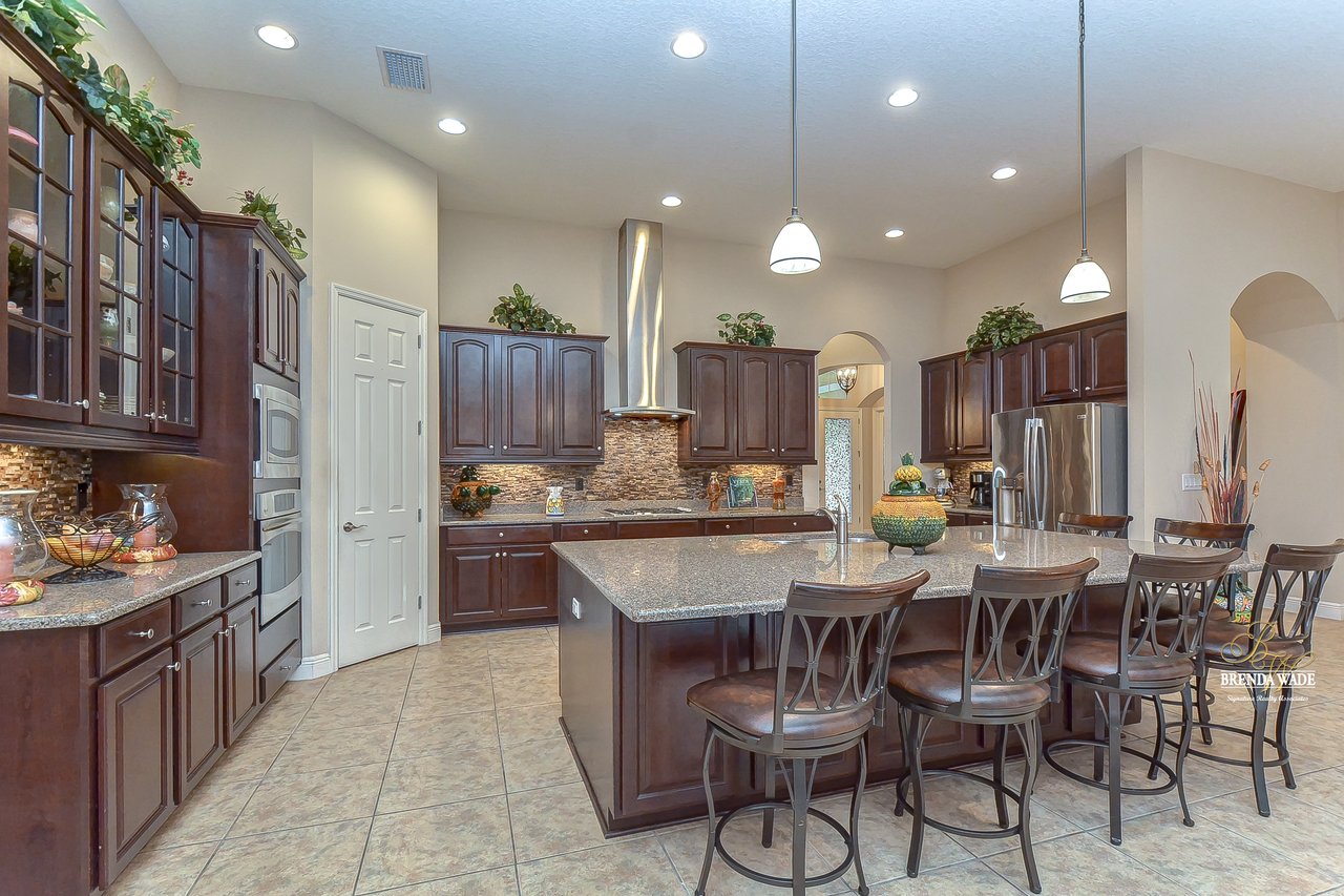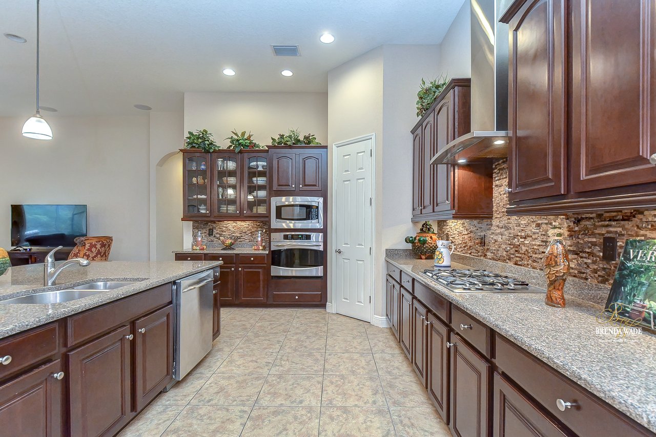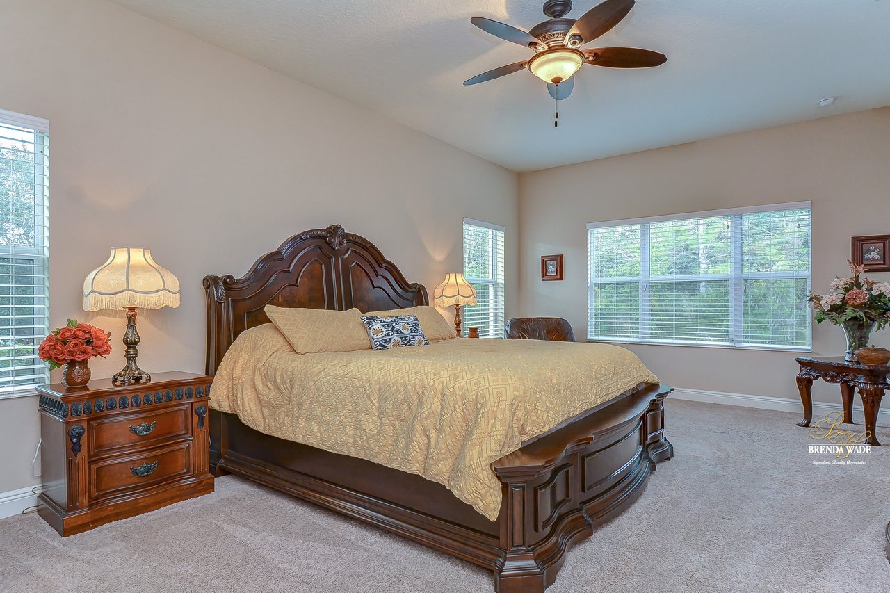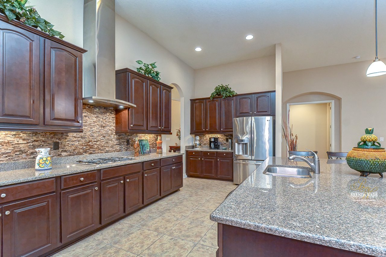 You don’t want to miss out on this one! It is everything on your checklist and MORE! Starting with the exterior, this beautiful home sits on an oversized corner lot, so you only have neighbors on one side! To make it even better, there are lush trees in your backyard so you don’t have any backyard neighbors either! Park on your pavered driveway and enjoy the stacked stone accents as well as a charming front porch to enjoy your morning coffee! Head through the double glass front doors and discover the enormous open concept floor plan that will transcend the way you entertain and live your day-to-day living! There is a private home office behind a set of french doors so working from home will be a peaceful environment allowing you to be excited to get work done every day! The living areas will captivate you with the soaring ceilings, neutral paint, and large tile flooring! The dining room offers bright windows, crown molding, and an arch entryway to the kitchen so holiday meals will surely be hosted at your house moving forward! The kitchen is STUNNING! This space will surely become a gathering place with the HUGE center island, granite counters, 42-in cabinets with crown, under cabinet lighting with a flawless backsplash, stainless appliances including statement range hood, and walk-in pantry! There is a spacious dinette area for easy meals and opens to the REMARKABLE great room! There is a wall of sliders that lead to the screened lanai and open perfectly to entertain inside and out! The primary suite has a double door entrance and features dual walk-in closets as well as an en-suite with double sinks, makeup vanity, walk-in shower, and separate soaking tub! Two additional bedrooms share a second full bathroom! The fourth bedroom is ideal for guests or in-laws being secluded at the back of the home with a walk-in closet and its own full bathroom nearby! This community is loaded with resort-style amenities and zoned for some of the best schools in the county! Does it get any better than this?!