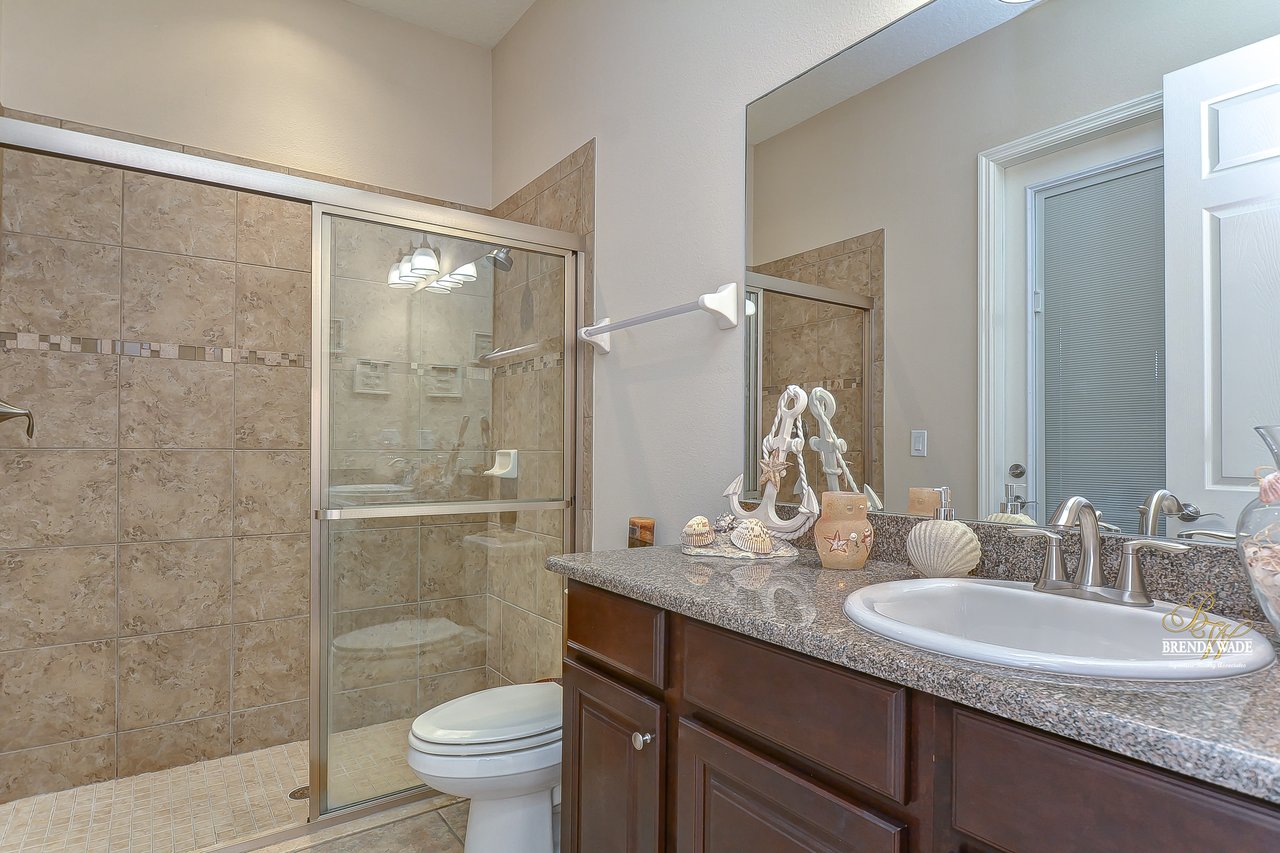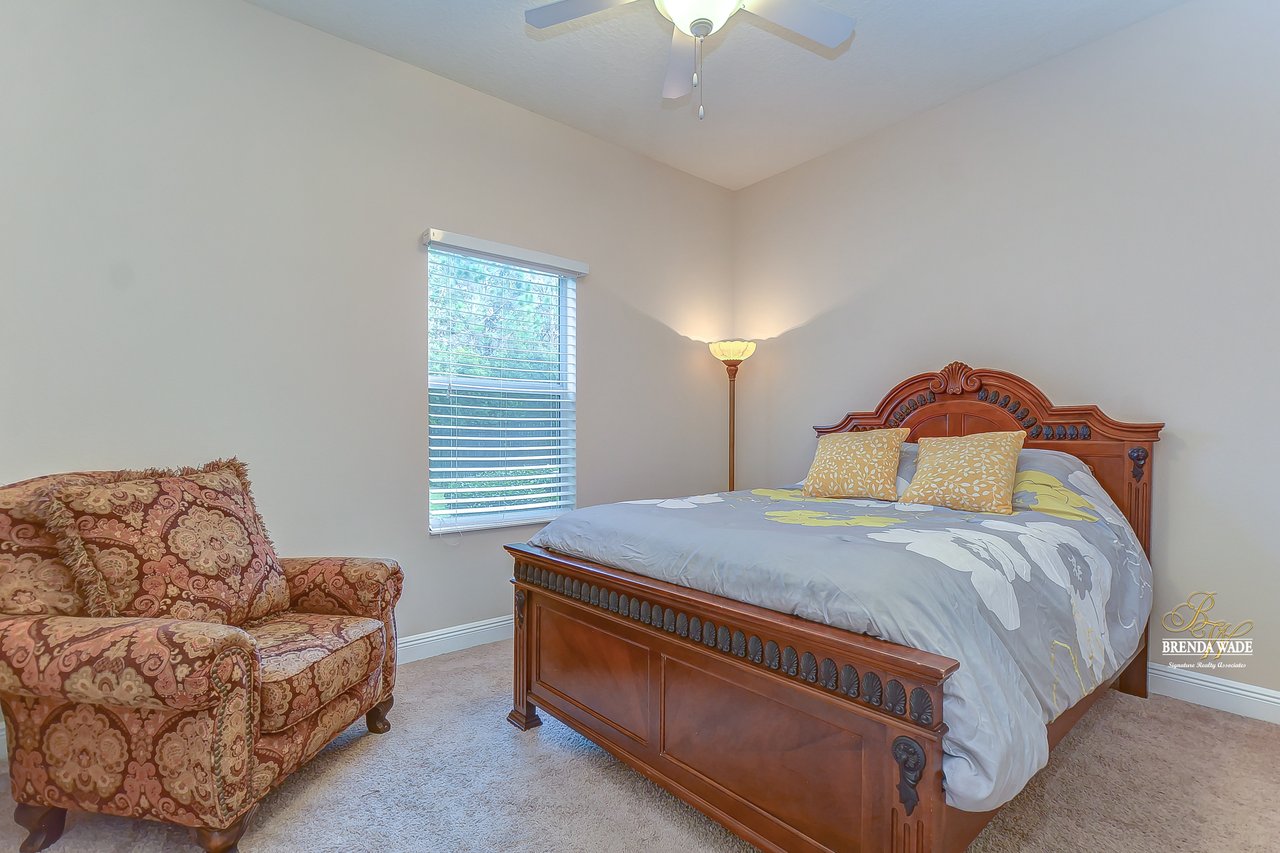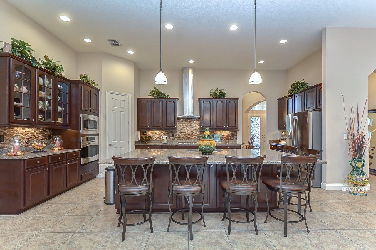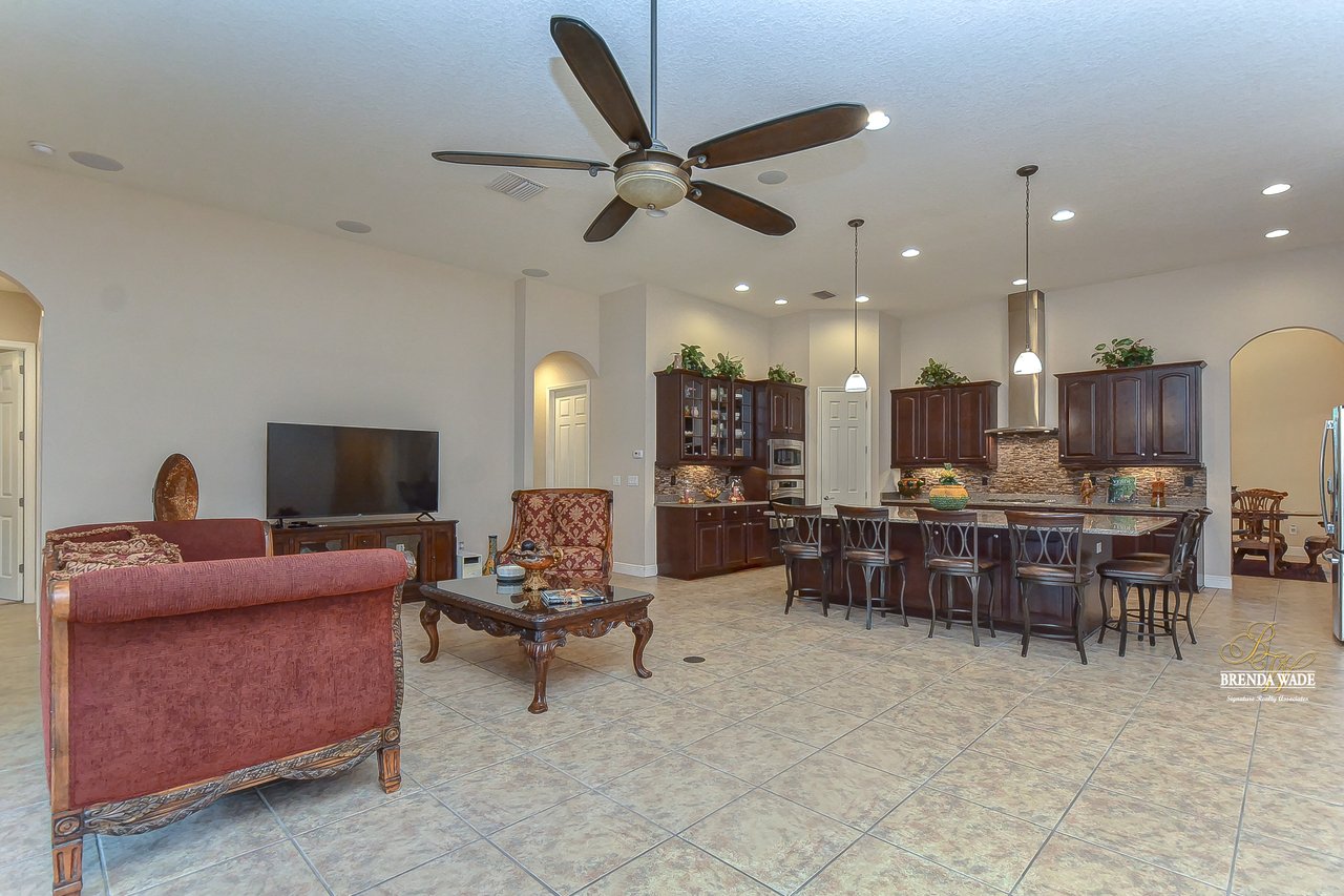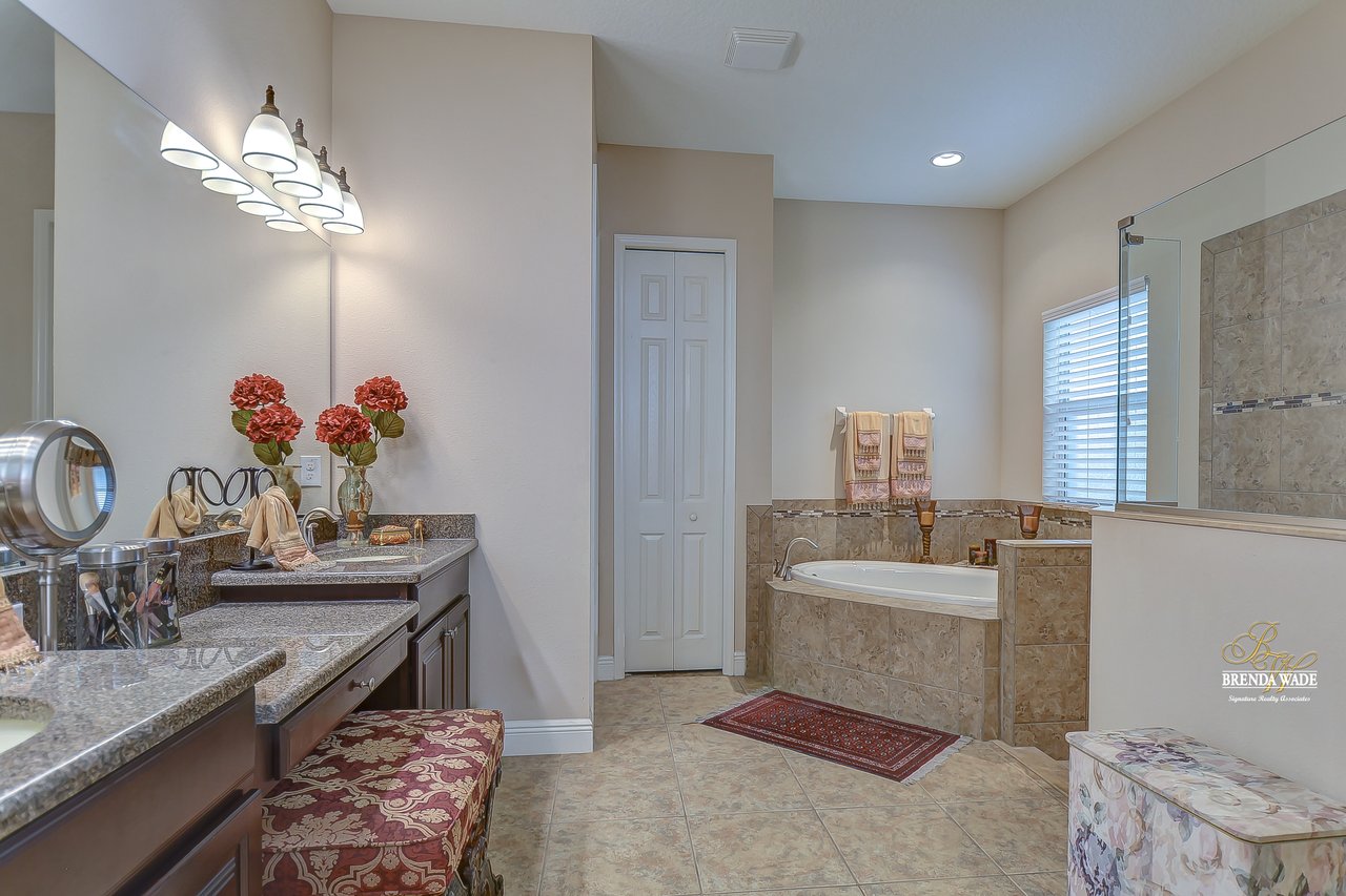 You don’t want to miss out on this one! It is everything on your checklist and MORE! Starting with the exterior, this beautiful home sits on an oversized corner lot, so you only have neighbors on one side! To make it even better, there are lush trees in your backyard so you don’t have any backyard neighbors either! Park on your pavered driveway and enjoy the stacked stone accents as well as a charming front porch to enjoy your morning coffee! Head through the double glass front doors and discover the enormous open concept floor plan that will transcend the way you entertain and live your day-to-day living! There is a private home office behind a set of french doors so working from home will be a peaceful environment allowing you to be excited to get work done every day! The living areas will captivate you with the soaring ceilings, neutral paint, and large tile flooring! The dining room offers bright windows, crown molding, and an arch entryway to the kitchen so holiday meals will surely be hosted at your house moving forward! The kitchen is STUNNING! This space will surely become a gathering place with the HUGE center island, granite counters, 42-in cabinets with crown, under cabinet lighting with a flawless backsplash, stainless appliances including statement range hood, and walk-in pantry! There is a spacious dinette area for easy meals and opens to the REMARKABLE great room! There is a wall of sliders that lead to the screened lanai and open perfectly to entertain inside and out! The primary suite has a double door entrance and features dual walk-in closets as well as an en-suite with double sinks, makeup vanity, walk-in shower, and separate soaking tub! Two additional bedrooms share a second full bathroom! The fourth bedroom is ideal for guests or in-laws being secluded at the back of the home with a walk-in closet and its own full bathroom nearby! This community is loaded with resort-style amenities and zoned for some of the best schools in the county! Does it get any better than this?!