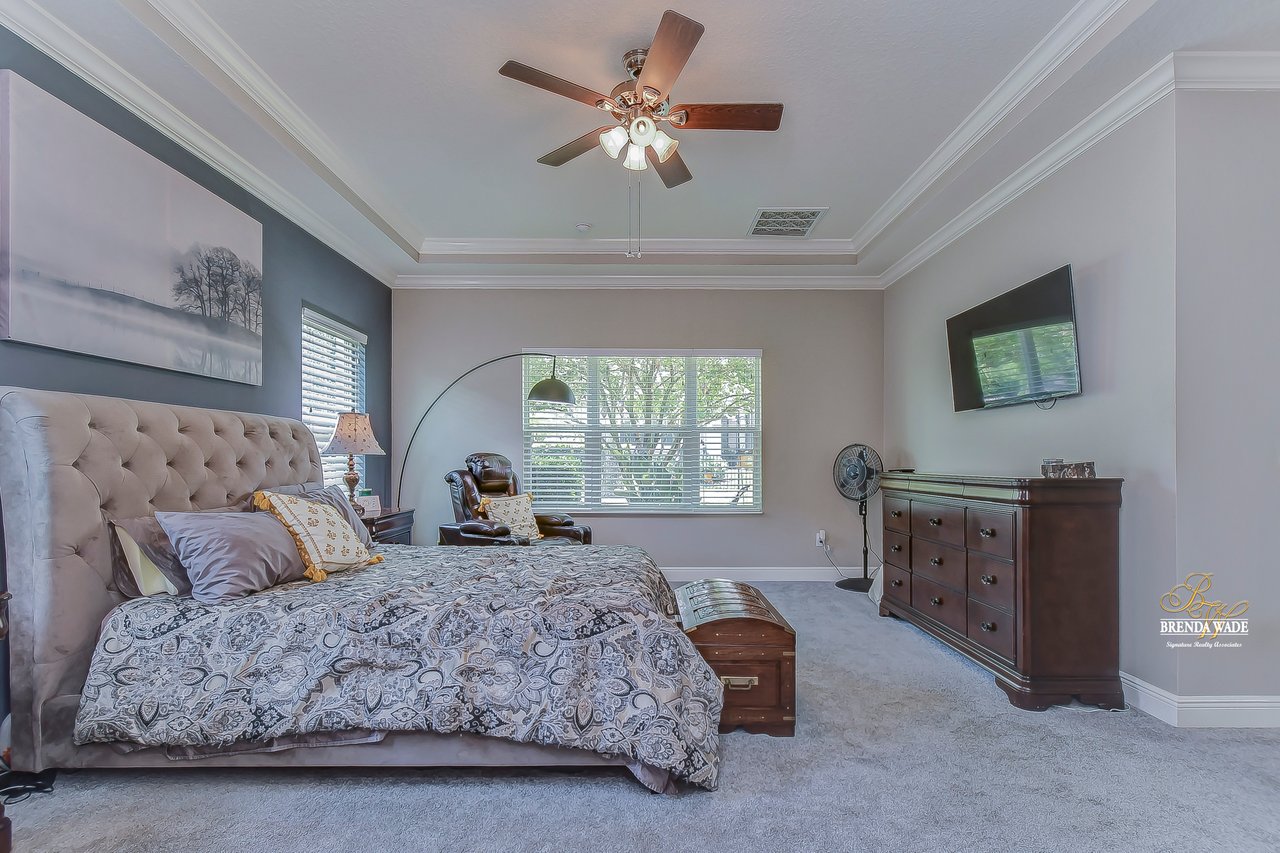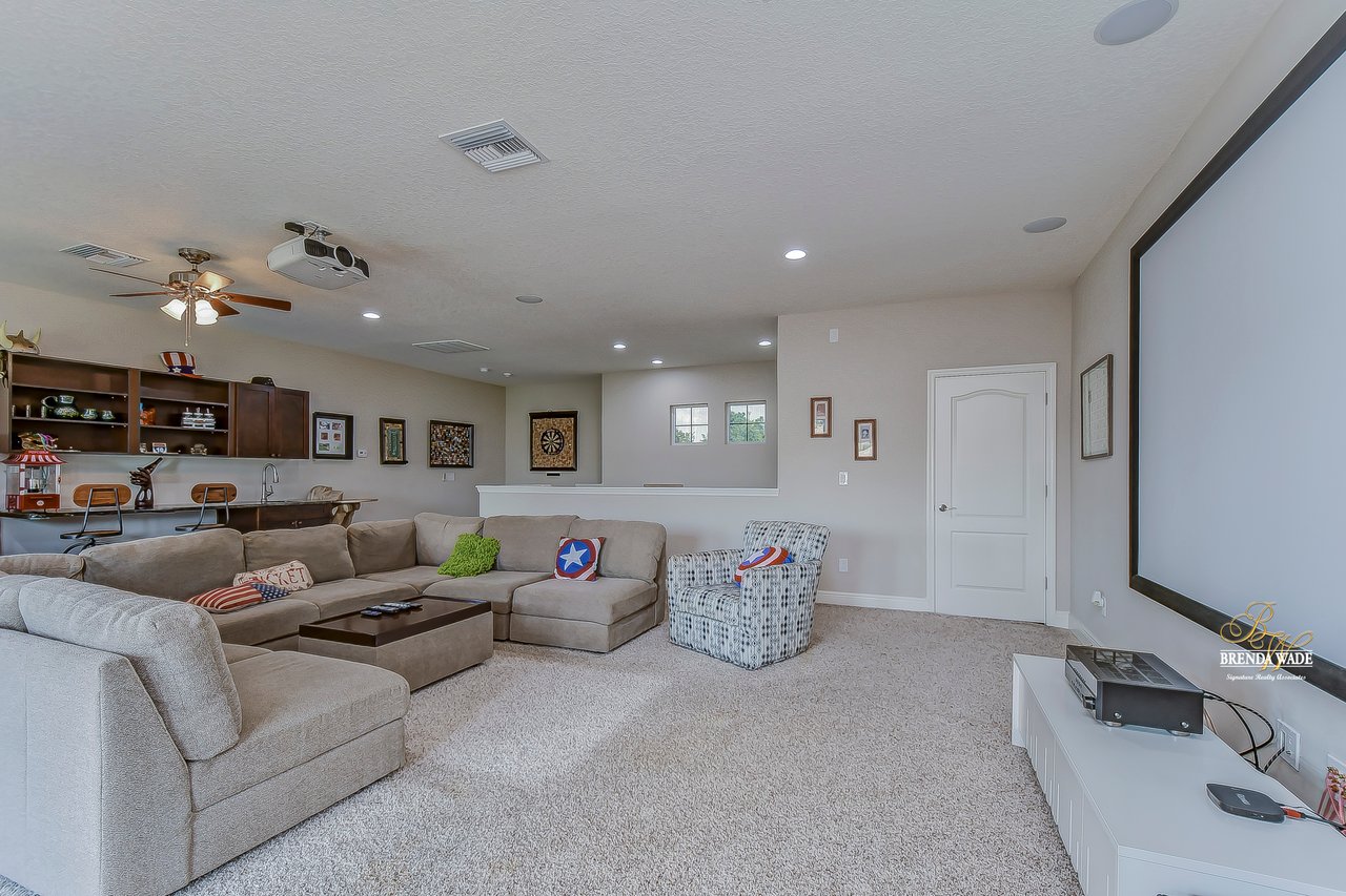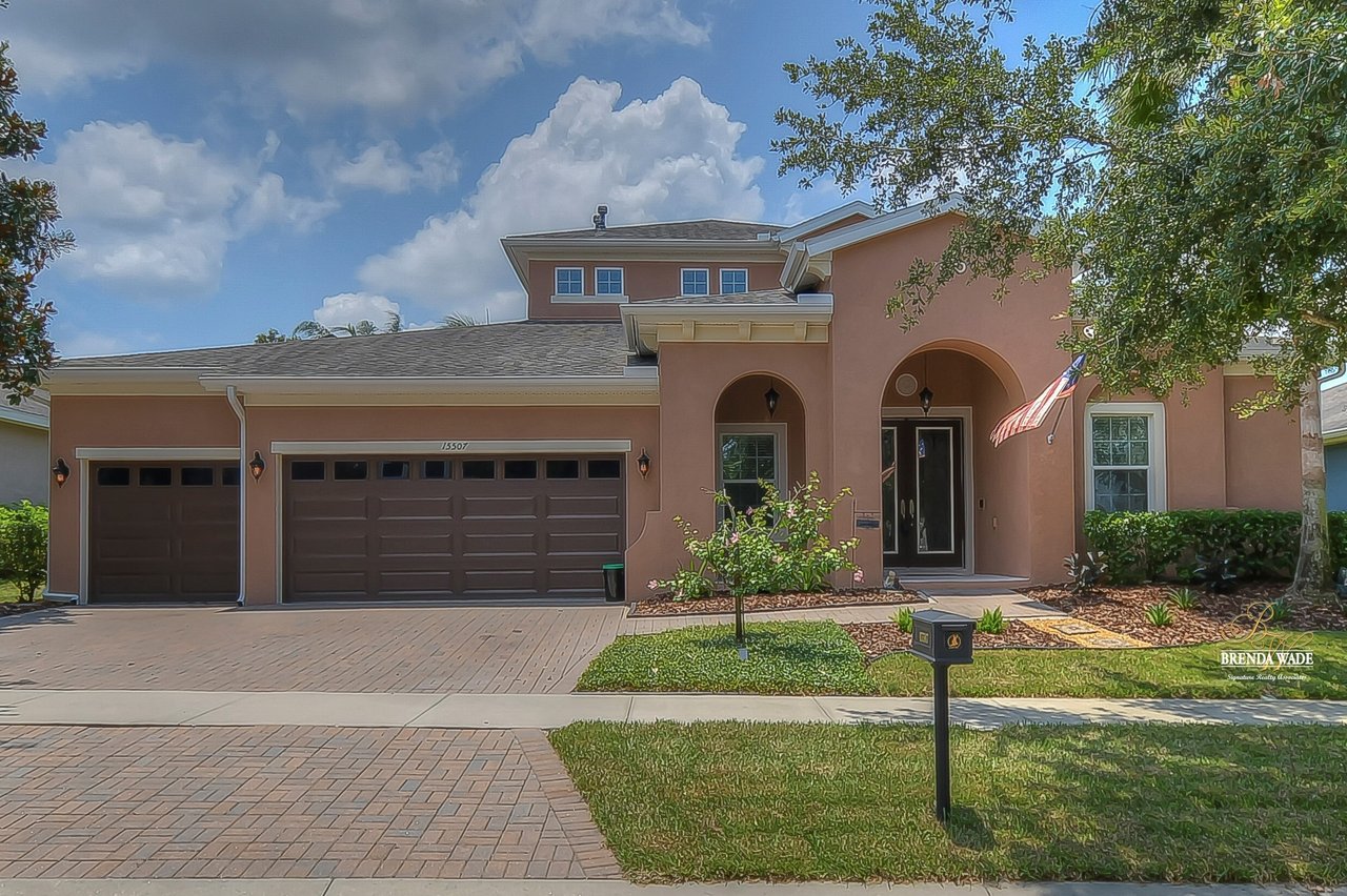 ABSOLUTELY STUNNING WestBay home in the sought-after Starling at FishHawk Ranch community! The ONLY “Longboat” floorplan in the neighborhood, you will fall in love with this exclusive and functional layout! This charming home is tucked away towards the back of the neighborhood so there is limited traffic! Notice the brick pavered driveway and walkway, three-car garage, arch entryways to the front porch, and pretty glass double front door! Inside there is a neutral paint, high ceilings, open concept design, and large ceramic tiles throughout the living areas! All of these features combine to provide the perfect home for your décor! The office has French doors, crown molding, and a large storage closet at the front of the home! The heart of the home is the gourmet kitchen! The chef in the family will be swooning over the luxury finishes in this room! Granite counters, built-in stainless appliances, 42-in cabinets topped with crown, walk-in pantry, large center island with seating, and a mosaic-style backsplash! The dining room has plantation shutters on all three walls so the natural lighting will shine in! The great room has a wall of sliders, gas fireplace, and room for the entire family to spend time together! Check out the primary suite, wow is this one special! The bedroom has tons of natural lighting and a tray ceiling with crown, but continue into the bathroom! Separate vanities with granite counters, garden tub, large walk-in shower, and AMAZING walk-in closet with built-in custom cabinets and drawers, and rack lights! Two secondary bedrooms and two bathrooms reside on the second floor but don’t forget to go upstairs to see even more! There is a HUGE bonus room that has a screen and projector so you have the PERFECT media room setup! There are two sets of french doors that lead to the spacious balcony as well as a floating wet bar to entertain guests! The fourth bedroom is upstairs as well with its own bathroom! This is ideal for the oldest kid or an in-law suite to have the privacy they desire! You will have no want more for storage around this house, there is tons of closet and cabinet space! Step outside and relax on the back patio! This stunning screened and covered patio will be your favorite spot to hang out in the summer! There is a S P A C I O U S fenced yard with meticulous landscaping and plenty of room to build your dream pool and still have yard space! The prestigious Starling at FishHawk Ranch community is zoned for some of the BEST schools in the county and offers amazing community amenities such as resort-style pool, playground, clubhouse, fitness center, tennis courts, and miles of trails! Come take a look, you won’t regret it!