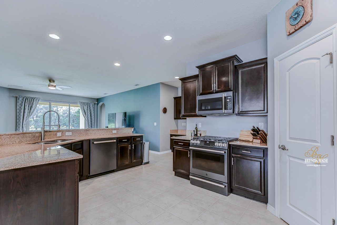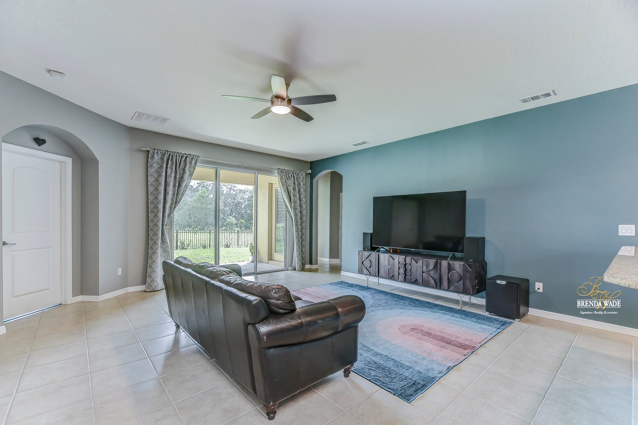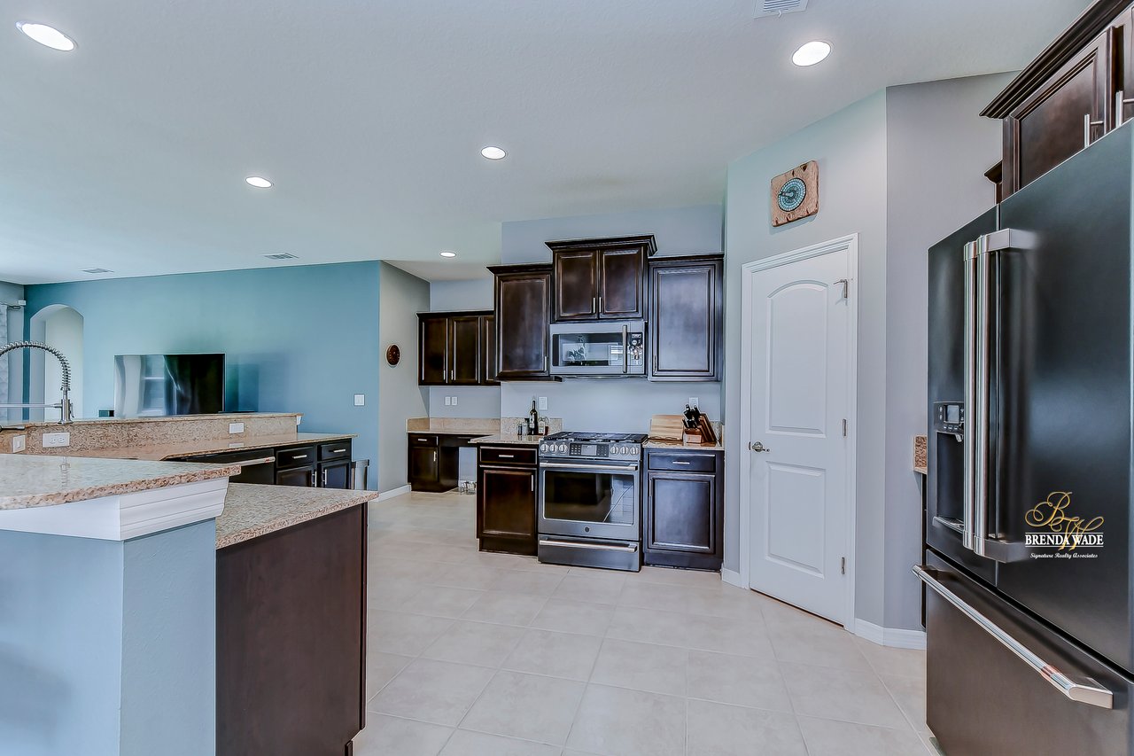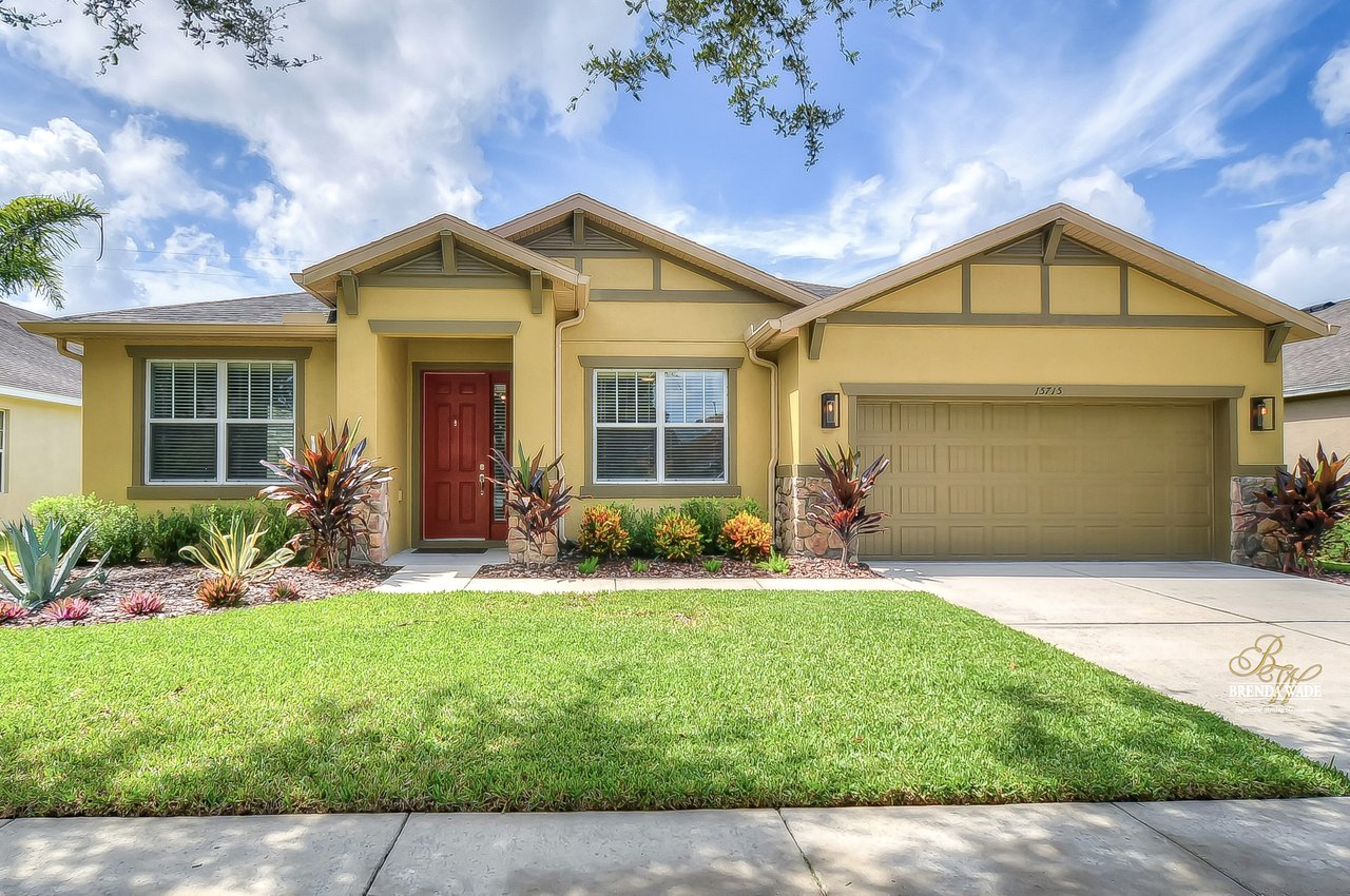 HELLO GORGEOUS! Located in the desirable Starling at FishHawk Ranch, this Energy Efficient home sits on a desirable lot with NO BACKYARD NEIGHBORS! There is a walking trail behind your home that leads to Lithia Springs as well as FishHawk Preserve so you can take the dogs on the best walks! Arrive and appreciate the tropical landscaping, stacked stone accents, and three-car tandem garage that will have you eager to step inside! The welcoming foyer offers updated light fixtures, high ceilings, and large ceramic tile flooring that continues into this open floor plan! The kitchen is A M A Z I N G showcasing granite countertops, 42-in espresso cabinets with crown, newer Café Series stainless appliances, walk-in pantry, extensive breakfast bar, and workstation desk nearby! There is a BRAND NEW range just installed, the microwave and dishwasher are brand new in 2021 and the fridge was installed in 2019, ALL with transferable warranties so you will have peace of mind with all of your kitchen appliances! This spacious kitchen will allow plenty of space for the entire family to help prepare dinner together! The dining room is conveniently just off the kitchen with updated chandelier and bright natural lighting! You will love spending time in the great room including a triple slider to the lanai and fenced yard! Open those up and you can entertain inside and out! The primary suite boasts stunning wood flooring installed in 2020 that matches the other bedrooms AND bonus room! Flooded with natural lighting, continue into the primary bathroom where you will discover separate soaking tub and walk-in shower, dual sinks, as well as a HUGE walk-in closet! This home features a triple split floor plan making it perfect for a guest suite or multi-generational family! Two bedrooms share a bathroom at the back of the home with access to the lanai while the fourth bedroom is towards the front of the home with its own bathroom close by! Did we mention the bonus media room?! This room has a double door entrance, is wired for a projector, and flooded with natural lighting proving to be quite the oasis! Spend your days outside on the back porch where the fenced yard offers room to even build your dream pool and still have yard space! Starling is zoned for the BEST “A” rated schools in Hillsborough County and boasts resort-like amenities! Community pools, splash pad, fitness center, dog parks, nature trails, and tennis courts! Don’t delay on this one, come see it today!