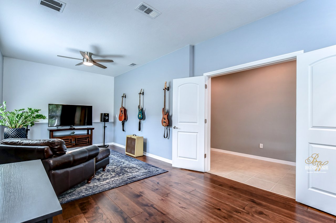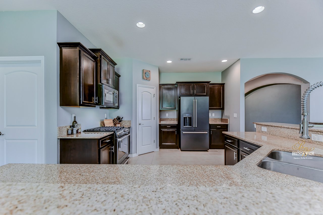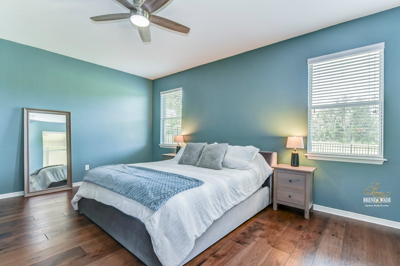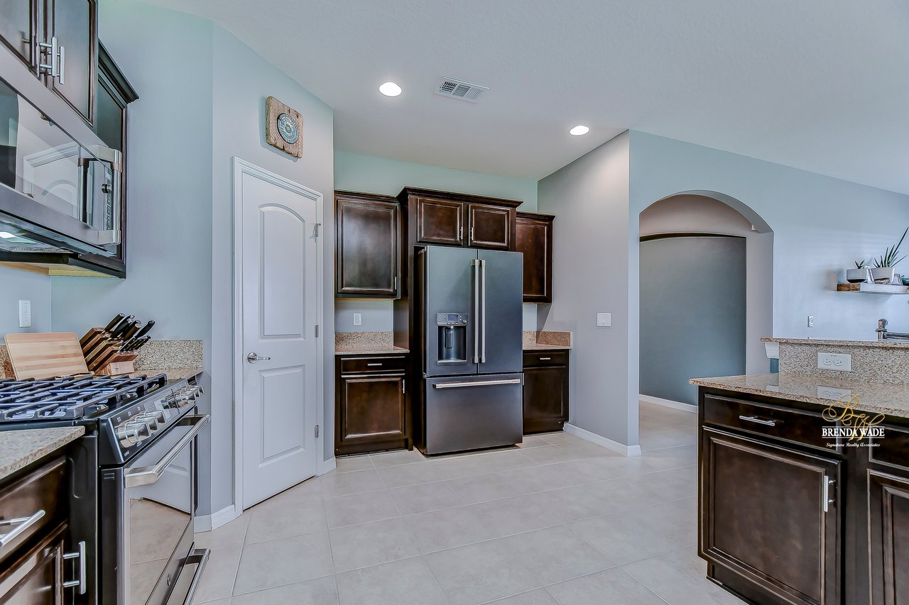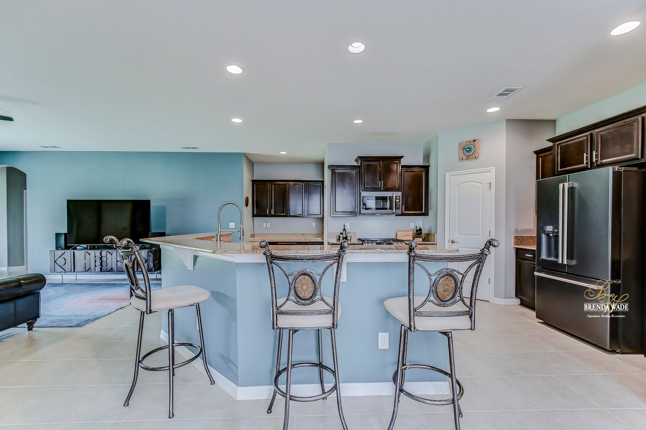 HELLO GORGEOUS! Located in the desirable Starling at FishHawk Ranch, this Energy Efficient home sits on a desirable lot with NO BACKYARD NEIGHBORS! There is a walking trail behind your home that leads to Lithia Springs as well as FishHawk Preserve so you can take the dogs on the best walks! Arrive and appreciate the tropical landscaping, stacked stone accents, and three-car tandem garage that will have you eager to step inside! The welcoming foyer offers updated light fixtures, high ceilings, and large ceramic tile flooring that continues into this open floor plan! The kitchen is A M A Z I N G showcasing granite countertops, 42-in espresso cabinets with crown, newer Café Series stainless appliances, walk-in pantry, extensive breakfast bar, and workstation desk nearby! There is a BRAND NEW range just installed, the microwave and dishwasher are brand new in 2021 and the fridge was installed in 2019, ALL with transferable warranties so you will have peace of mind with all of your kitchen appliances! This spacious kitchen will allow plenty of space for the entire family to help prepare dinner together! The dining room is conveniently just off the kitchen with updated chandelier and bright natural lighting! You will love spending time in the great room including a triple slider to the lanai and fenced yard! Open those up and you can entertain inside and out! The primary suite boasts stunning wood flooring installed in 2020 that matches the other bedrooms AND bonus room! Flooded with natural lighting, continue into the primary bathroom where you will discover separate soaking tub and walk-in shower, dual sinks, as well as a HUGE walk-in closet! This home features a triple split floor plan making it perfect for a guest suite or multi-generational family! Two bedrooms share a bathroom at the back of the home with access to the lanai while the fourth bedroom is towards the front of the home with its own bathroom close by! Did we mention the bonus media room?! This room has a double door entrance, is wired for a projector, and flooded with natural lighting proving to be quite the oasis! Spend your days outside on the back porch where the fenced yard offers room to even build your dream pool and still have yard space! Starling is zoned for the BEST “A” rated schools in Hillsborough County and boasts resort-like amenities! Community pools, splash pad, fitness center, dog parks, nature trails, and tennis courts! Don’t delay on this one, come see it today!