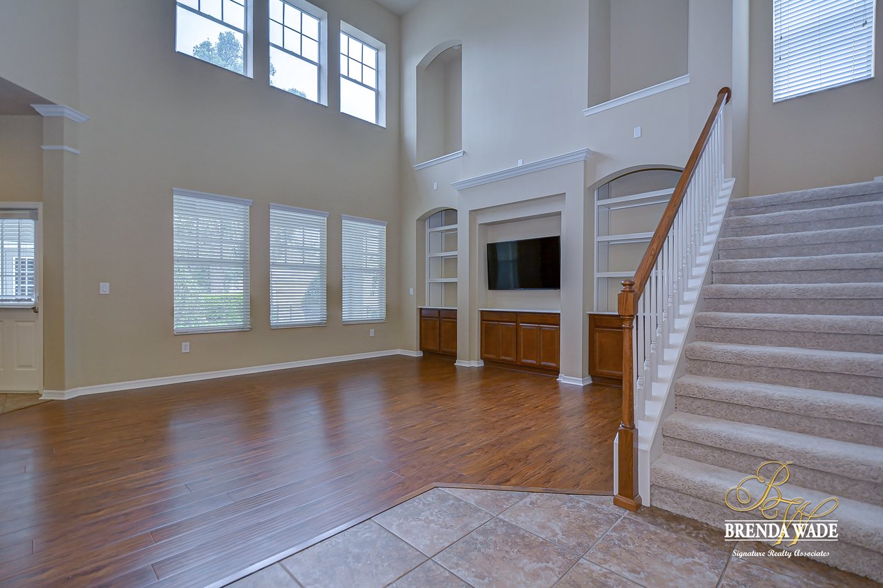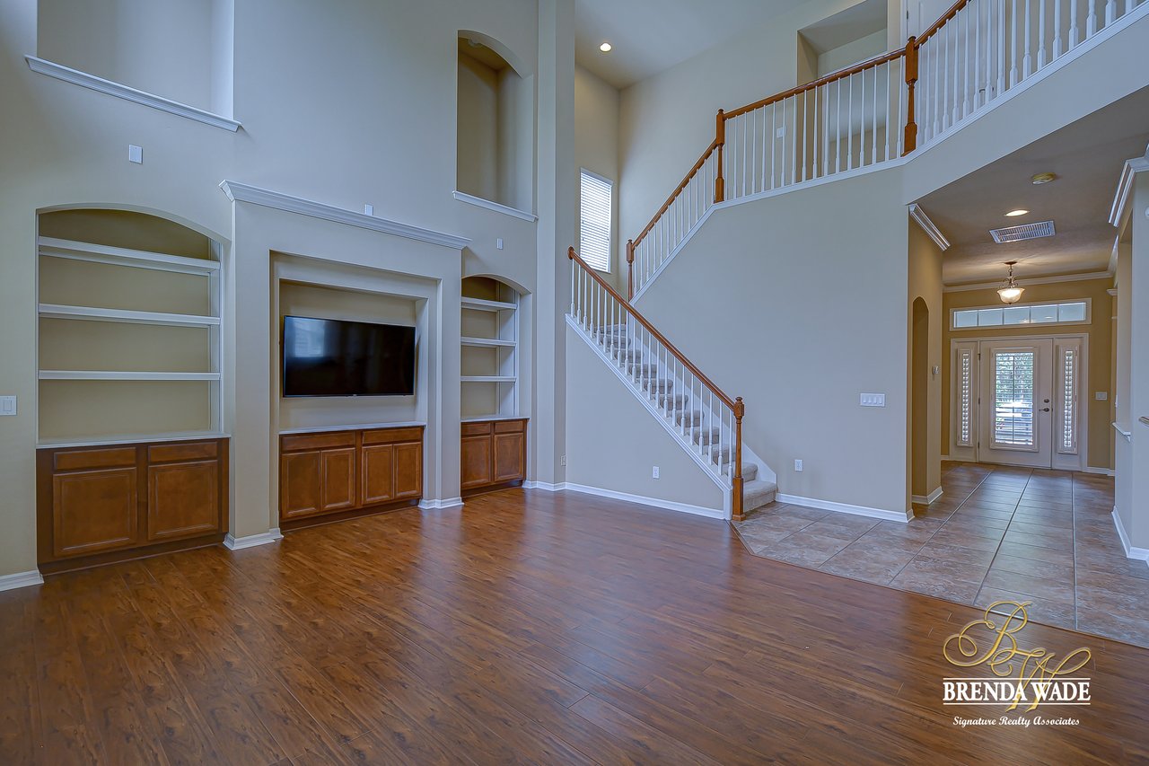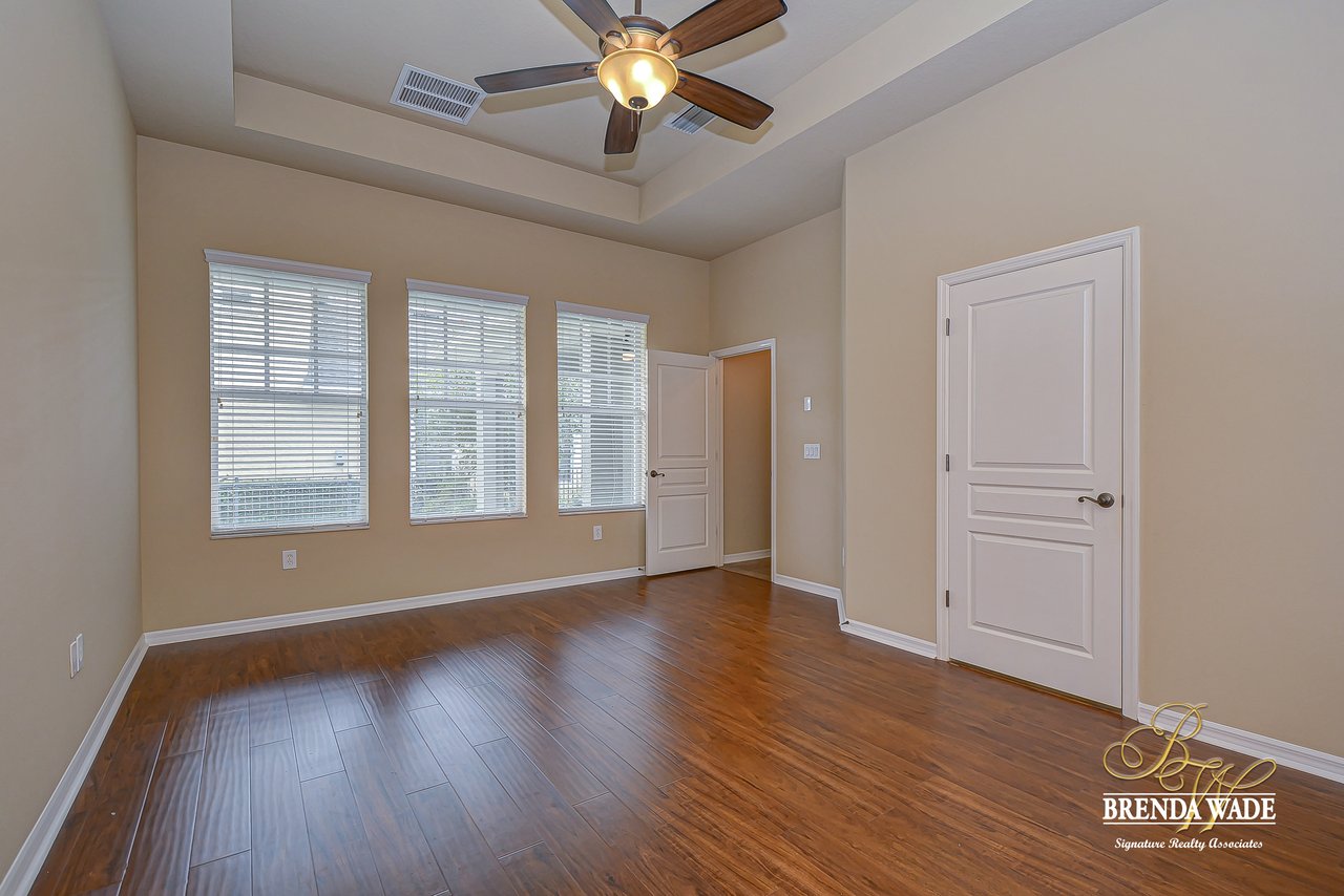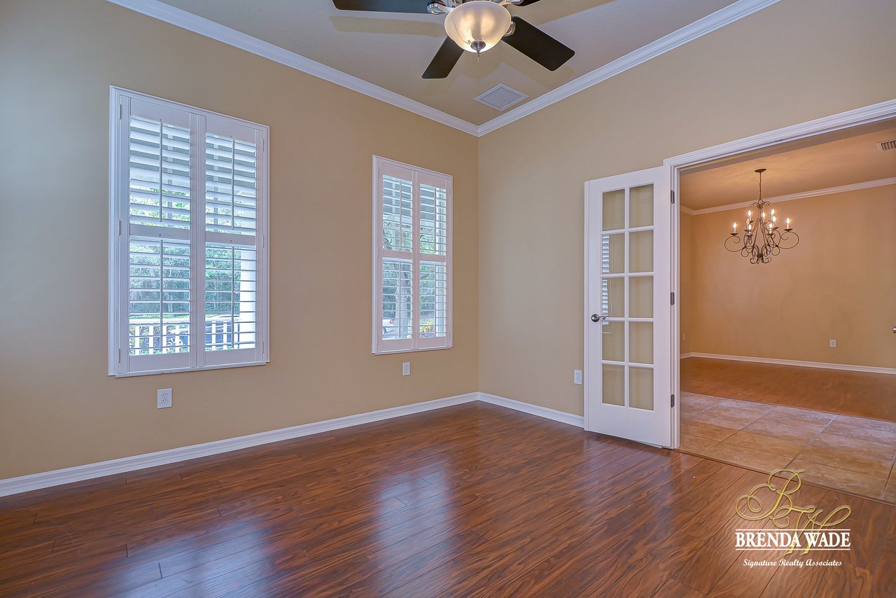 Set Apart from all the rest, this Stunning David Weekley “Sparta” floor plan is a well-appointed masterpiece designed with quality and remarkable craftsmanship! The details are certain to impress! Let’s start with the Location! This is the perfect family setting, on a quiet loop street, with a park and playground right across the street! Imagine watching the kids play while sitting on the dreamy front porch sipping your coffee?! It’s a dream! But that’s just the beginning. This home is Move-In Ready and waiting for you! ! Enjoy peace of mind knowing the exterior was Freshly painted in 2018 and the interior in 2020! A spacious dining room greets you at the door with rich wood flooring! Crown molding accentuates the dining room, foyer and living room/office space! We know having a space to work from home is essential, and this roomy office is privately tucked away behind double French doors and boasts a large storage closet! If you are a hostess at heart, you will fall head over heels for the open family room and kitchen area! Offering granite counters, built-in stainless appliances, rich maple cabinets with 42” uppers topped with crown, Huge center island, tile backsplash and a sunny eat-in breakfast nook, there is nothing left to be desired in this kitchen! The inviting family room draws you in with its soaring 28’ ceilings, custom built-in’s, and gorgeous wall of windows, easily making this space the lightest and brightest space in the house! This is sure to be the family’s favorite space to gather! One of the best features of this home is the private split floor plan, keeping the master suite secluded downstairs with a pretty tray ceiling and a luxurious en-suite boasting an oversized walk-in closet, his and hers sinks, walk-in shower and separate soaking tub! Head upstairs to find the kids retreat! An enormous bonus space at the top of the stairs gives you a multitude of options, play area, homeschool center, media room or even just a 2nd living area, the options are endless! Three more oversized guest bedrooms are found upstairs and two more full baths. Storage is certainly abundant throughout the home and also in the oversized garage! Seriously, this home is a Gem! Come take a look today!