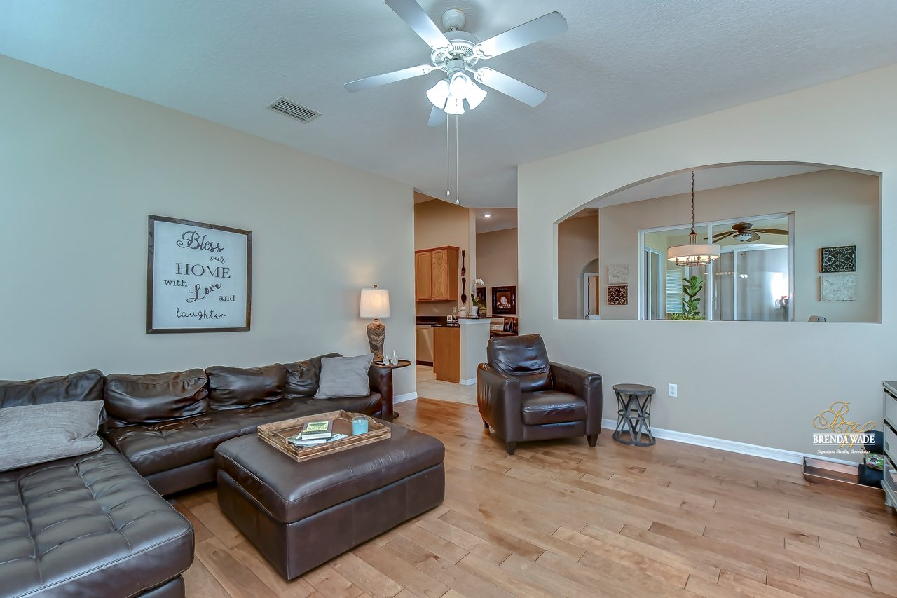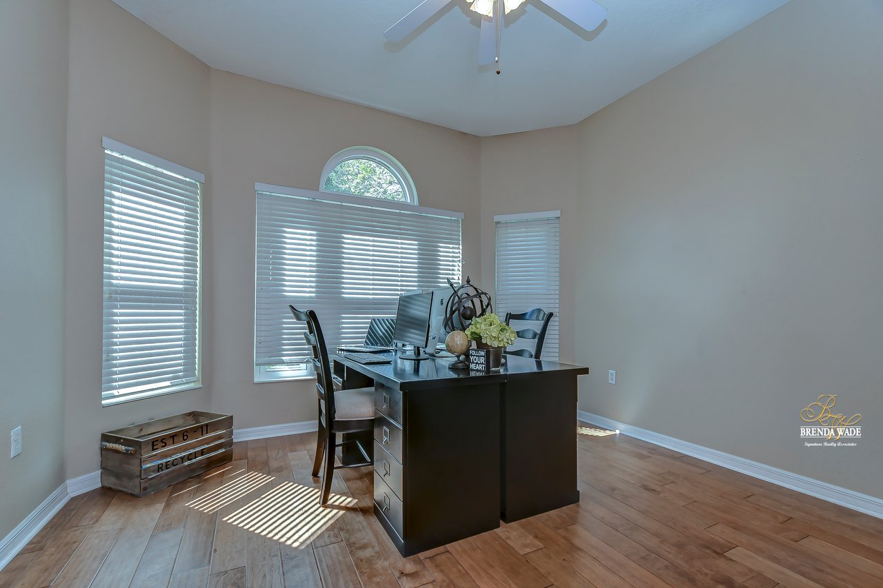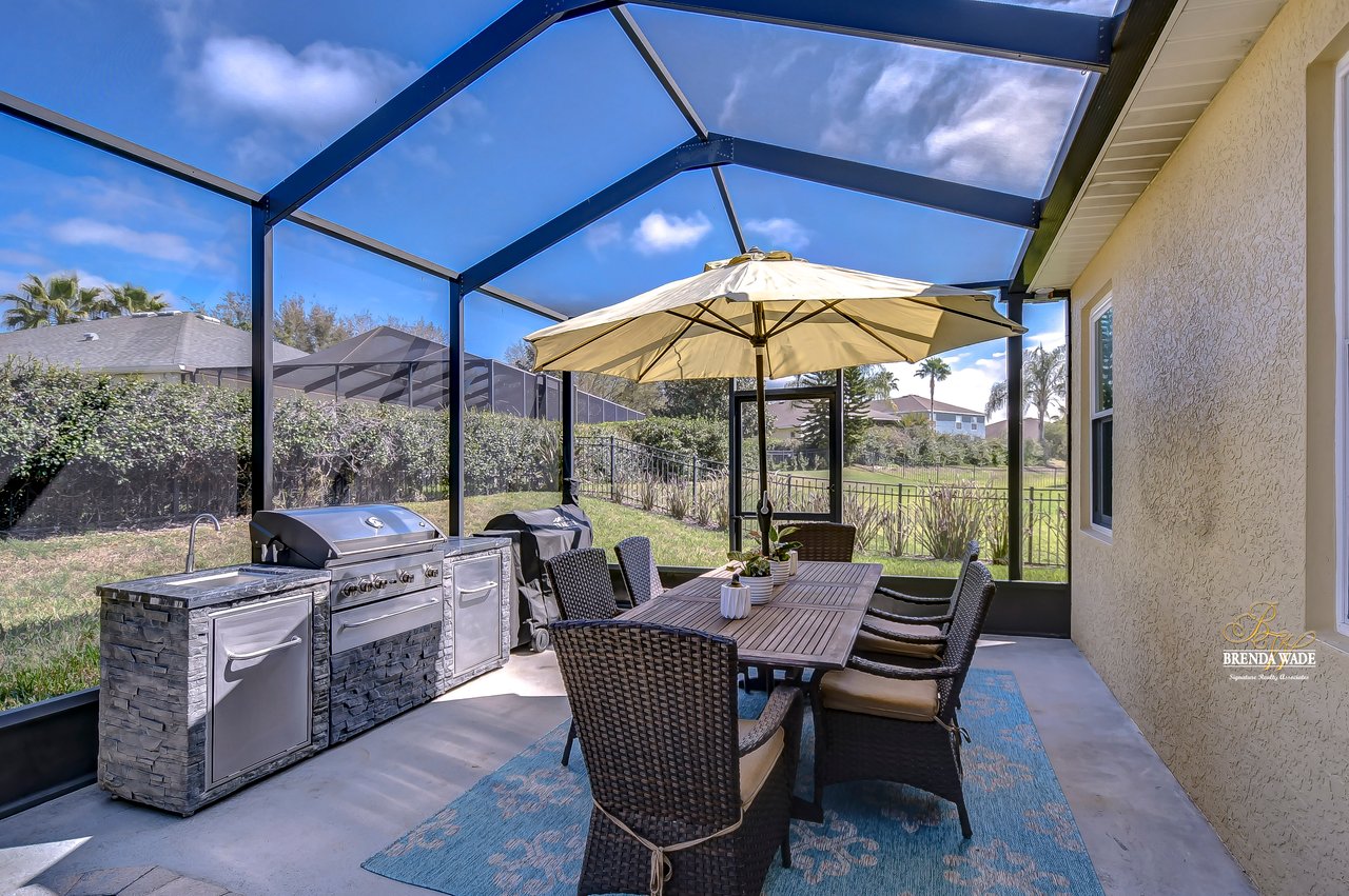 This updated FISHHAWK home with a fenced yard features an open floor plan that the whole family is sure to enjoy! The lovely Beazer Canterbury home offers 2,660 Sqft consisting of 4-bedrooms, 3-bathrooms, plus an office! Enter through the double front door entrance and instantly fall in love with the stunning hardwood floors, neutral paint, high ceilings, and fantastic open design! NO carpet throughout the entire home, so cleaning will be a breeze! The dining room boasts upgraded light fixtures and an ideal space for all of your holiday meals moving forward! The living room has triple sliders allowing a great view of the screened lanai and private yard! The kitchen is a treat and will surely please the chef in the family! Stainless steel appliances installed in 2021, granite countertops, 42-in oak cabinetry topped with crown, breakfast bar seating, and a sunny breakfast nook for your everyday meals! The owner’s suite is tucked at the back of the home behind a set of double doors with private lanai access, dual walk-in closets with organizers, separate vanities with updated mirrors, a walk-in shower, and a separate soaking tub! The triple split floor plan boasts two bedrooms sharing one bathroom nearby while the fourth bedroom has its own attached en-suite bathroom! Secluded at the front of the home is a private home office where you can peacefully work from home! An entertainer’s dream, the screened, paved lanai has a large covered area for when you need to get away from the sun and an outdoor kitchen area with grill and sink! Privacy landscaping surrounds the fenced yard so parents can rest easy while the kids run and play! FishHawk Ranch is zoned for some of the BEST schools in Hillsborough County while offering resort-style amenities for its residents! Aquatic Club, resort-style pools, tennis and basketball courts, fitness center, playgrounds, and miles of walking trails! Congratulations, you’ve just hit the jackpot with this one!