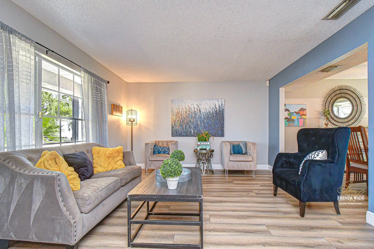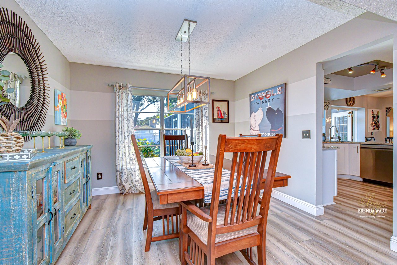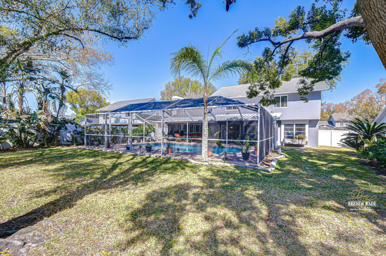 Welcome to this beautifully updated home where style, comfort, and indoor-outdoor living come together effortlessly. Upgraded luxury vinyl flooring flows seamlessly throughout the entire home, complemented by abundant natural light that fills every space. Extensive updates provide added peace of mind, including a water heater replaced in 2020, a pool pump in 2021, a fully remodeled kitchen with appliances, cabinetry, and countertops in 2022, and a remodeled laundry room with new cabinetry and countertops also completed in 2022. A formal living room welcomes you inside, seamlessly connecting to the formal dining room, creating an inviting setting for both everyday living and entertaining, while a convenient half bath on the main level adds functionality for guests. The remodeled kitchen is thoughtfully designed with granite countertops, stainless appliances, white cabinetry, and a pass-through window--perfect for easy outdoor dining and entertaining. A charming breakfast nook sits between the kitchen and family room, where French doors open to reveal a sparkling pool and peaceful tropical backdrop beyond. The family room serves as a warm and welcoming gathering space, featuring a stunning stone wood-burning fireplace framed by built-in shelving, soaring vaulted ceilings, and sliding glass doors leading to the screened lanai--creating a seamless blend of indoor comfort and outdoor relaxation. Upstairs, the primary suite offers a private retreat complete with a walk-in closet and an en-suite bathroom featuring an updated shower. Three additional generously sized bedrooms share a full bathroom with a remodeled shower and tub combination, providing comfortable accommodations for family or guests. Step outside to a backyard designed for year-round enjoyment. The oversized screened lanai overlooks a sparkling pool, surrounded by lush tropical landscaping that creates a private and serene setting ideal for relaxing or entertaining. Recent outdoor improvements, including pool deck pavers, pool resurfacing, and a pool enclosure completed in 2018, enhance both beauty and functionality. You'll love being zoned for the "A" rated schools! Ideally located near shopping, including Whole Foods on Lithia Pinecrest, major roadways for easy commuting, and an array of popular dining options, this home also enjoys close proximity to Bloomingdale Golfers Club, offering recreation and convenience just minutes away. This exceptional home combines thoughtful upgrades, inviting living spaces, and a prime location--offering the perfect balance of comfort and lifestyle.