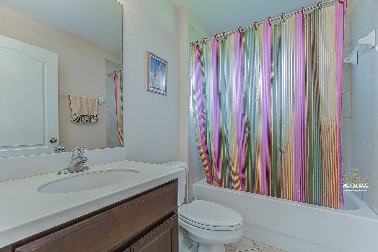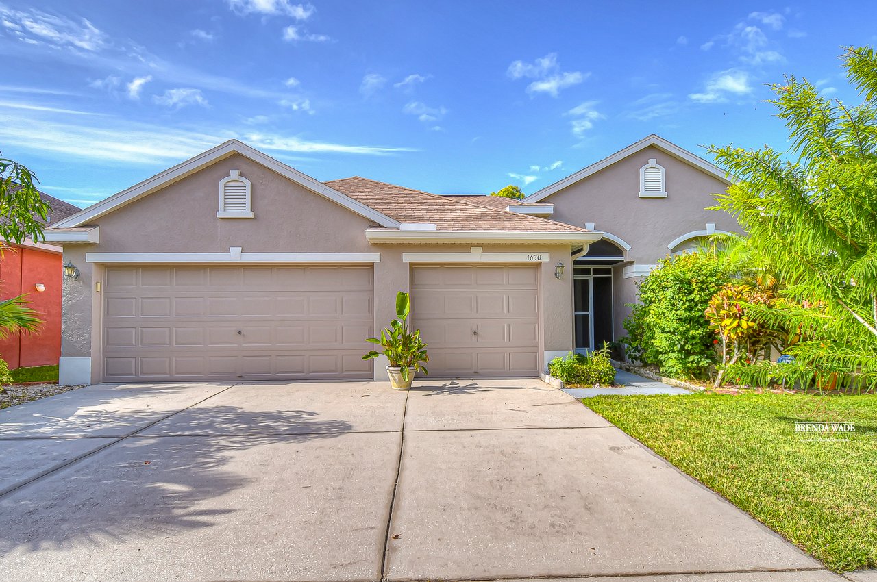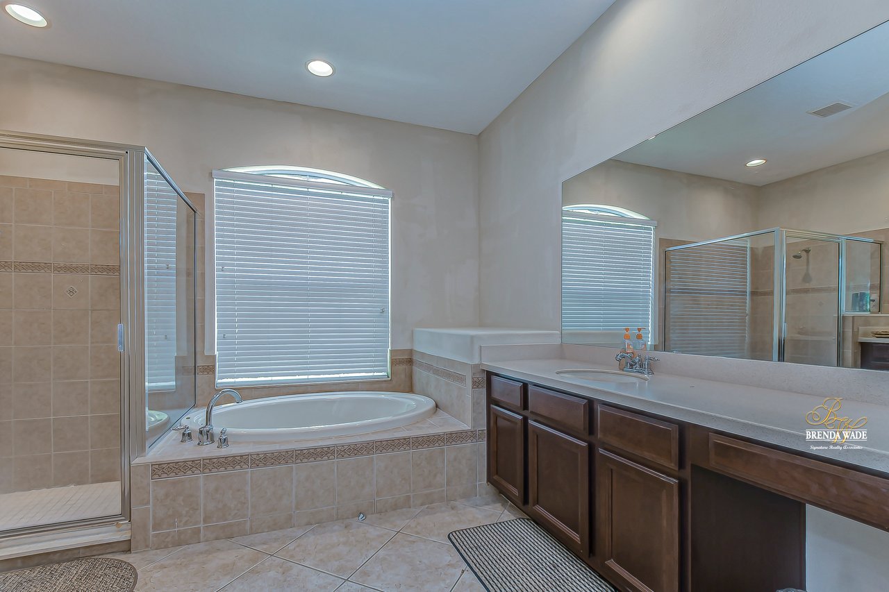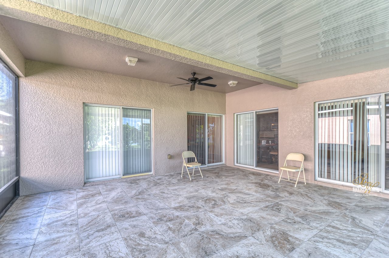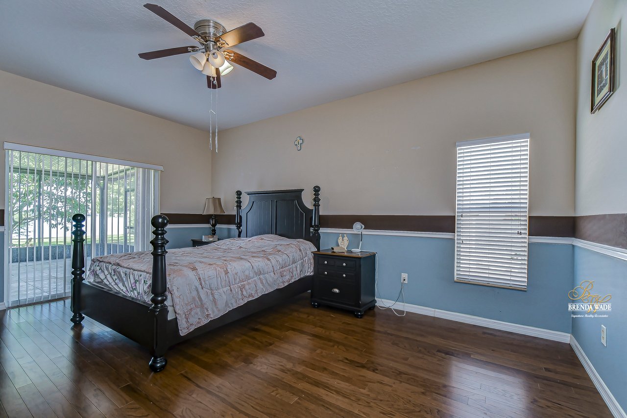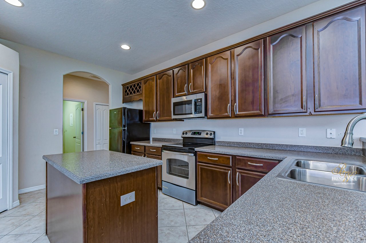 Welcome to this wonderful home that sits lakeside in the picturesque, gated Mira Lago community! Views like this do not come along often so do not delay and come and come take a look at this fantastic opportunity! Boasting 4 bedrooms, 3 baths, and almost 2,200 SqFt that lives large, this is the perfect family home! Be greeted by the impressive curb appeal that features a spacious lot with lush landscaping and home that features decorative accents including arched window frames and entrance way! Through the front door with sidelight, you arrive in the foyer! Notice the formal rooms that both offer wood floors and make the perfect entertaining space! The main living areas offer oversized tile on the diagonal with the family room boasting a wall of windows as well as a slider, making the most of the natural light! The kitchen with warm cherry cabinets, island, and closet pantry overlooks the family room making it the perfect spot to hang out with family while preparing family meals! The private primary suite, on its own side of the house, is a tranquil oasis with beautiful flooring, double slider, and dual closets giving you plenty of storage! The primary bath with soaking tub, walk-in shower and his and her sinks will be your sanctuary! There are two additional bedrooms sharing the second bathroom while the fourth bedroom and third bath are at the back of the home! This triple split floor plan is ideal for guests or a multi-generational family! The home is painted in neutral color tones so it is ready and waiting for you to bring your furniture and decor! At the back of the home, you will find a large screened and covered lanai with tile floors where you can spend your time appreciating the wonderful water views! Mira Lago is a wonderful community with resort-style community pool, playground, park, tennis courts, and more! Come take a look at this wonderful home and make it yours!