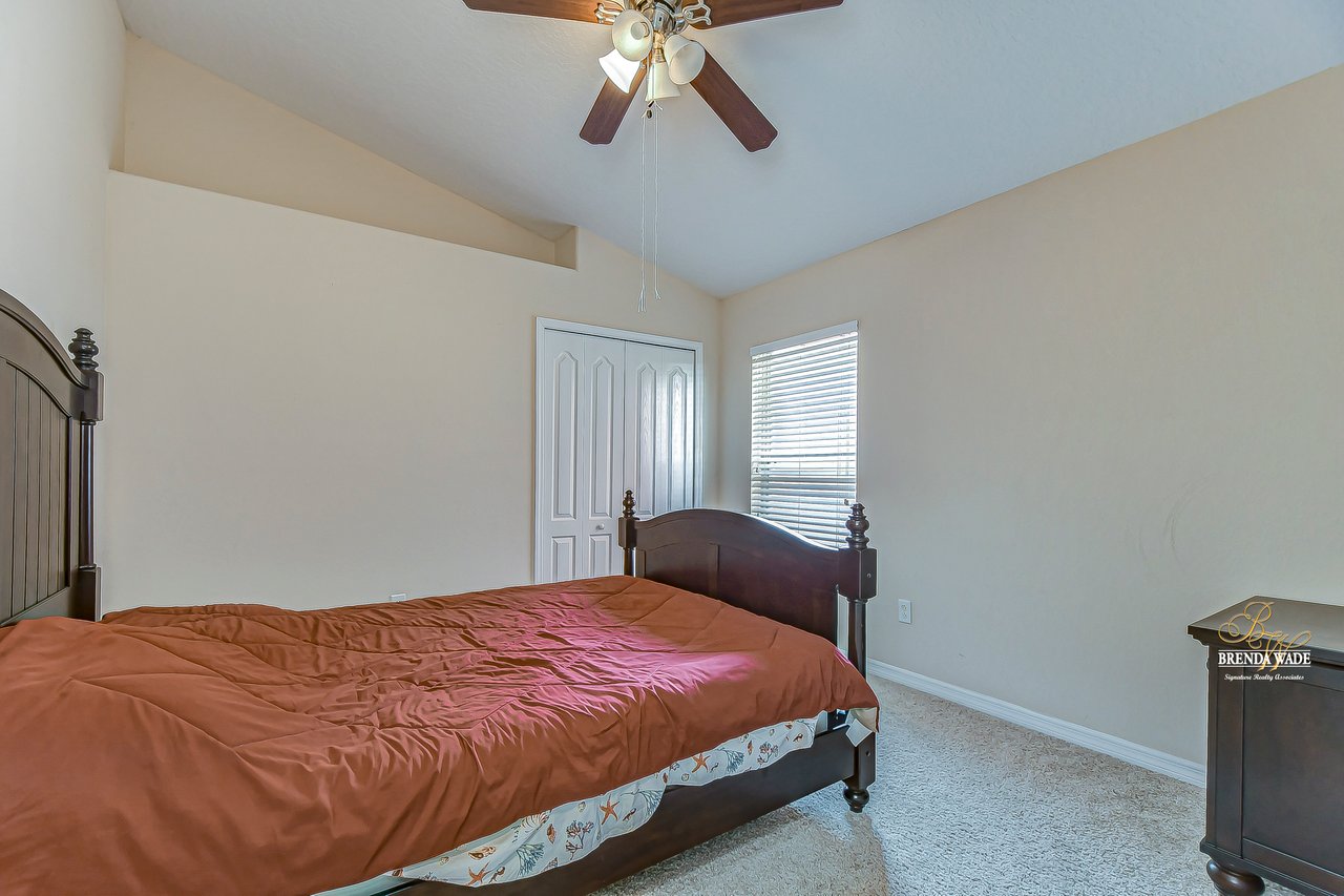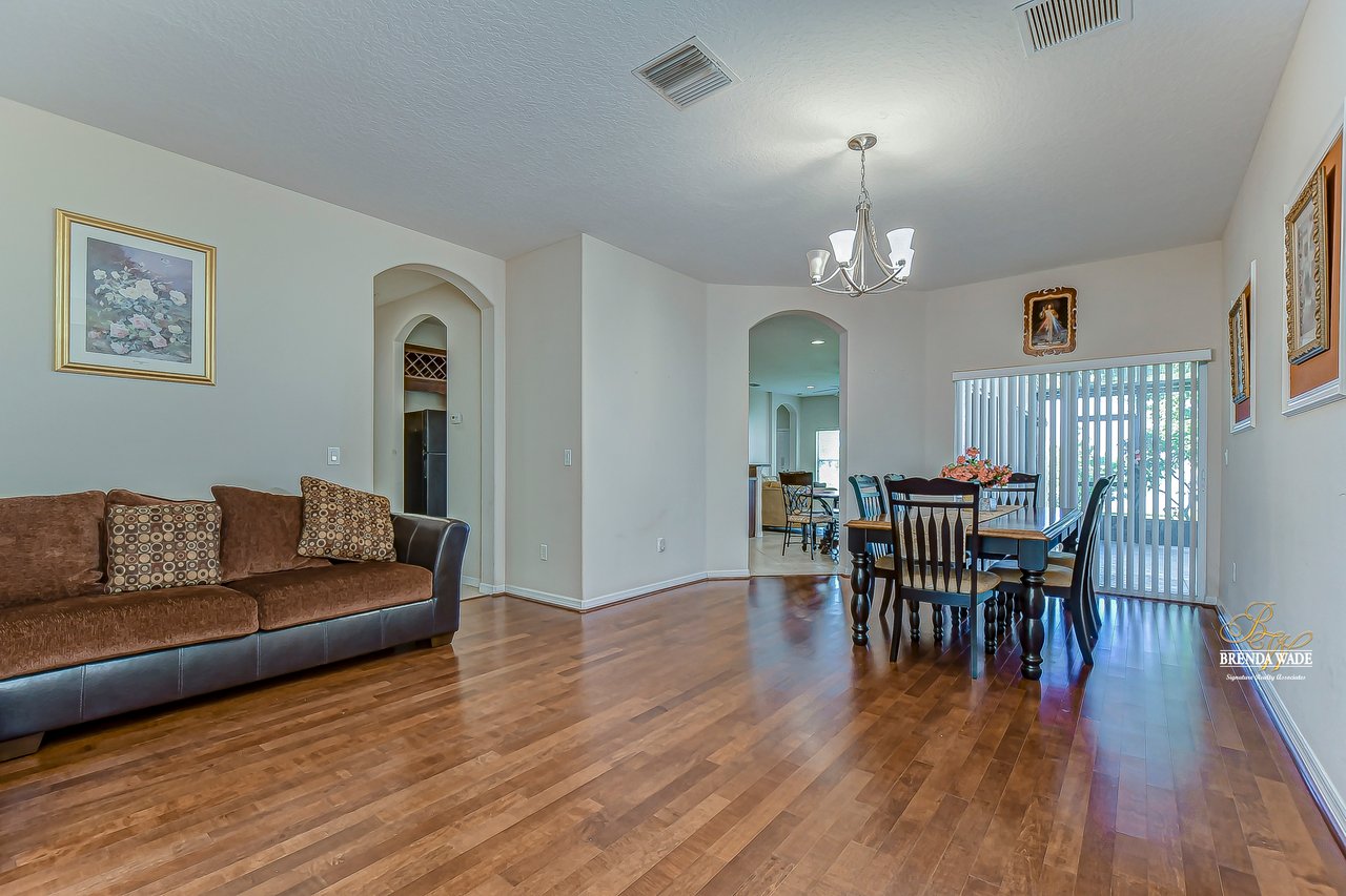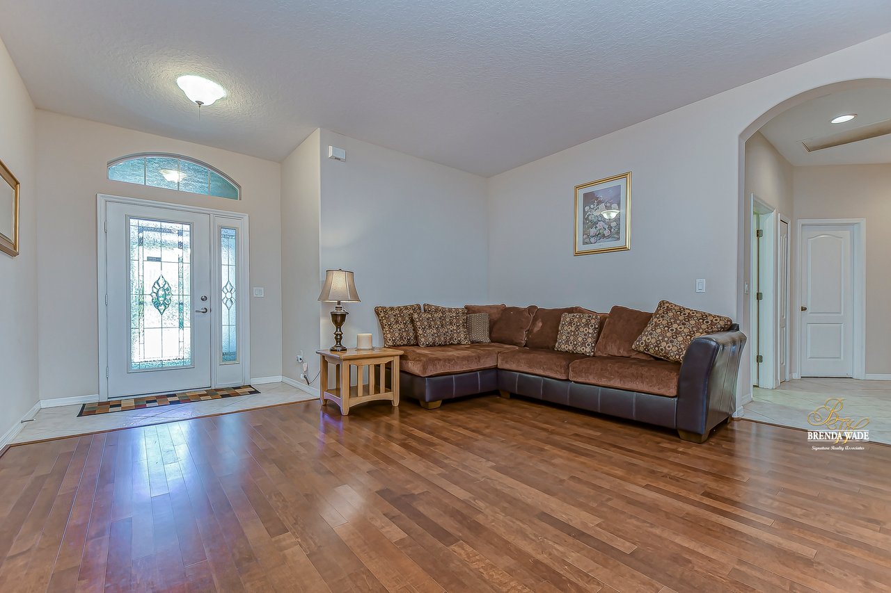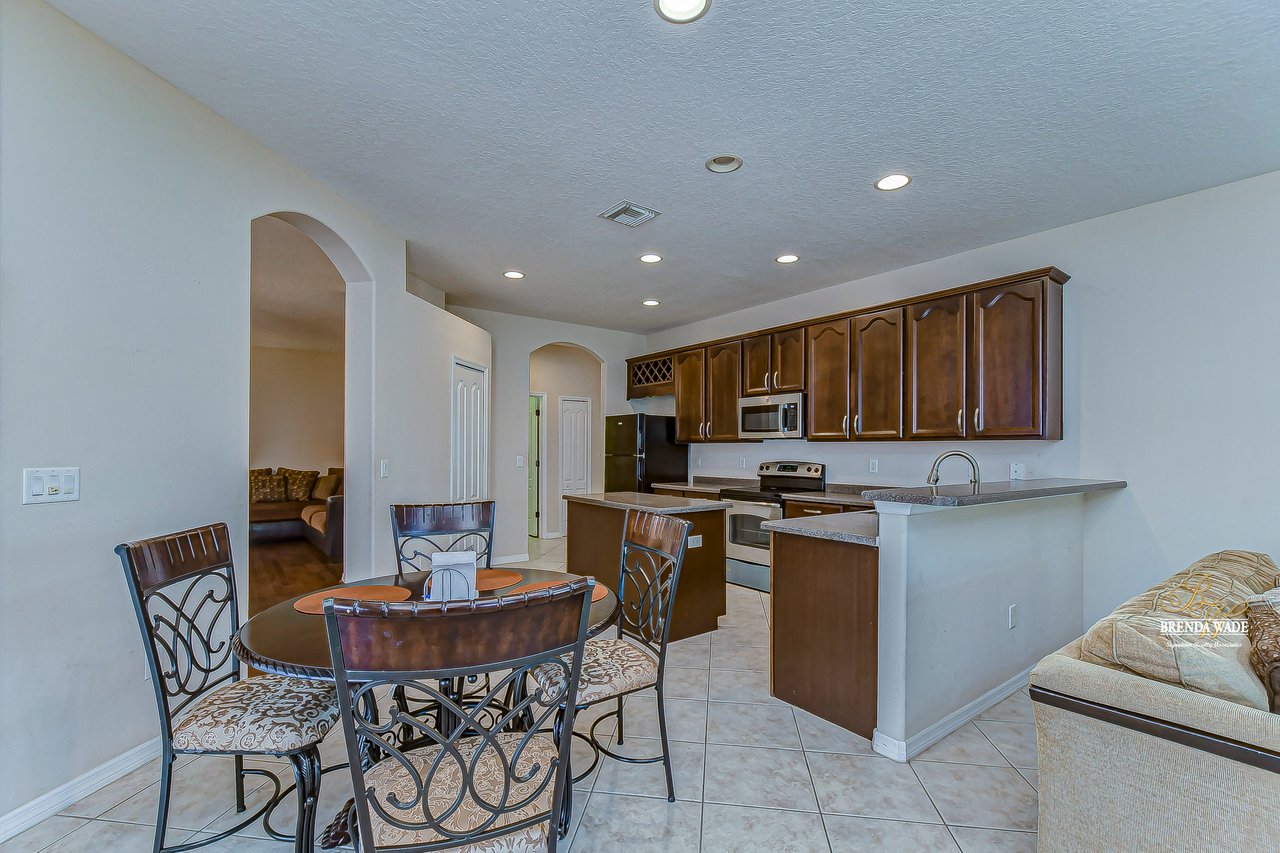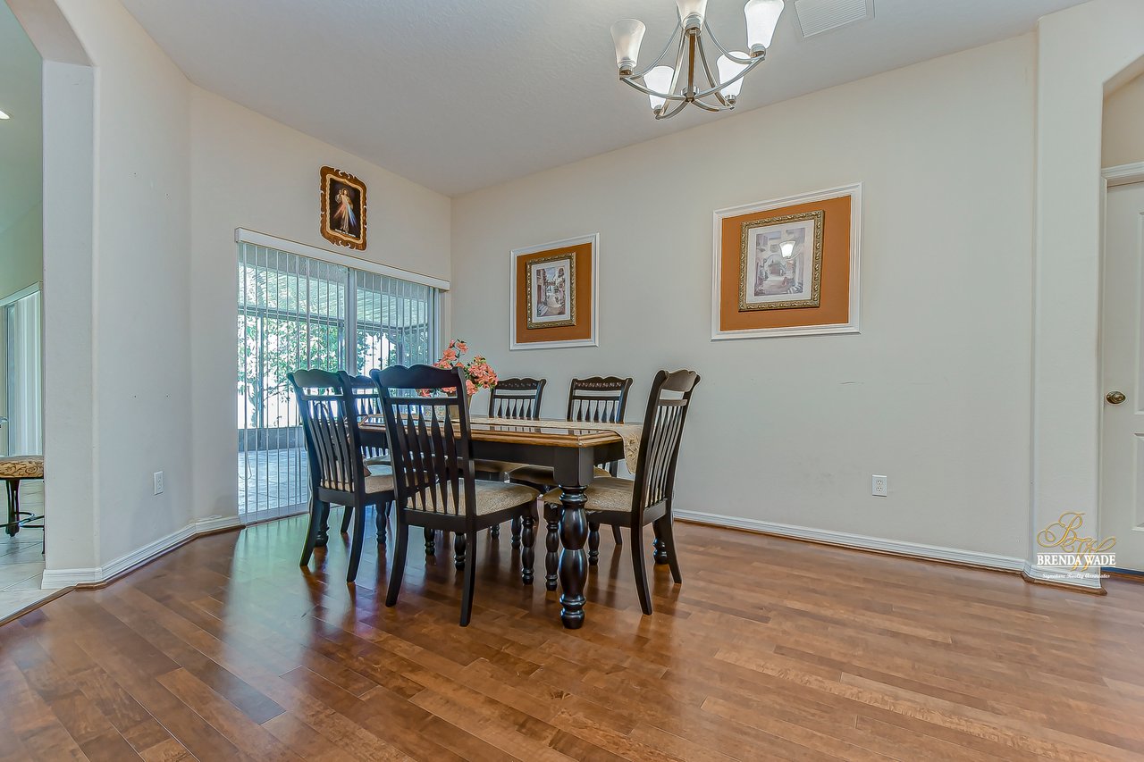 Welcome to this wonderful home that sits lakeside in the picturesque, gated Mira Lago community! Views like this do not come along often so do not delay and come and come take a look at this fantastic opportunity! Boasting 4 bedrooms, 3 baths, and almost 2,200 SqFt that lives large, this is the perfect family home! Be greeted by the impressive curb appeal that features a spacious lot with lush landscaping and home that features decorative accents including arched window frames and entrance way! Through the front door with sidelight, you arrive in the foyer! Notice the formal rooms that both offer wood floors and make the perfect entertaining space! The main living areas offer oversized tile on the diagonal with the family room boasting a wall of windows as well as a slider, making the most of the natural light! The kitchen with warm cherry cabinets, island, and closet pantry overlooks the family room making it the perfect spot to hang out with family while preparing family meals! The private primary suite, on its own side of the house, is a tranquil oasis with beautiful flooring, double slider, and dual closets giving you plenty of storage! The primary bath with soaking tub, walk-in shower and his and her sinks will be your sanctuary! There are two additional bedrooms sharing the second bathroom while the fourth bedroom and third bath are at the back of the home! This triple split floor plan is ideal for guests or a multi-generational family! The home is painted in neutral color tones so it is ready and waiting for you to bring your furniture and decor! At the back of the home, you will find a large screened and covered lanai with tile floors where you can spend your time appreciating the wonderful water views! Mira Lago is a wonderful community with resort-style community pool, playground, park, tennis courts, and more! Come take a look at this wonderful home and make it yours!