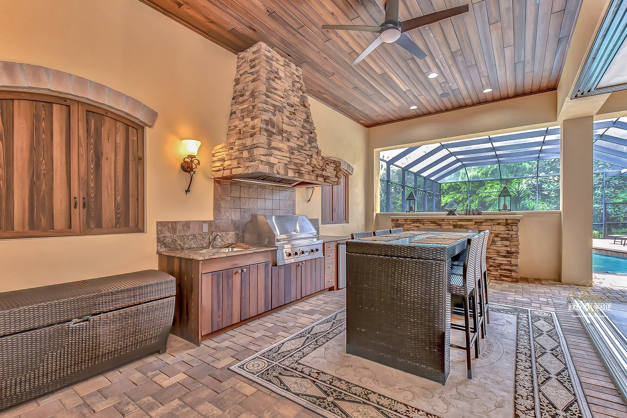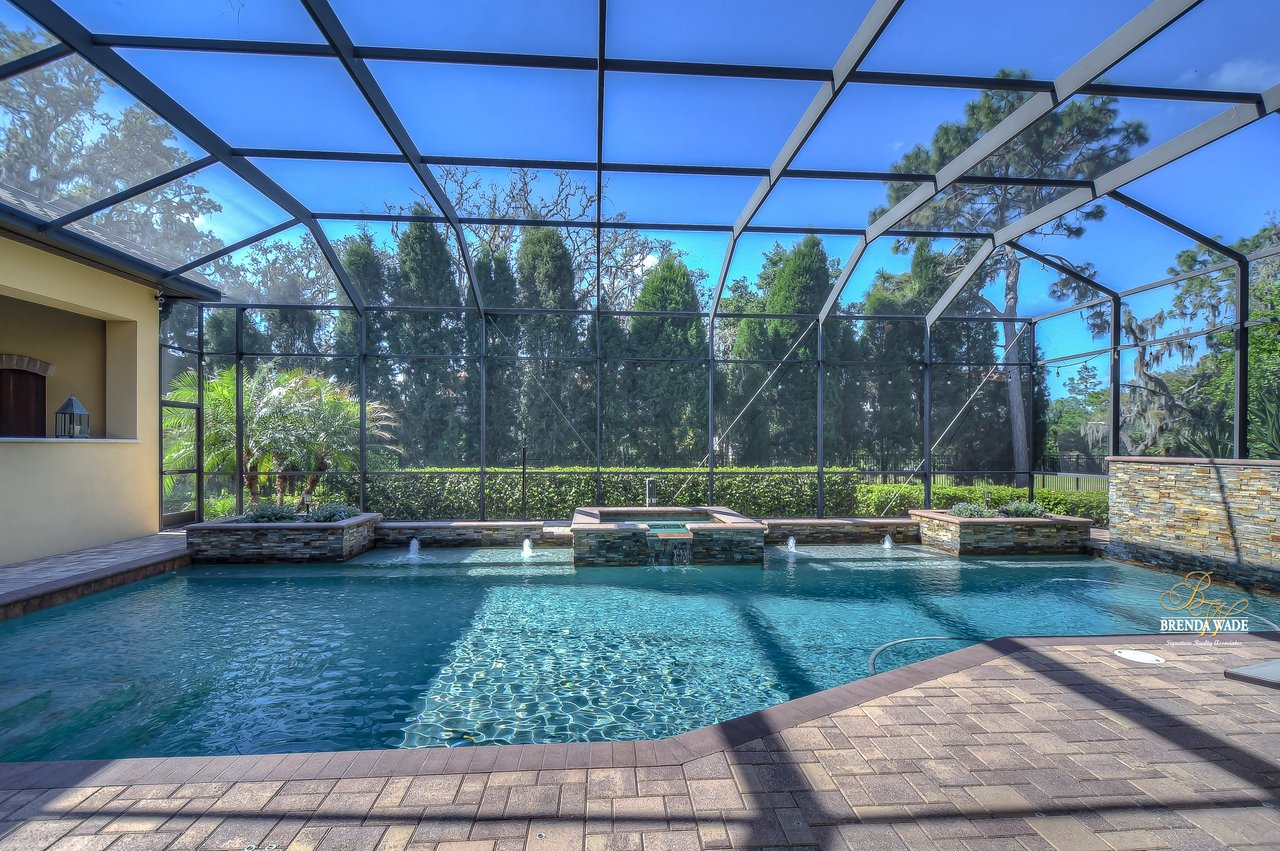 Not all homes will make you say “WOW” but this majestic, true custom home by FHR premier builder, John C. Fowke, in the gated village of Dunlinwood, is absolutely stunning! Sitting on a ½ acre pie-shaped lot, this beauty will impress from the start! When you arrive notice the stunning elevation with tile roof, grand columns, turret accents, side-entry garage & pavered entry accented with your own private gate!Go through the double leaded glass front doors you arrive at the foyer! Take a look & marvel at the luxury features dripping from room to room including travertine floors throughout the living areas, upgrade wide base, crown & neutral paint palette that would suit any décor!The Millwork in this home is incredible!There are other lovely homes in the village, but this one has all the bells & whistles! The office with floor to ceiling built-ins is the perfect space for an executive!A large spacious dining room makes entertaining a breeze with close proximity to the gourmet kitchen! MAGAZINE WORTHY in fact!The formal living room is accented by columns & features a coffered ceiling, stone fireplace & captivating lanai views!This perfect home also comes with a temperature controlled WINE CELLAR that can hold hundreds of bottles, who wouldn’t want one of those!The gourmet kitchen really is the heart of this home!German-made MIELE appliances, including SUBZERO refrigerator & built-in coffee maker as well as staggered wood cabinetry with glass toppers, granite counters & walk-in pantry with custom storage, you will love to spend time here making your favorite family meals & better yet, making memories!The breakfast nook with seamless window looking out to the lanai is the perfect spot!The family room with crown offers 2 sets of pocket sliders that open at the center, that lead out to the lanai!The indoor/outdoor living concept lives real in this stunning home!Secluded on one side of the house, the owners’ retreat is an oasis all on it’s own!Grand entryway leads you to the spacious suite with nook offering private exit to the lanai, the options for this space are endless!But that’s not even the best part!The ensuite is accompanied by dual California closets & features a dazzling walk in shower with triple shower heads, jetted jacuzzi tub & two spacious vanities!The flexible Four-way split floorplan offers 2 secondary bedrooms with en-suite baths another 2 sharing a jack & jill bath!Head upstairs & enjoy the extra living space!Your guests will likely gather here for game nights or even movie nights making the most of the built-in wet bar!Walking out & onto the oversized private, screened & pavered lanai, the space will be the center of all your summer days!Glistening swimming pool with heated spa & beautiful rock wall features are just the beginning, the lanai also offers a multitude of beautiful entertaining areas with wooden beadboard ceilings & a stunning gas fireplace & outdoor kitchen, each with more stacked stone accents to tie it all together!Did I mention this Is in the number one elementary in the county? RANDALL middle, NEWSOME High School!One hour from Disney, but living the dream with parks, pools & trails galore!This is a paradise in the most desirable area of Florida. Downtown Tampa is close enough to love & far enough to have the dream lifestyle!One hour to the beach!There is no other home on the market like THIS ONE!Come make this house a HOME!