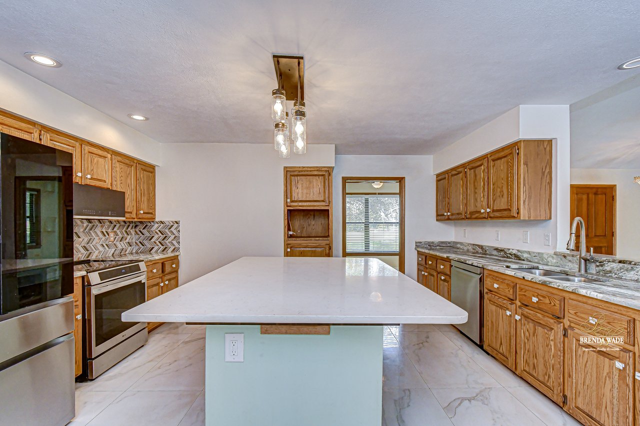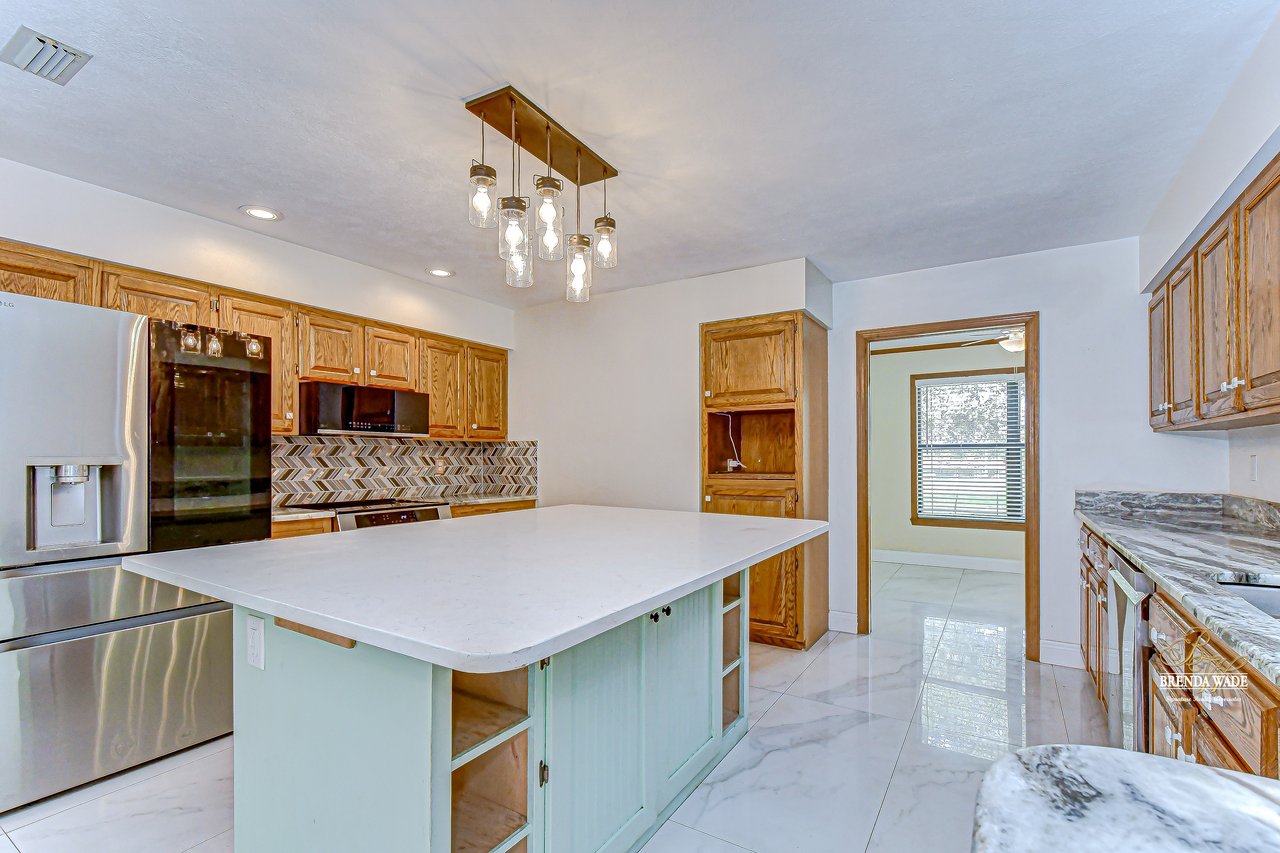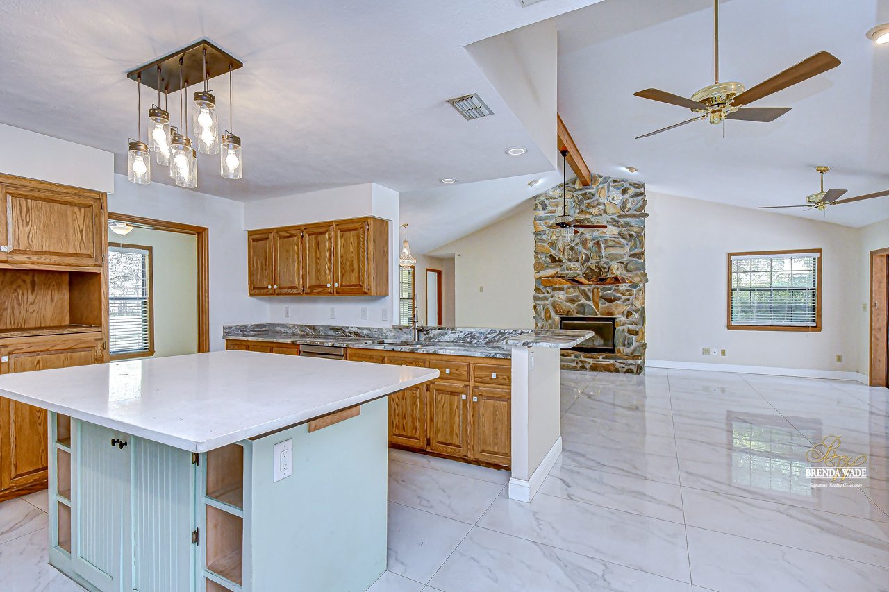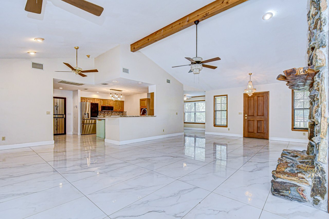 Completely remodeled and perfectly situated on 2.87 acres in the rolling hills of Dade City's Blanton area, this 3 bedroom, 2 bath + bonus room pool home offers an expansive open floor plan living space, stunning upgrades, and a beautiful outdoor setting perfect for comfortable rural living. Arrive at this serene property down a long, welcoming driveway lined with mature trees, leading to a spacious parking pad and a detached 37x25 garage. Step inside through the charming covered front porch and be immediately captivated by the expansive open-concept floor plan, highlighted by gorgeous porcelain tile flooring throughout, vaulted ceilings, wood beam accents, and a stunning stone-faced wood-burning fireplace with a live-edge wooden mantle. Natural light floods the living space through triple sliding doors, creating seamless indoor-outdoor living with direct access to the pool deck. The completely remodeled kitchen is a chef's dream, featuring brand-new appliances, stone countertops, a central island with storage, stylish updated lighting, and an eat-in dinette. Entertain guests effortlessly in the formal dining room, conveniently located just off the kitchen. Privately split from the secondary bedrooms, the primary suite offers a peaceful retreat with private French door access to the pool deck, a massive walk-in closet, and a luxuriously updated ensuite bathroom featuring a soaking tub, dual sinks, updated lighting, and a custom walk-in shower with a sleek glass enclosure. Two additional secondary bedrooms are generously sized and share the home's beautifully updated full bath. Additionally, a versatile bonus room offers endless possibilities -- use it as an additional bedroom, a home office, playroom, media room, or more! Step outside and fall in love with your personal slice of Florida paradise. The lanai and pool deck overlook a lush backyard, fully enclosed with added privacy fencing. Beyond the pool, two spacious outdoor buildings have been added to maximize your storage and functionality. The largest building is 50x30, offering ample space for equipment, hobbies, or storage. Another 30x14 building features running water and its own water heater, adding endless possibilities for a workshop, guest space, or more! The fenced back pasture is ideal for livestock or outdoor fun, complete with an agricultural stall, feeding pen, and even a treehouse! Located just minutes from the highway and a short drive to downtown Dade City, this property combines modern luxury with the charm of country living. Don't miss your opportunity to own this beautiful, fully updated home with exceptional land and functionality -- call us today for your private tour!