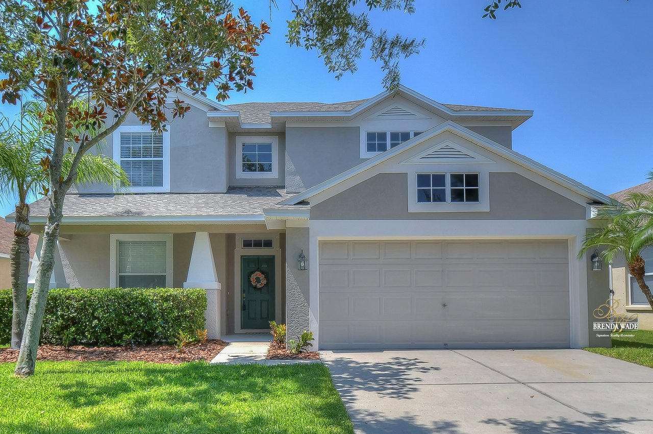 Tucked away in the desirable, gated community of Mira Lago, you will find this perfect one-owner Craftsman-style home! With NEW roof, paint, carpet, and sod, why wait to build when you can have as good as new! The adorable front porch will be the perfect spot for you to sit on your rocking chair just spending time watching the world go by! Inside you will find the living room with crown, laminate floors, and window at the front of the house that could be used in so many ways! You will love the dining room with chair rail and laminate flooring and close proximity to the kitchen! Special occasions will definitely be enjoyed in this room! The family room is open to the kitchen and features a double slider out to the backyard and fresh new carpet! The pretty bay window in the kitchen area will make the perfect spot for you to enjoy informal family meals! The kitchen is a delight with raised panel wood cabinets topped with crown, pretty granite counters, island, and large walk-in pantry for all your storage needs! Tucked behind the kitchen is a convenient half bath that is also accessible from the back of the house! Take the stairs to the second floor and you will find the 4 bedrooms! The primary suite is on one side of the home and boasts a bath with two walk-in closets, soaking tub, separate shower and his & hers sinks! Continue the tour and there are another 2 bedrooms with chair rails and a fourth bedroom at the front with board and batten detailing! There is also another full bath! The back of the home offers a large pad for your dining set to enjoy dining al fresco! The fully fenced yard is waiting for you and your family to enjoy outdoor fun and games in your private and secure area! Mira Lago is a wonderful community with resort-style clubhouse, pool, and playground! Make your appointment today, you are going to love it!