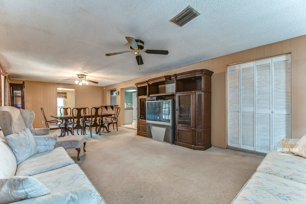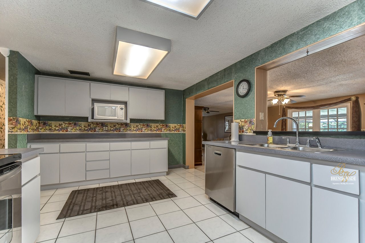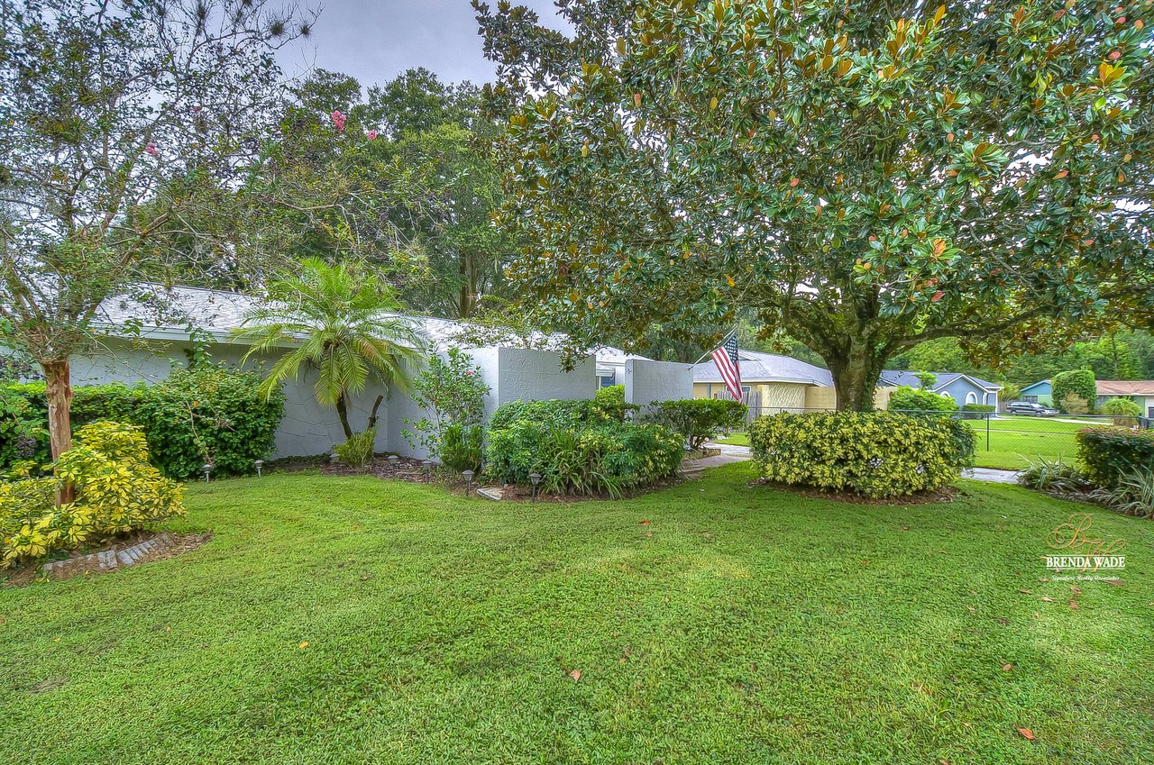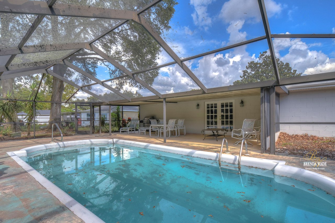 This welcoming home is located on a quiet loop street with lush landscaping and tons of desired privacy! The .28-acre lot is completely fenced and has wall dividers to create a little oasis in the front of the home for a private courtyard! You're in luck because there was a NEW ROOF installed in 2021 as well as fresh exterior paint in 2021! Inside awaits a formal living room with chair rail and crown molding, floor to ceiling window, and so much space to entertain! The functional layout continues into the kitchen with newer stainless appliances, ample counter space to prepare meals with loved ones, closet pantry, and pass through window into the dining room! The dining room features a set of French doors that take you out to the spacious lanai and pool! The great room will be the center of many memories to come and their own set of French doors with a private cozy side lanai! The primary bedroom has a nice size closet and updated attached bathroom with sink and walk-in shower! Two more additional bedrooms are near each other with a second bathroom nearby! There is a fourth bedroom on the other side of the home that can even become a large home office if you need a quiet place to work from home! Step outside to the covered and screened lanai where you could easily see yourself kicking back in the shade overlooking the pool! The pool has received over $2,000 worth of updates so it is ready to cool you down from the Florida heat! There is a gorgeous yard with so much space that the fun may never end! This home is a winner, come see it today!