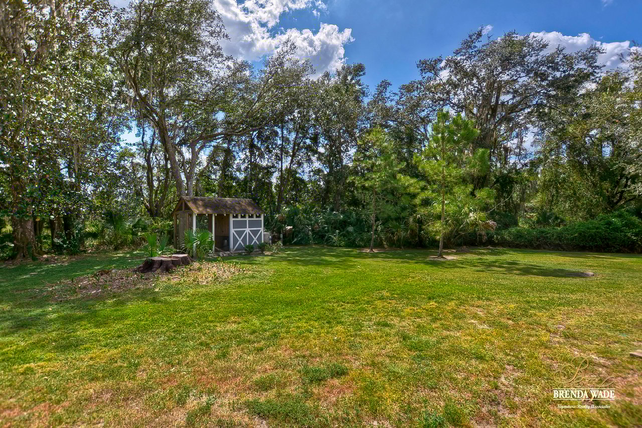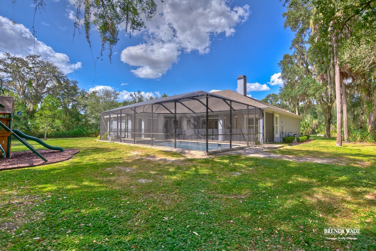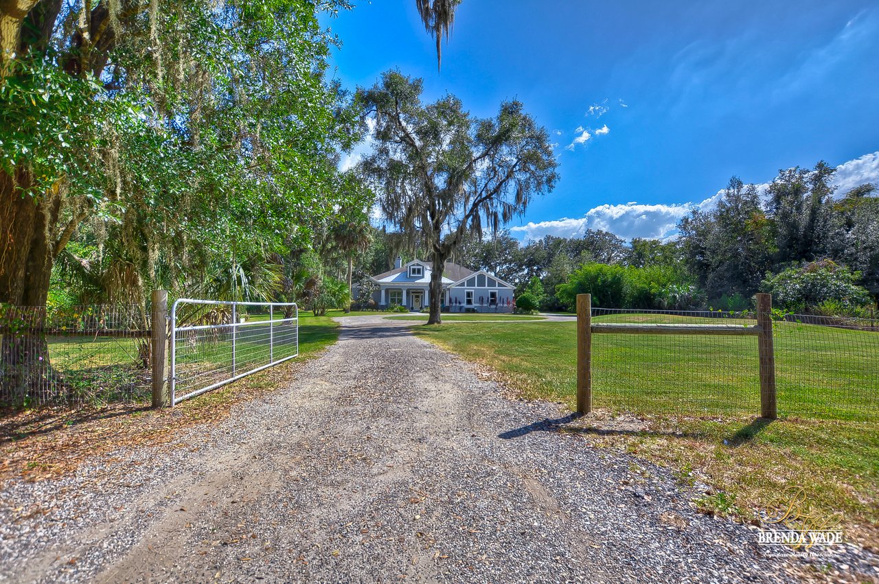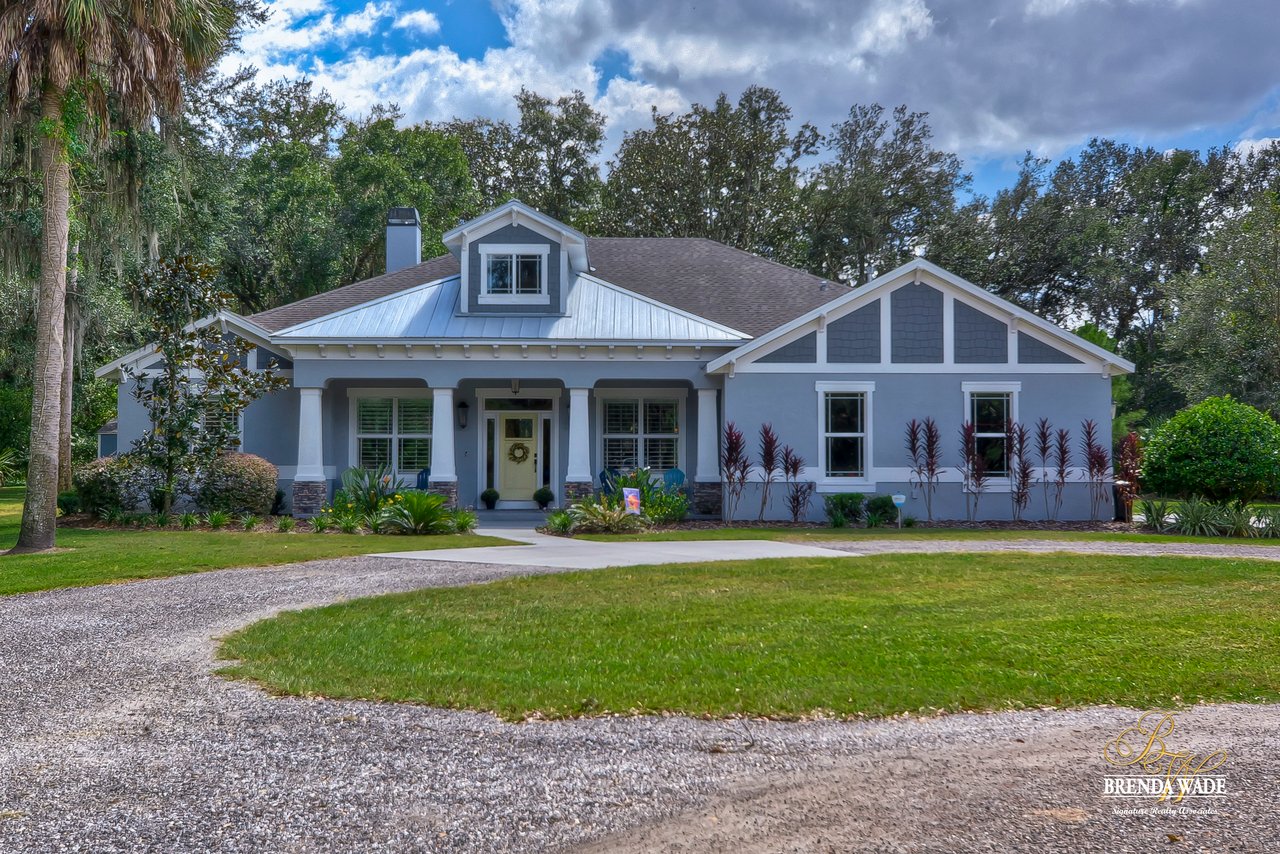 Wow! This home is a showstopper! Custom craftsman style beauty sitting on an oversized lot with wooded views all around! There was no detail overlooked when building this home, it will check all your boxes! From the moment you arrive you will notice the private gated entry, circular drive and striking elevation featuring a charming front porch! Inside you are greeted with soaring ceilings, neutral paint, rich wood flooring and tons of custom molding, baseboards and trim! Formal dining room features plantation shutters and gorgeous coffered ceiling accent! Move forward into the heart of the home; the kitchen and family room combo! Kitchen is what dreams are made of! Designer white cabinets topped with crown, island accent, granite counters, farmhouse sink, built-in stainless appliances and a sunny eat-in nook! Family room offers double French doors opening to the outside as well as a custom entertainment center with gas fireplace and built-ins! Spacious bonus room would make a great kids play room, man cave or media room with access out to the lanai! Need a quiet space to work from home? Private home office is tucked away at the front of the home! Wait until you see the outdoor space! Paradise! Pavered lanai with tons of covered seating, sparkling heated swimming pool and spa and an expansive backyard with storage shed! All this, overlooking the tranquil wooded views! Plenty of space to park your boat and RV’s, no HOA and no deed restrictions! Come take a tour so you can appreciate all it’s beauty!