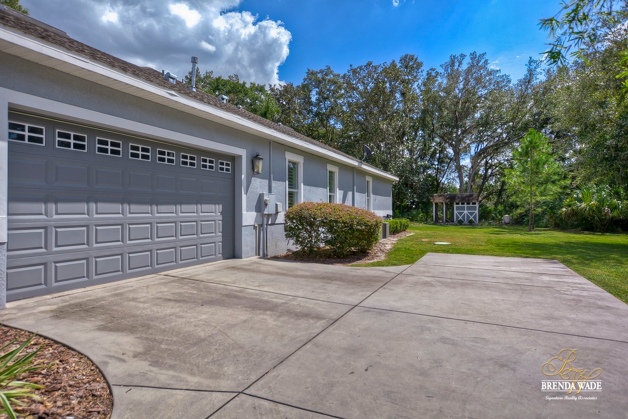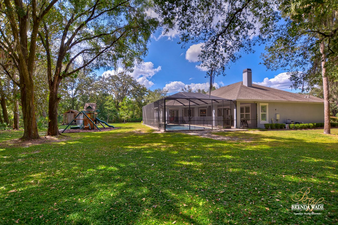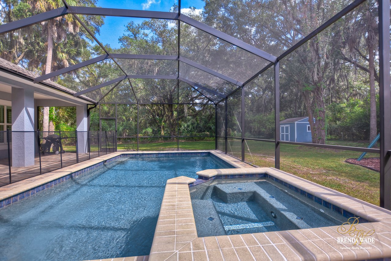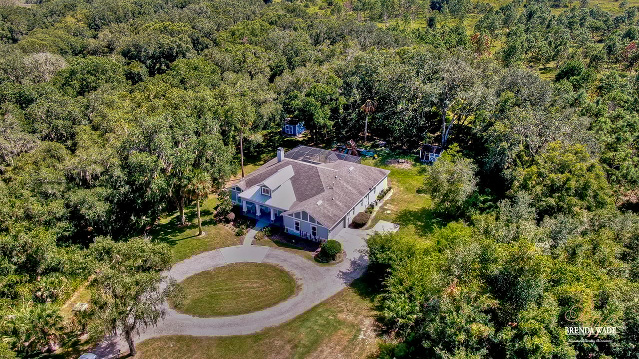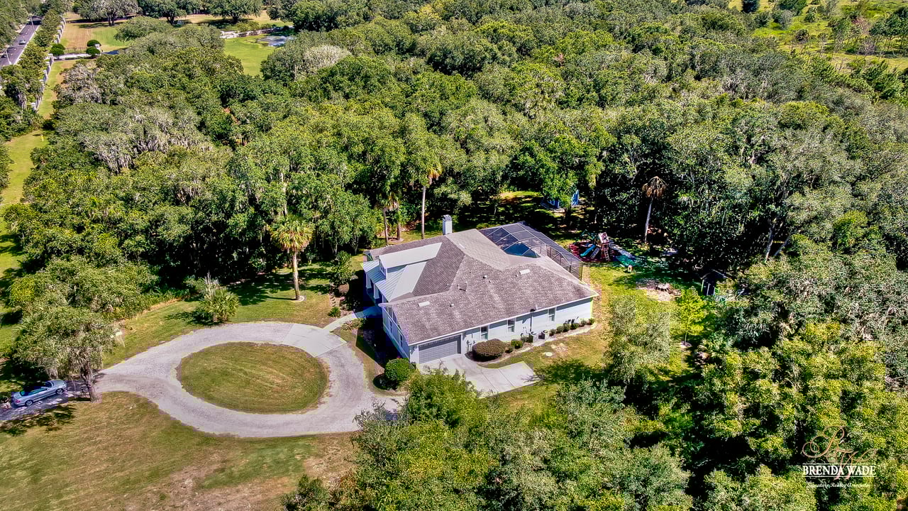 Wow! This home is a showstopper! Custom craftsman style beauty sitting on an oversized lot with wooded views all around! There was no detail overlooked when building this home, it will check all your boxes! From the moment you arrive you will notice the private gated entry, circular drive and striking elevation featuring a charming front porch! Inside you are greeted with soaring ceilings, neutral paint, rich wood flooring and tons of custom molding, baseboards and trim! Formal dining room features plantation shutters and gorgeous coffered ceiling accent! Move forward into the heart of the home; the kitchen and family room combo! Kitchen is what dreams are made of! Designer white cabinets topped with crown, island accent, granite counters, farmhouse sink, built-in stainless appliances and a sunny eat-in nook! Family room offers double French doors opening to the outside as well as a custom entertainment center with gas fireplace and built-ins! Spacious bonus room would make a great kids play room, man cave or media room with access out to the lanai! Need a quiet space to work from home? Private home office is tucked away at the front of the home! Wait until you see the outdoor space! Paradise! Pavered lanai with tons of covered seating, sparkling heated swimming pool and spa and an expansive backyard with storage shed! All this, overlooking the tranquil wooded views! Plenty of space to park your boat and RV’s, no HOA and no deed restrictions! Come take a tour so you can appreciate all it’s beauty!