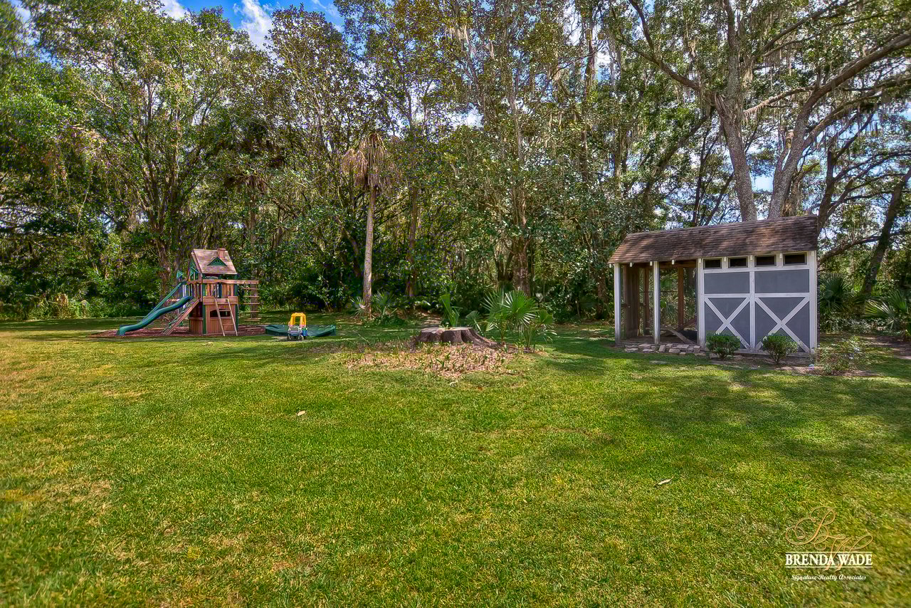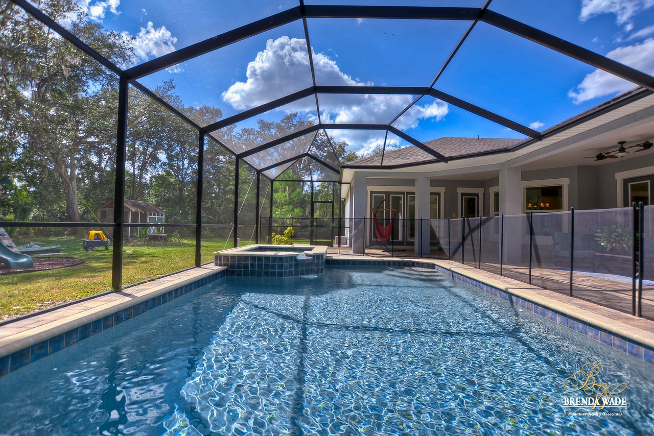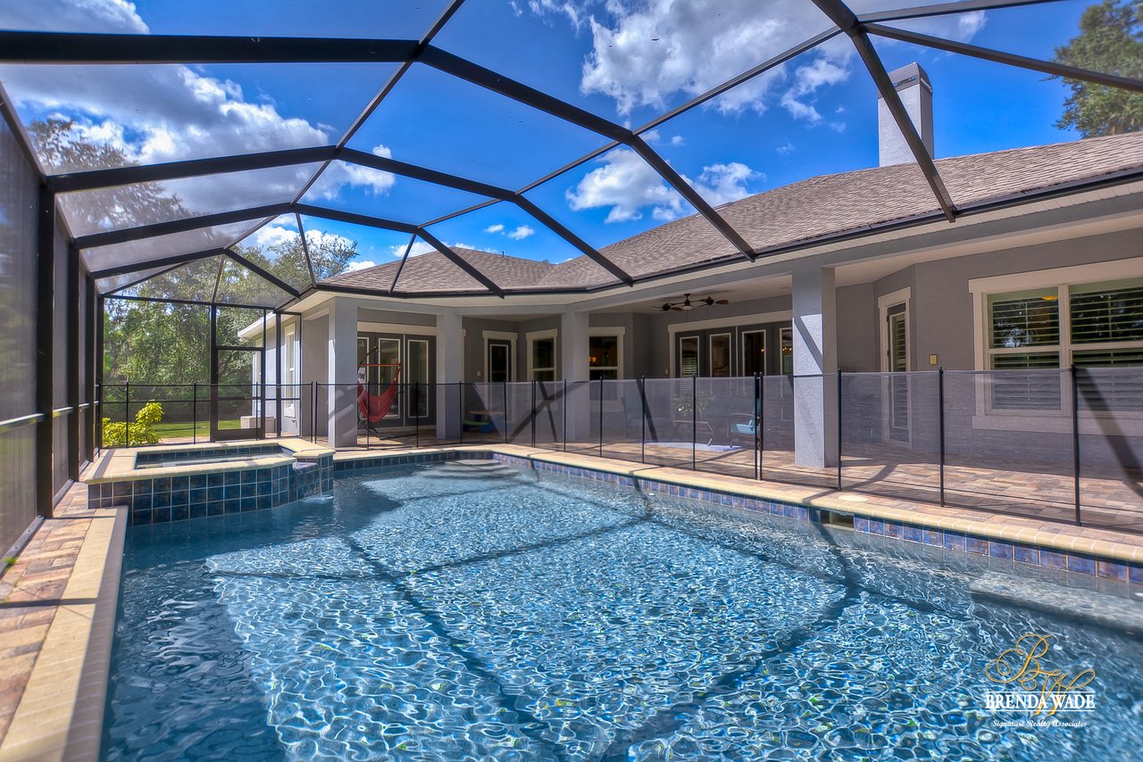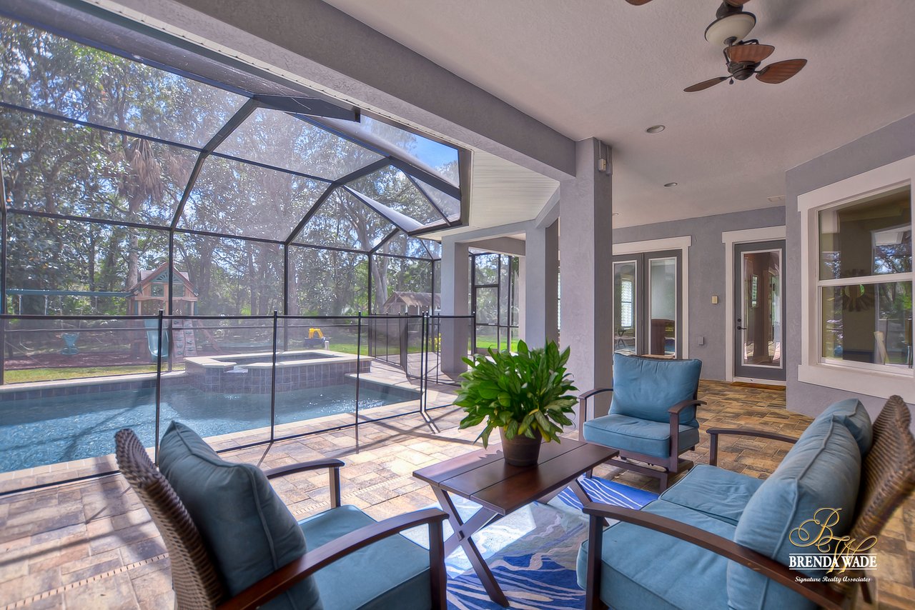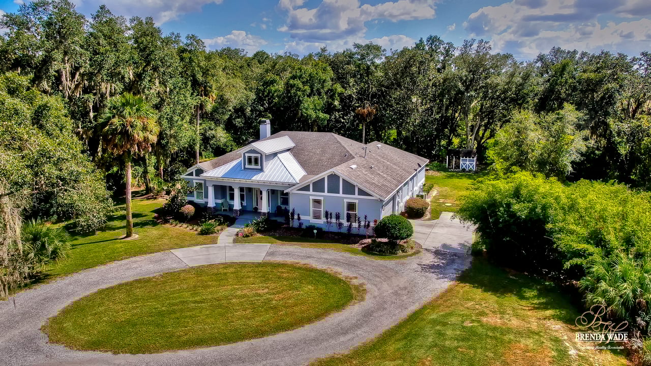 Wow! This home is a showstopper! Custom craftsman style beauty sitting on an oversized lot with wooded views all around! There was no detail overlooked when building this home, it will check all your boxes! From the moment you arrive you will notice the private gated entry, circular drive and striking elevation featuring a charming front porch! Inside you are greeted with soaring ceilings, neutral paint, rich wood flooring and tons of custom molding, baseboards and trim! Formal dining room features plantation shutters and gorgeous coffered ceiling accent! Move forward into the heart of the home; the kitchen and family room combo! Kitchen is what dreams are made of! Designer white cabinets topped with crown, island accent, granite counters, farmhouse sink, built-in stainless appliances and a sunny eat-in nook! Family room offers double French doors opening to the outside as well as a custom entertainment center with gas fireplace and built-ins! Spacious bonus room would make a great kids play room, man cave or media room with access out to the lanai! Need a quiet space to work from home? Private home office is tucked away at the front of the home! Wait until you see the outdoor space! Paradise! Pavered lanai with tons of covered seating, sparkling heated swimming pool and spa and an expansive backyard with storage shed! All this, overlooking the tranquil wooded views! Plenty of space to park your boat and RV’s, no HOA and no deed restrictions! Come take a tour so you can appreciate all it’s beauty!