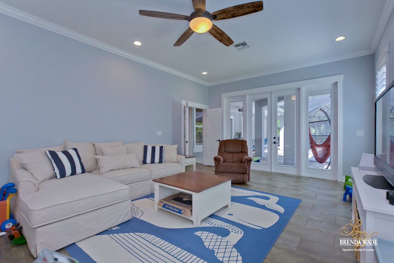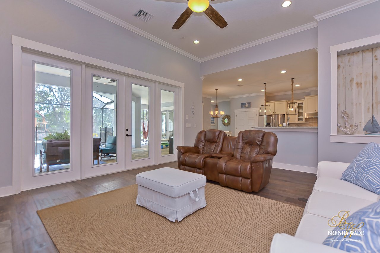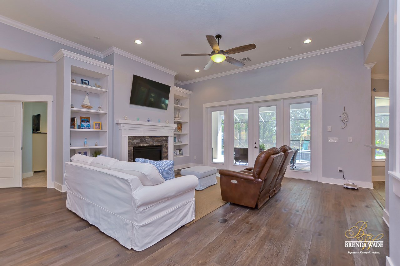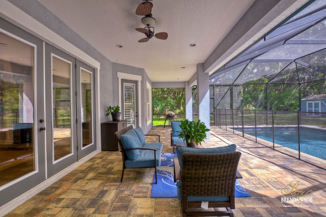 Wow! This home is a showstopper! Custom craftsman style beauty sitting on an oversized lot with wooded views all around! There was no detail overlooked when building this home, it will check all your boxes! From the moment you arrive you will notice the private gated entry, circular drive and striking elevation featuring a charming front porch! Inside you are greeted with soaring ceilings, neutral paint, rich wood flooring and tons of custom molding, baseboards and trim! Formal dining room features plantation shutters and gorgeous coffered ceiling accent! Move forward into the heart of the home; the kitchen and family room combo! Kitchen is what dreams are made of! Designer white cabinets topped with crown, island accent, granite counters, farmhouse sink, built-in stainless appliances and a sunny eat-in nook! Family room offers double French doors opening to the outside as well as a custom entertainment center with gas fireplace and built-ins! Spacious bonus room would make a great kids play room, man cave or media room with access out to the lanai! Need a quiet space to work from home? Private home office is tucked away at the front of the home! Wait until you see the outdoor space! Paradise! Pavered lanai with tons of covered seating, sparkling heated swimming pool and spa and an expansive backyard with storage shed! All this, overlooking the tranquil wooded views! Plenty of space to park your boat and RV’s, no HOA and no deed restrictions! Come take a tour so you can appreciate all it’s beauty!