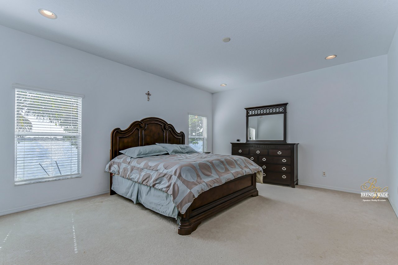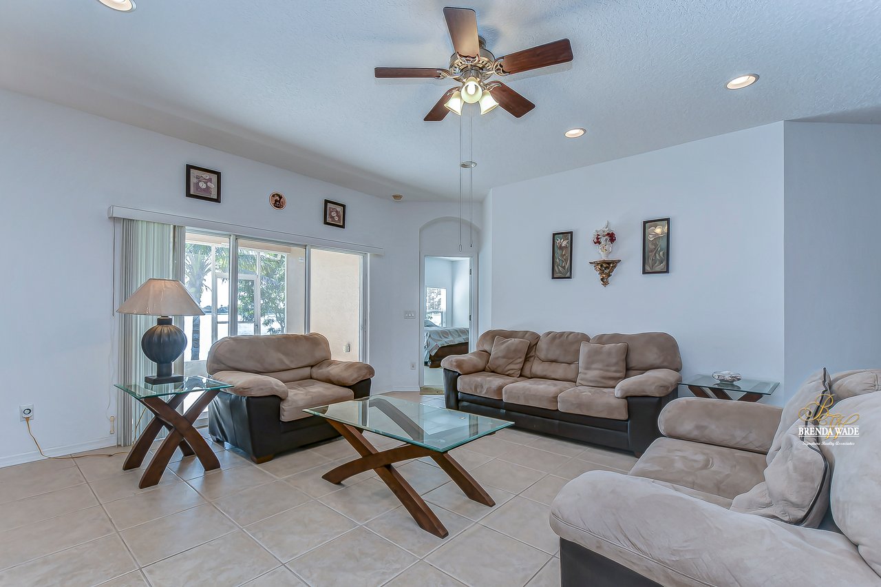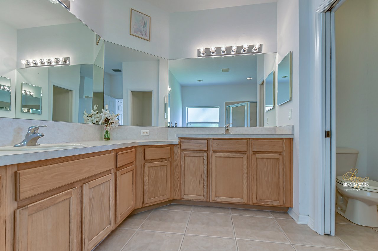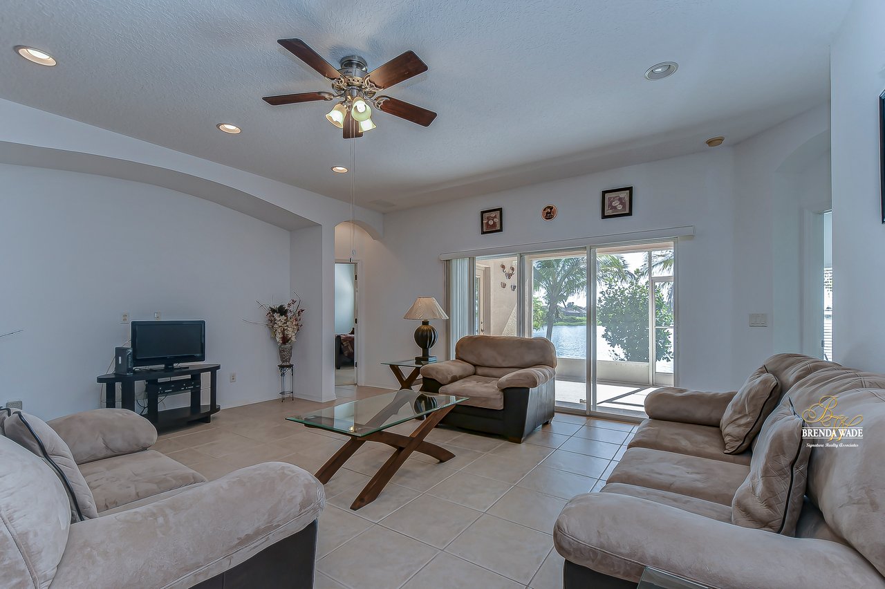 WATERFRONT BLISS! This gorgeous home is located in the desirable, gated Mira Lago community with views that will have you swooning! The front elevation is charming with a 3-car garage, tropical landscaping, screened-in front porch, and no neighbors in front of you!! Step through the double front door and appreciate the soaring ceilings, neutral paint, and bright natural lighting! There is a tray ceiling in the foyer leading you into the open living and dining room combination! This kitchen lives big and it sure is A M A Z I N G! 42-in wood cabinetry topped with crown, extensive breakfast bar, center island, tile backsplash, and a spacious breakfast nook with plenty of room to fit the whole family! The kitchen overlooks the family room with stunning water views, triple sliding glass doors, and large ceramic tile flooring! The primary suite is secluded on one side of the home with dual windows looking over the pond, dual walk-in closets, and en-suite bathroom with dual sinks, soaking tub, and walk-in shower! The triple split floorplan allows the second bedroom to reside at the back of the home with a walk-in closet, and attached en-suite bathroom with access to the lanai! This is a great opportunity for a guest or in-law suite! The third and fourth bedroom share their own wing with a third designated bathroom nearby! You will adore spending your days on the screened and covered lanai relaxing and taking in that tranquil waterfront setting! Mira Lago is a wonderful community with resort-style community pool, playground, park, tennis courts, and more! There is so much to fall in love with, what are you waiting for?!