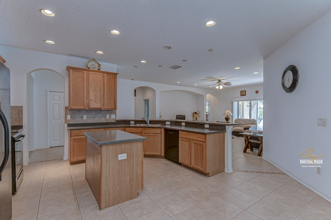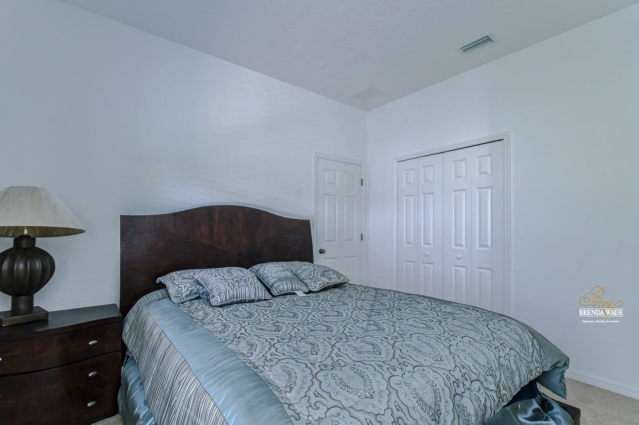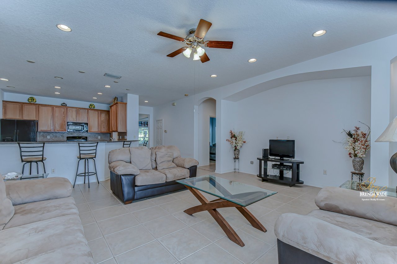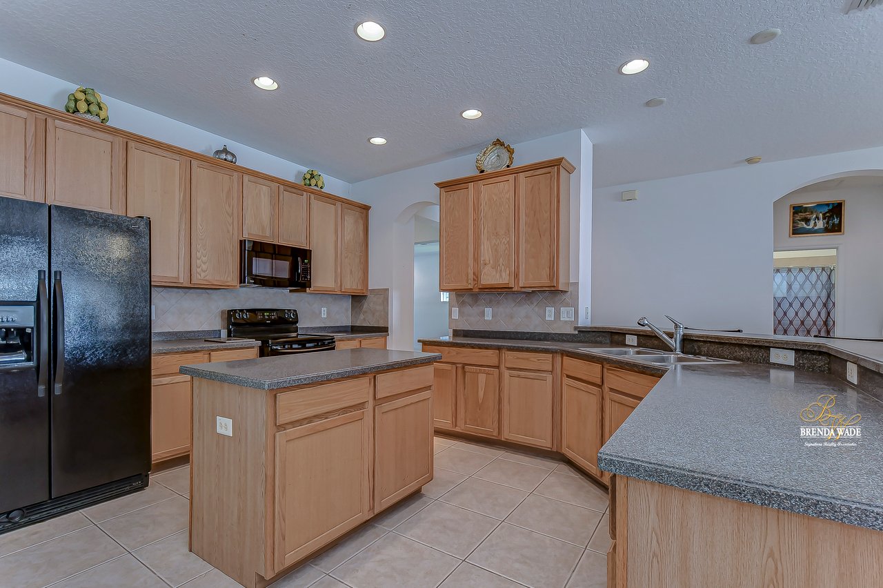 WATERFRONT BLISS! This gorgeous home is located in the desirable, gated Mira Lago community with views that will have you swooning! The front elevation is charming with a 3-car garage, tropical landscaping, screened-in front porch, and no neighbors in front of you!! Step through the double front door and appreciate the soaring ceilings, neutral paint, and bright natural lighting! There is a tray ceiling in the foyer leading you into the open living and dining room combination! This kitchen lives big and it sure is A M A Z I N G! 42-in wood cabinetry topped with crown, extensive breakfast bar, center island, tile backsplash, and a spacious breakfast nook with plenty of room to fit the whole family! The kitchen overlooks the family room with stunning water views, triple sliding glass doors, and large ceramic tile flooring! The primary suite is secluded on one side of the home with dual windows looking over the pond, dual walk-in closets, and en-suite bathroom with dual sinks, soaking tub, and walk-in shower! The triple split floorplan allows the second bedroom to reside at the back of the home with a walk-in closet, and attached en-suite bathroom with access to the lanai! This is a great opportunity for a guest or in-law suite! The third and fourth bedroom share their own wing with a third designated bathroom nearby! You will adore spending your days on the screened and covered lanai relaxing and taking in that tranquil waterfront setting! Mira Lago is a wonderful community with resort-style community pool, playground, park, tennis courts, and more! There is so much to fall in love with, what are you waiting for?!