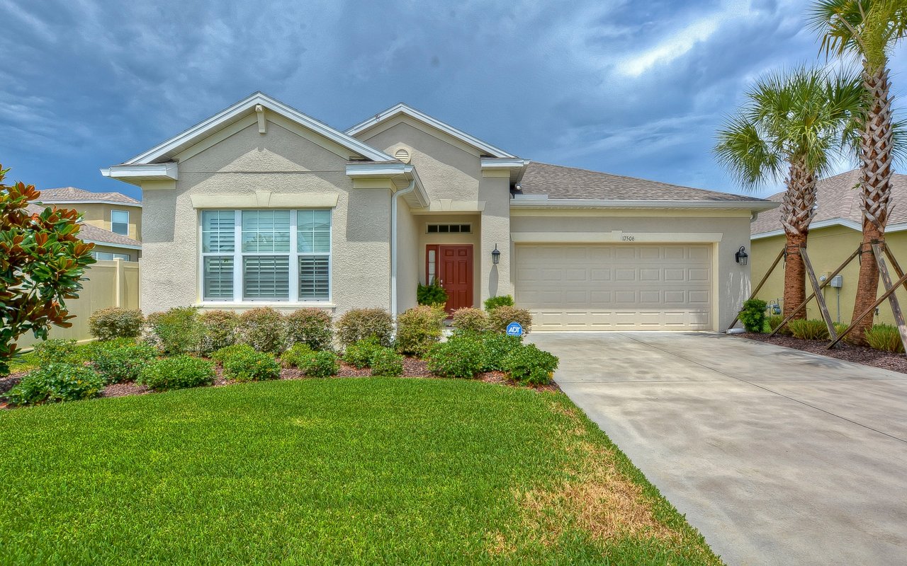 This marvelous family home has all the bells and whistles! Built in 2016, this home lives like new! From the moment you arrive you will fall in love with the curb appeal including lush landscaping and attractive elevation! Sitting on one of the most desirable lots in the community, this waterfront home is what dreams are made of! Step inside and fall in love with the bright open concept floor plan with neutral paint colors throughout! Plantation shutters throughout give this home so much charm! Formal living room boasts rich flooring and is open to the kitchen, would make a great home office! Move forward through grand rotunda with double tray ceiling and crown molding and arrive at the heart of the home, the open family, dining rooms and kitchen! Gourmet kitchen boasts granite counters, stainless appliances, subway tile backsplash, 42” espresso cabinets topped with crown, center island with breakfast bar seating and butler’s pantry area, perfect for your personal coffee bar! Family room is open to the kitchen, perfect for entertaining! Sliders to the lanai bring in tons of natural light! Master suite features tray ceiling, wall of windows overlooking the backyard and water views! En-suite features dual sinks, garden tub, separate shower and walk-in closet with access to the laundry room, how convenient! Three more spacious bedrooms offer ample closet space! Screened and covered lanai will be your favorite place to kick back and relax! Fully fenced yard all overlooking the sparkling pond view!