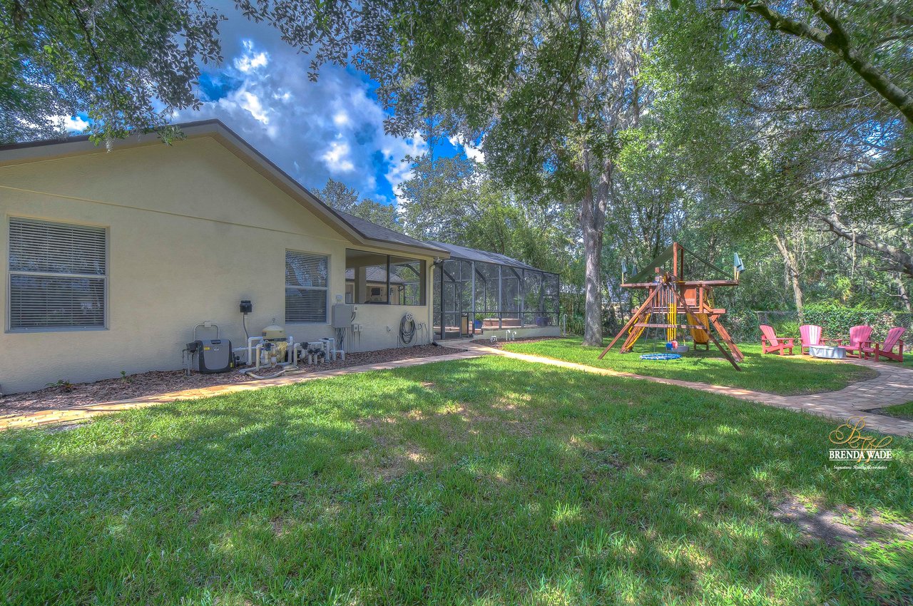 Nestled amidst an idyllic backdrop, this meticulously remodeled home in the highly sought-after community of Fish Hawk Trails screams happy people live here! Get ready to be captivated by the beautiful curb appeal of this property, boasting lush tropical landscaping, pavered driveway, and a walkway to the welcoming front porch. Oh, did I mention it sits on over half an acre! This stunning home boasts impeccable craftsmanship and an array of luxurious features that will surely have you in love. The homeowner has spared no expense with upgrading: newer roof, A/C unit, water heater, water softener, new pool systems, and so much more that you just have to see for yourself! As you step inside, you'll be greeted by an inviting open layout that effortlessly connects the indoors to the picturesque backyard and oversized pool, and dramatic spa. The front of the home features a HUGE office, providing an ideal space for productivity and comfort. Entertain in style in the formal living and dining rooms, and demands attention from the moment you enter. The dining room offers a spacious butler's pantry adding an extra touch of sophistication to the space. The heart of this home is undoubtedly the beautiful kitchen, which overlooks the spacious family room, creating a seamless flow of conversation. A chef's haven awaits you with beautiful resurfaced wood cabinets with charming crown detailing, CUSTOM pull-out shelves, a spacious island, upgraded stainless appliances, granite countertops, a tile backsplash, breakfast bar seating, and a desk. The gorgeous family room features a beautiful retiled fireplace, shiplap walls, built-in ceiling speakers, and custom built-in shelves. A private wing houses the primary suite, complete with a comfortable sitting area, private access to the pool, two walk-in closets with custom California closet systems, and a huge en-suite bath with a luxurious soaking tub, separate walk-in double shower, his & her vanities, and an attached room perfect for a second private office, workout room, or great nursery space for new parents! Two additional spacious bedrooms offer large closets and share a remodeled Jack and Jill bath, while a fourth bedroom at the back of the home offers privacy and convenience, with its own remodeled private bath that also serves as a pool bath. An enormous bonus room with stunning views from the back home with a built-in cabinetry unit for extra storage. This is the perfect opportunity for a multi-generational move, game room, or media room! This home is all about the indoor/outdoor lifestyle! In addition to the perfect interior, you'll love the saltwater heated pool with a stunning waterfall step spa! The outdoor kitchen features a built-in grill, burner, and refrigerator that is sure to make you the most popular choice in your friend group! Even with the oversized Lanai you'll have so much space for the kids and pets to run and enjoy. A beautiful pavered walkway is set up for you to enjoy evenings around a firepit! You also have direct access to the running trails. Enjoy all the amenities of Fish Hawk trails including tennis courts, playgrounds, walking & biking trails and so much more! It is also zoned for A-rated schools. Come take a look and be impressed by everything this stunning home has to offer! Everyone loves life in Fish Hawk Trails!