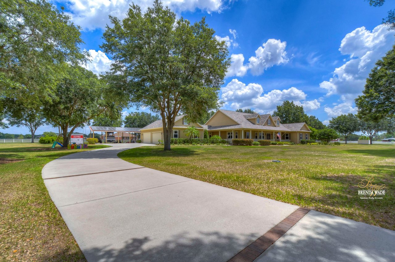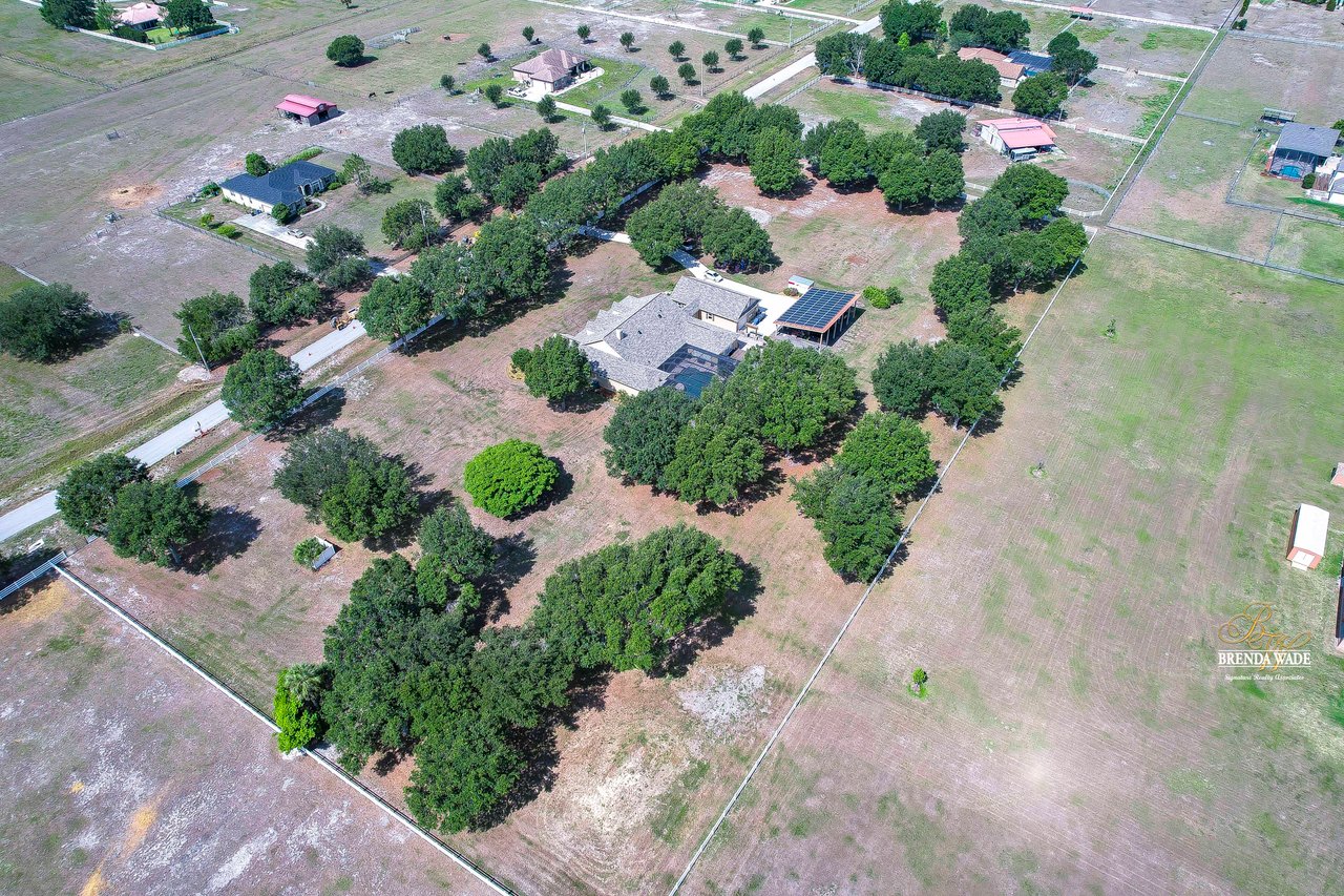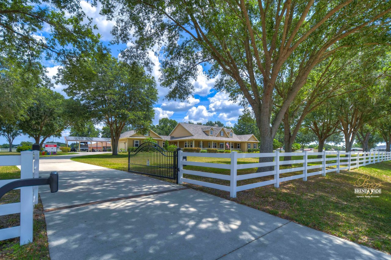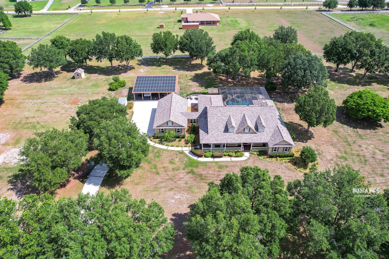 This CUSTOM Southern Traditional estate that was built for the owner is hard to describe in a short amount of words! Let’s start with some of the BIG TICKET items that have been recently replaced; NEW ROOF IN 2022, 27KW SOLAR POWER SYSTEM, WHOLE HOUSE SURGE PROTECTION, NEW WATER SOFTER, CHLORINE INJECTION SYSTEM AND REPLACED DRAIN FIELD… WOW! As if that isn’t enough to peek your interest already, this home is totally GREEN! With 75 solar panels feeding to TECO, there will almost never be an electric bill! Does it get any better than that?! The location is PRIME with 5 acres of pristine, level land, this home is zoned for agricultural! A NEW HORSE FENCE surrounds this amazing estate and is nestled behind a BRAND-NEW electric gate! This is the perfect opportunity to start the homestead you have always dreamed of! Take a tour of this grand design and immediately notice there was NO detail overlooked, this home was built for easy living and boasts the technology and design to make it so! Every corner exudes a mastery of craftsmanship that will steal your heart away! From the moment you set foot on the oak hardwood floors you’ll know you are home! This home features a rare four-way split floor plan featuring 5 bedrooms, 3.5 baths, office, bonus room and OVERSIZED 5 car garage! The kitchen is a true masterpiece! This gourmet kitchen showcases built-in Thermador appliances, two dishwashers with cabinet fronts, and a remolded walk-in pantry! Adjacent to the kitchen is a spacious great room that will capture your heart with its panoramic views of the pool and backyard! 14' vaulted tongue and groove ceiling and wood/gas fireplace becomes the cherished gathering spot for memorable events and cherished family time! The primary suite has been carefully curated to provide an unparalleled living experience! From the richness of the oak hardwood floors and gas fireplace to the thoughtful design of the walk-in closets and the sheer indulgence of the oversized en-suite bath, this is a haven where luxury meets functionality! Four additional spacious bedrooms all feature walk-in closets and en-suite baths! An oversized laundry room embraces practicality with an abundance of cabinetry and counter space, supplemented by a walk-in closet for all your additional storage needs! CUSTOM saltwater pool and spa offer a glimpse of resort-like luxury with pavered stone, two waterfalls, outdoor kitchen plus an outdoor area featuring a NEW pergola and fireplace! Oversized four-car garage, connected to the main residence through a stunning indoor breezeway! Here, custom cabinetry and a slat wall offer sufficient storage! An additional covered area outside provides shelter for your cars, boats, and all your beloved toys! This home is located one hour from beaches and Disney! Zoned for Great Schools! Come see it today, before it’s too late! View the home virtually with this link: my.matterport.com/show/?m=Mo52yCK8qAL&mls=1