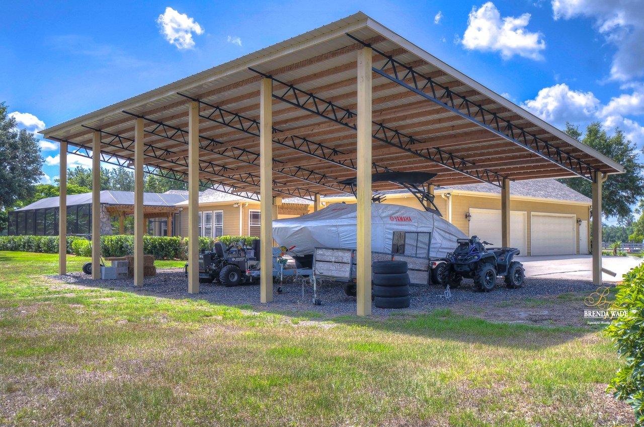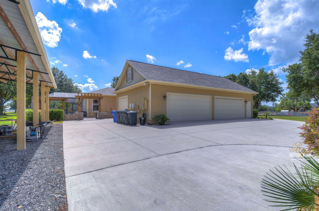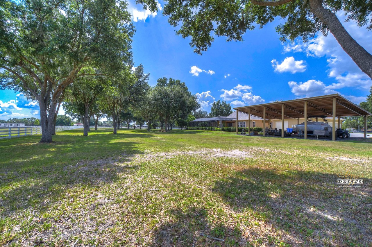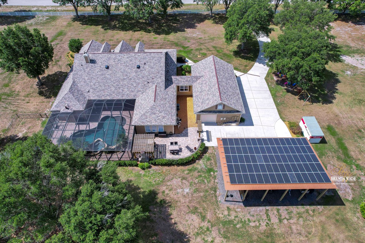 This CUSTOM Southern Traditional estate that was built for the owner is hard to describe in a short amount of words! Let’s start with some of the BIG TICKET items that have been recently replaced; NEW ROOF IN 2022, 27KW SOLAR POWER SYSTEM, WHOLE HOUSE SURGE PROTECTION, NEW WATER SOFTER, CHLORINE INJECTION SYSTEM AND REPLACED DRAIN FIELD… WOW! As if that isn’t enough to peek your interest already, this home is totally GREEN! With 75 solar panels feeding to TECO, there will almost never be an electric bill! Does it get any better than that?! The location is PRIME with 5 acres of pristine, level land, this home is zoned for agricultural! A NEW HORSE FENCE surrounds this amazing estate and is nestled behind a BRAND-NEW electric gate! This is the perfect opportunity to start the homestead you have always dreamed of! Take a tour of this grand design and immediately notice there was NO detail overlooked, this home was built for easy living and boasts the technology and design to make it so! Every corner exudes a mastery of craftsmanship that will steal your heart away! From the moment you set foot on the oak hardwood floors you’ll know you are home! This home features a rare four-way split floor plan featuring 5 bedrooms, 3.5 baths, office, bonus room and OVERSIZED 5 car garage! The kitchen is a true masterpiece! This gourmet kitchen showcases built-in Thermador appliances, two dishwashers with cabinet fronts, and a remolded walk-in pantry! Adjacent to the kitchen is a spacious great room that will capture your heart with its panoramic views of the pool and backyard! 14' vaulted tongue and groove ceiling and wood/gas fireplace becomes the cherished gathering spot for memorable events and cherished family time! The primary suite has been carefully curated to provide an unparalleled living experience! From the richness of the oak hardwood floors and gas fireplace to the thoughtful design of the walk-in closets and the sheer indulgence of the oversized en-suite bath, this is a haven where luxury meets functionality! Four additional spacious bedrooms all feature walk-in closets and en-suite baths! An oversized laundry room embraces practicality with an abundance of cabinetry and counter space, supplemented by a walk-in closet for all your additional storage needs! CUSTOM saltwater pool and spa offer a glimpse of resort-like luxury with pavered stone, two waterfalls, outdoor kitchen plus an outdoor area featuring a NEW pergola and fireplace! Oversized four-car garage, connected to the main residence through a stunning indoor breezeway! Here, custom cabinetry and a slat wall offer sufficient storage! An additional covered area outside provides shelter for your cars, boats, and all your beloved toys! This home is located one hour from beaches and Disney! Zoned for Great Schools! Come see it today, before it’s too late! View the home virtually with this link: my.matterport.com/show/?m=Mo52yCK8qAL&mls=1