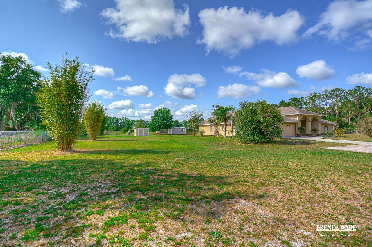 Beautiful estate on an oversized 5 acre lot! Located on a quiet street in rural Lithia, this slice of heaven is just what you've been looking for to live your country dream! Be welcomed in through the private gate and winding driveway with plenty of parking space! Walk inside to notice the new neutral paint throughout! Formal living and dining rooms welcome you in and give you view straight back through double sliding glass doors! The stunning kitchen will please any chef in the family with granite counters and tons of cabinet space in the rich, 42” cabinets topped with crown! Open to the kitchen is a sunny breakfast nook and family room area with more sliders leading out to the lanai! One of the best parts of this home is the three-way split floorplan keeping the master suite secluded on one side of the home! This suite boasts an oversize living area that gives you so many options! Could be a home office, nursery, or just a sitting room to kick back and relax! Master bathroom leaves nothing to be desired with his and her vanities and an enormous walk in shower! Two more bedrooms share a full bath in the fourth bedroom is privately tucked away at the back of the house with it's very own bathroom! Have we talked about the outdoors yet? The oversize screened in covered lanai gives you plenty of space to enjoy all of Florida's weather! Need more room for storage? The oversize shed on the property gives you plenty of space. There's definitely room to spread your wings here and no deed restrictions or HOA’s so bring your boat’s, trailer’s and RV’s! View the home virtually here.