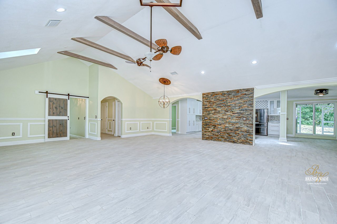 Peaceful Country Living with City Convenience - Beautifully Remodeled Ranch Home on 1.72 Acres. Tucked away down a long private driveway, this stunning 6-bedroom, 4-bathroom ranch-style home offers over 3,300 square feet of beautifully updated living space, all set on a generous 1.72-acre lot. Recent updates include a metal roof (under 10 years old), newer well (2019), HVAC system (2019), plumbing (2019), and a septic system that was pumped in 2024. This home perfectly blends peaceful country charm with modern upgrades and thoughtful design, located just minutes from major conveniences and within an A+ rated school district. From the moment you arrive, you'll be impressed by the elevated curb appeal, featuring new stonework, fresh windows, and raised ceiling lines that create an impressive, inviting front elevation. Inside, the open floor plan showcases exquisite craftsmanship, including open-beam ceilings, recessed lighting, sky tubes for natural light, and upgraded finishes throughout. The chef's kitchen, remodeled in 2020, boasts stone countertops, a mosaic tile backsplash, a farmhouse sink, 42" raised-panel cabinets with crown molding, a breakfast bar, and two sinks--ideal for entertaining and everyday living. A built-in pantry and walk-in pantry offer ample storage. The interior also features barn door accents, custom trim work, and new flooring and paint throughout. The private primary suite is a true retreat, featuring two closets and a luxurious en-suite bath complete with a walk-in shower and relaxing jetted tub. A triple split floor plan offers smart separation between the five additional bedrooms, providing enhanced privacy for family members and guests alike. The home includes two dedicated office spaces, perfect for remote work or hobbies. Guest bedrooms come with a unique touch--ceiling fans with built-in speakers that connect to your media devices, adding comfort and fun. The layout is ideal for large families or multi-generational living. Step outside and enjoy the serenity of your private acreage. In addition to the main home, there's a shed and an approx. 1,700-square-foot unfinished workshop that could serve as a garage, studio, or massive storage space. Enjoy the peace of rural living with city access just a short drive away--close to shopping, dining, and recreation, including a nearby golf course. Zoned for top-rated schools, this property offers room to grow, work, and relax. This rare find combines comfort, character, and convenience--schedule your private tour today and experience this one-of-a-kind home for yourself!